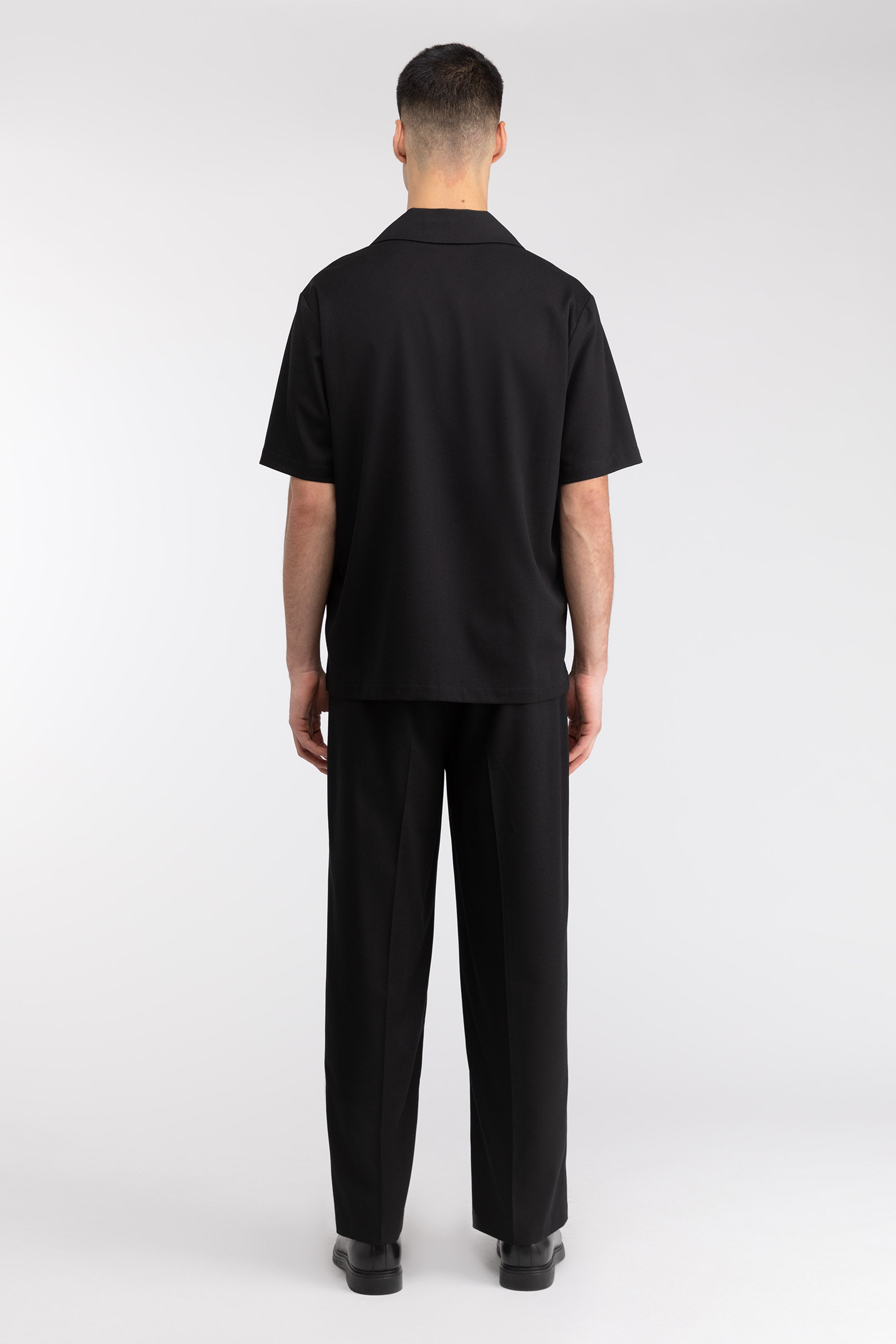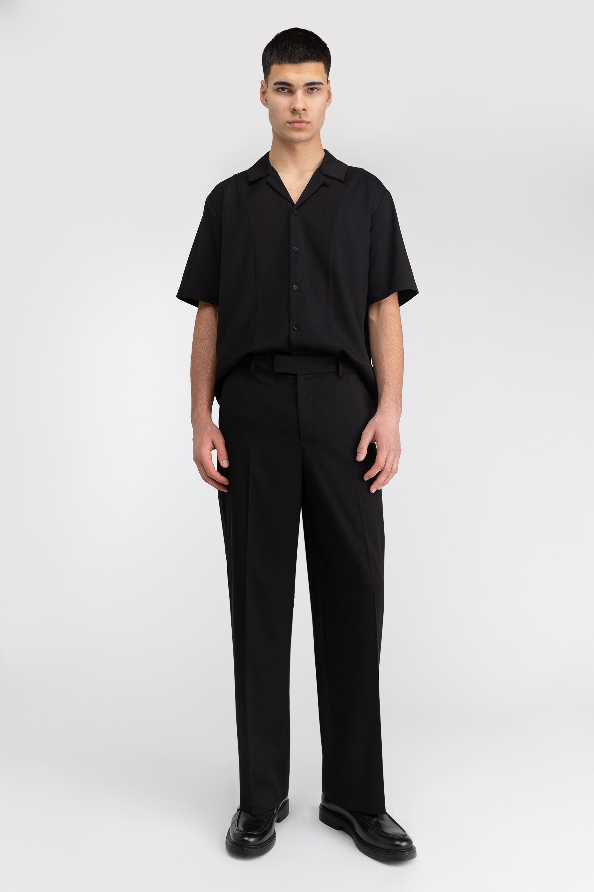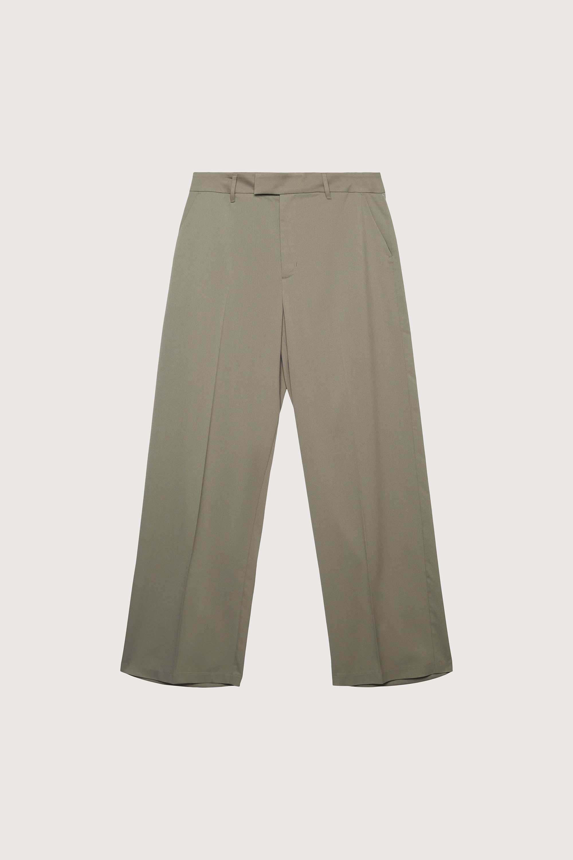 Relaxed fit. Lightweight suiting fabric. Mid-rise waist. Straight leg. Zip and hook closure. Side slash pockets. Belt loop. 30" inseam based on size 32.