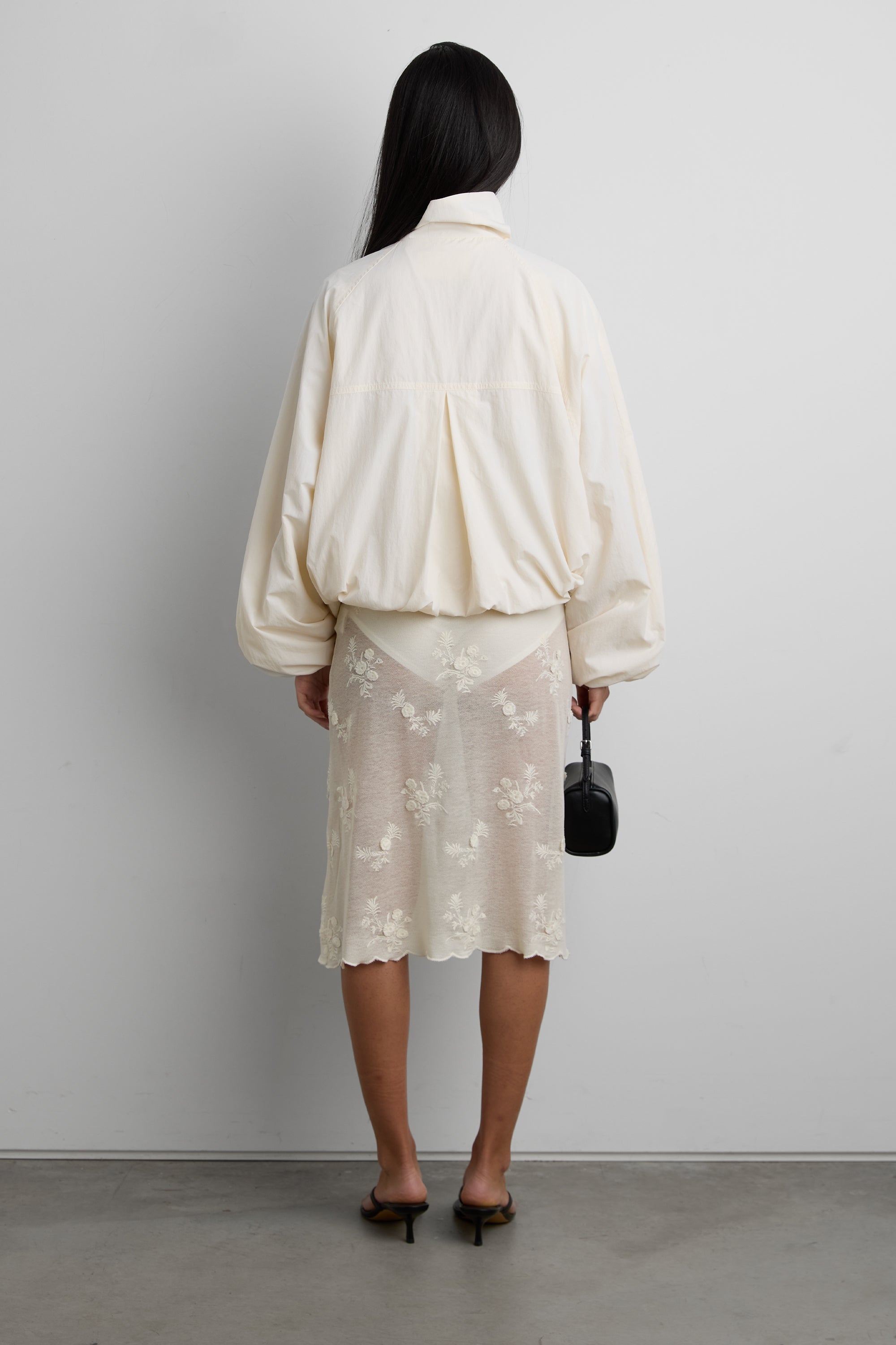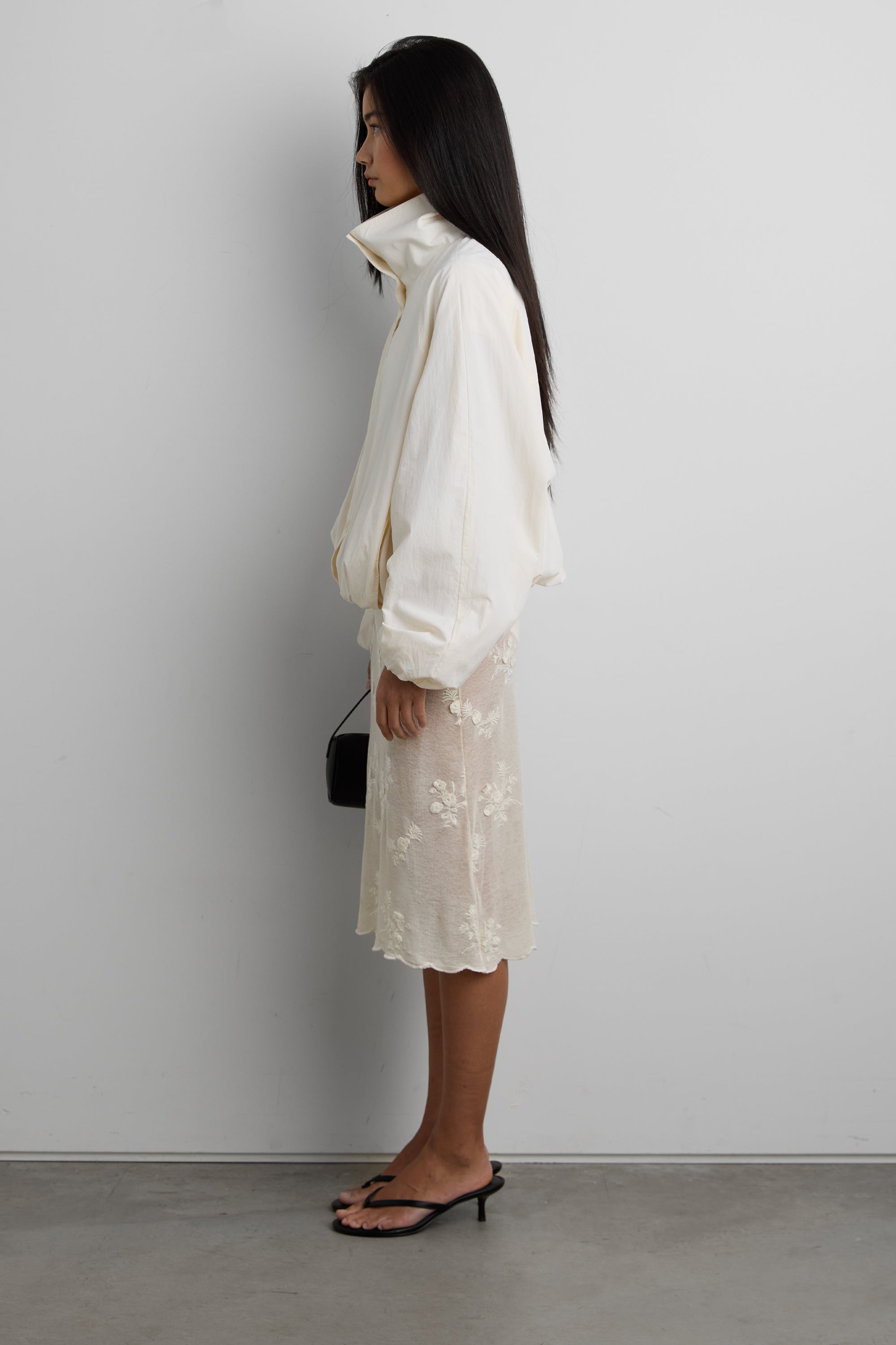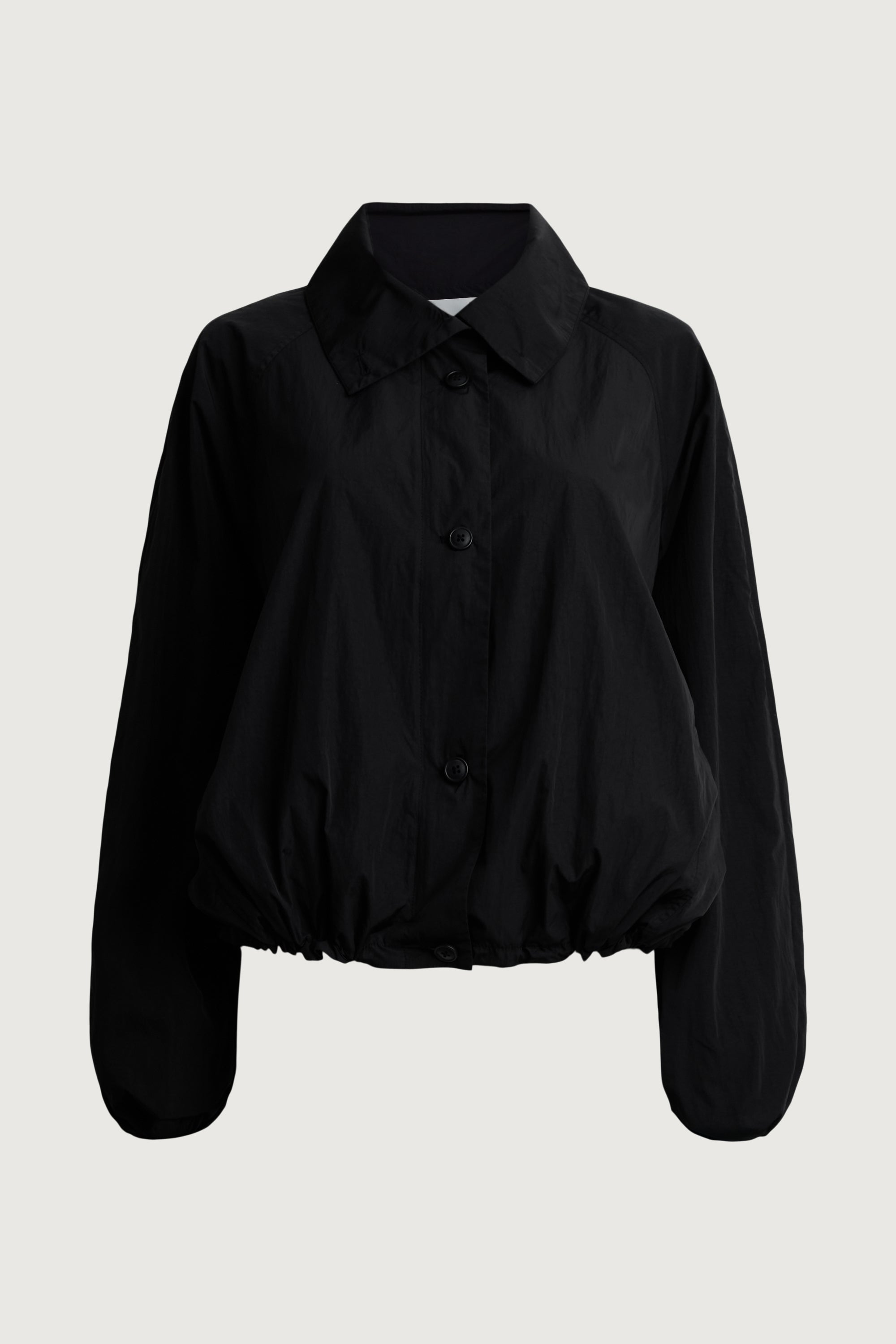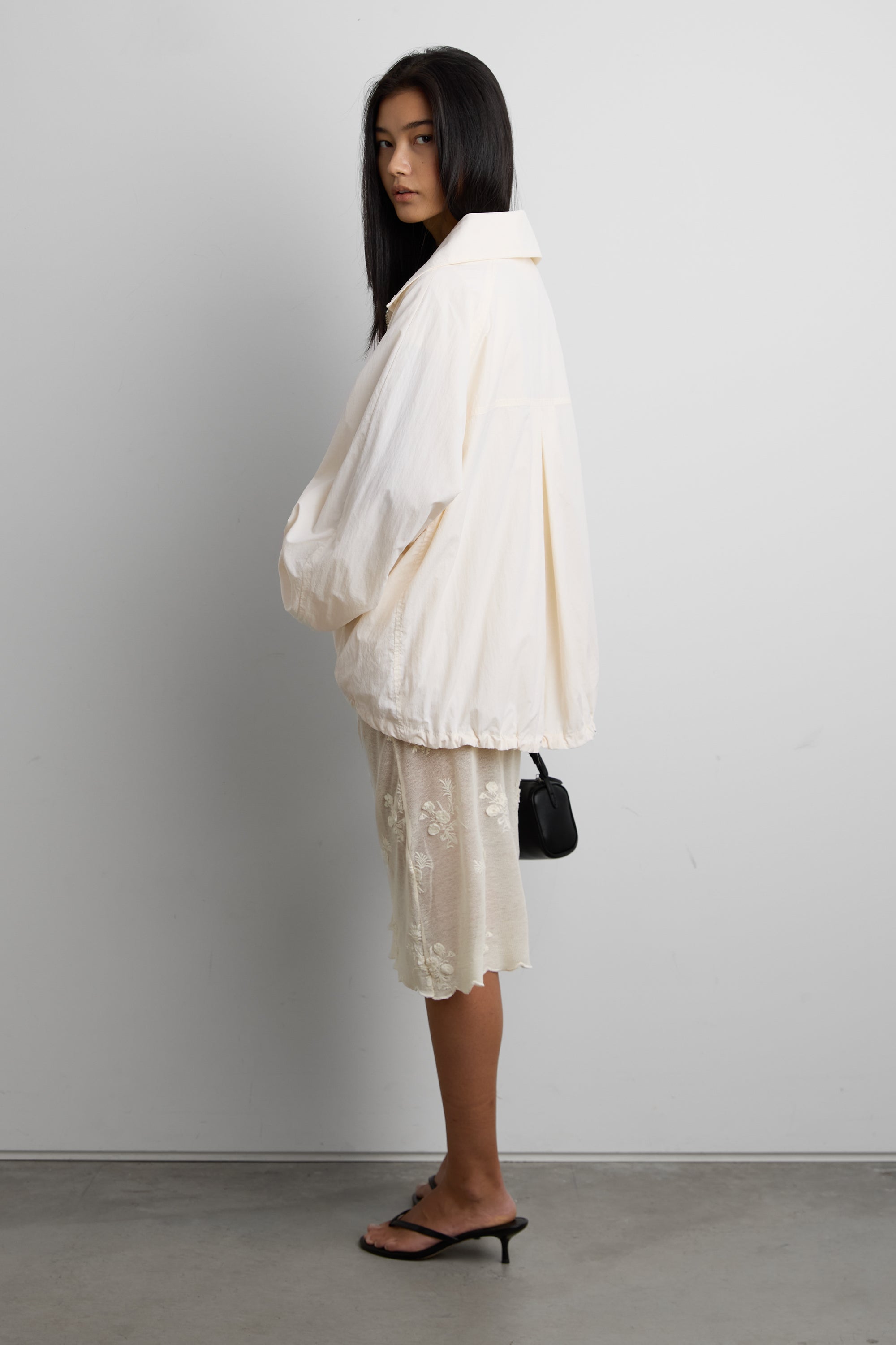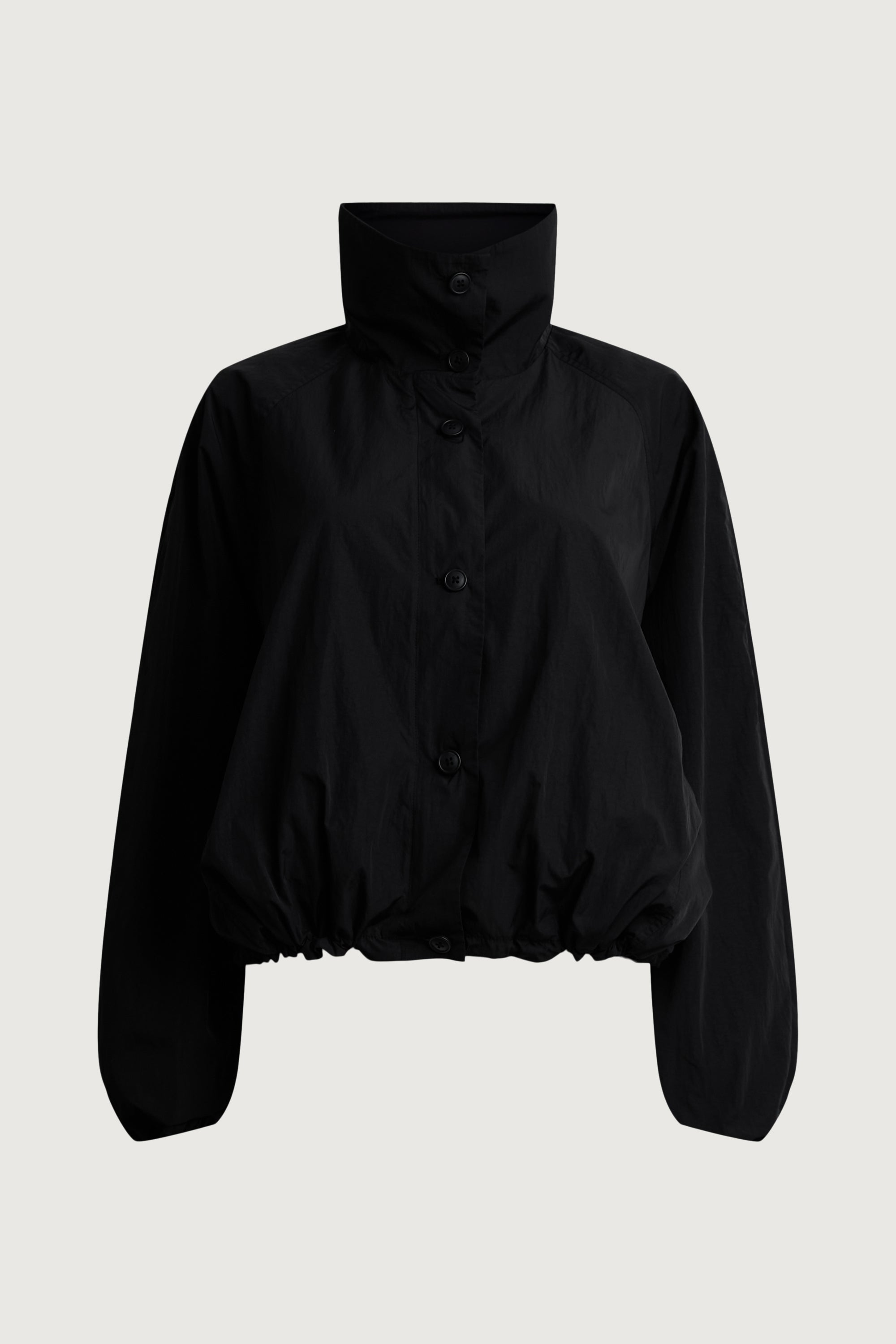 This lightweight funnel neck nylon jacket is made in an oversized fit. It's detailed with a button up front, side pockets and elasticated cuffs and hem with a high-low design. The perfect outerwear piece to wear from this season and into the next.