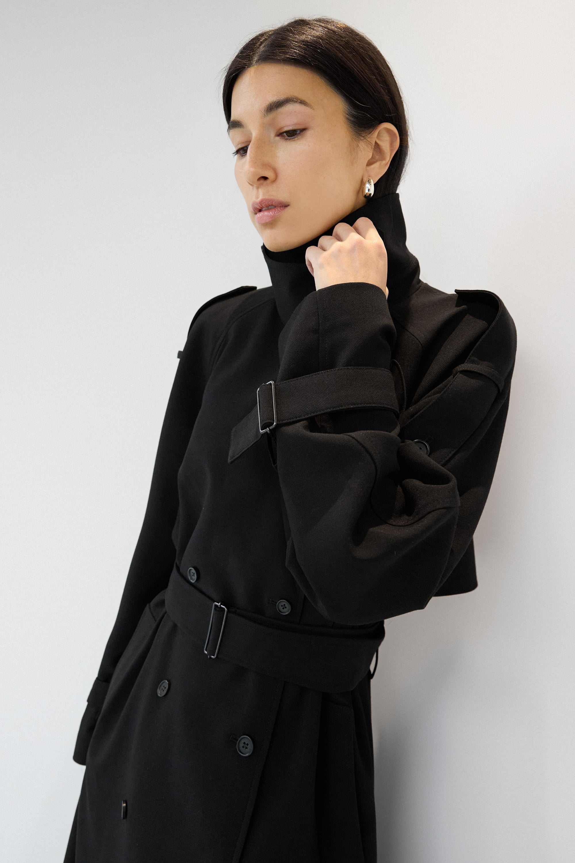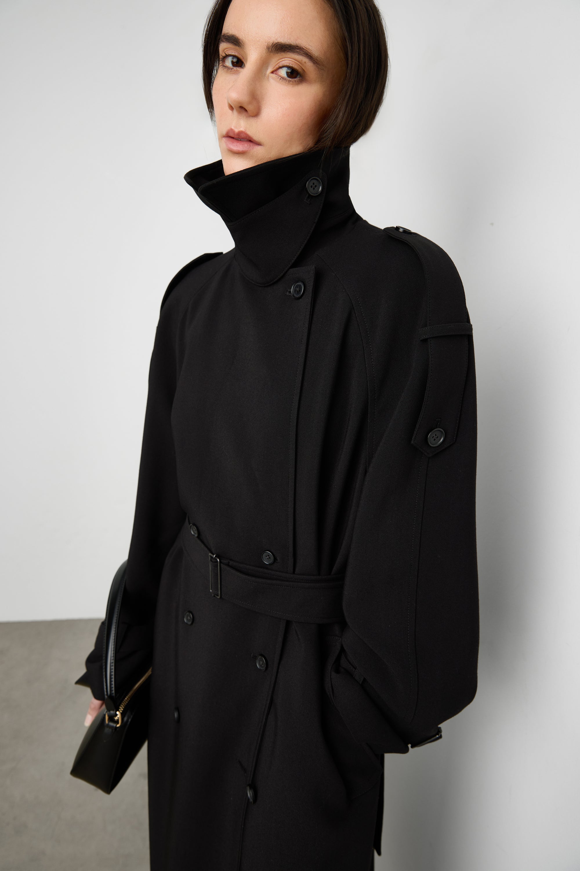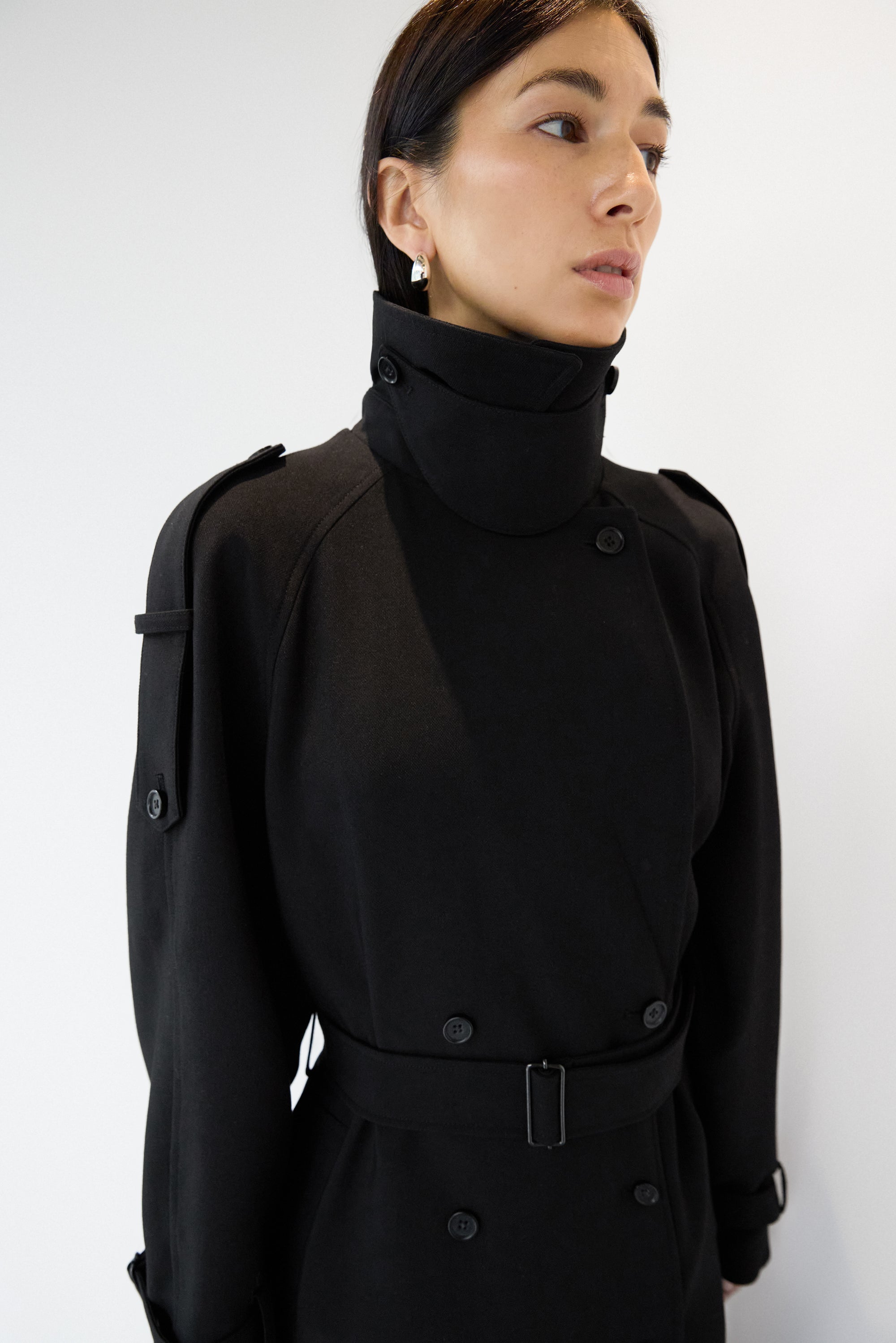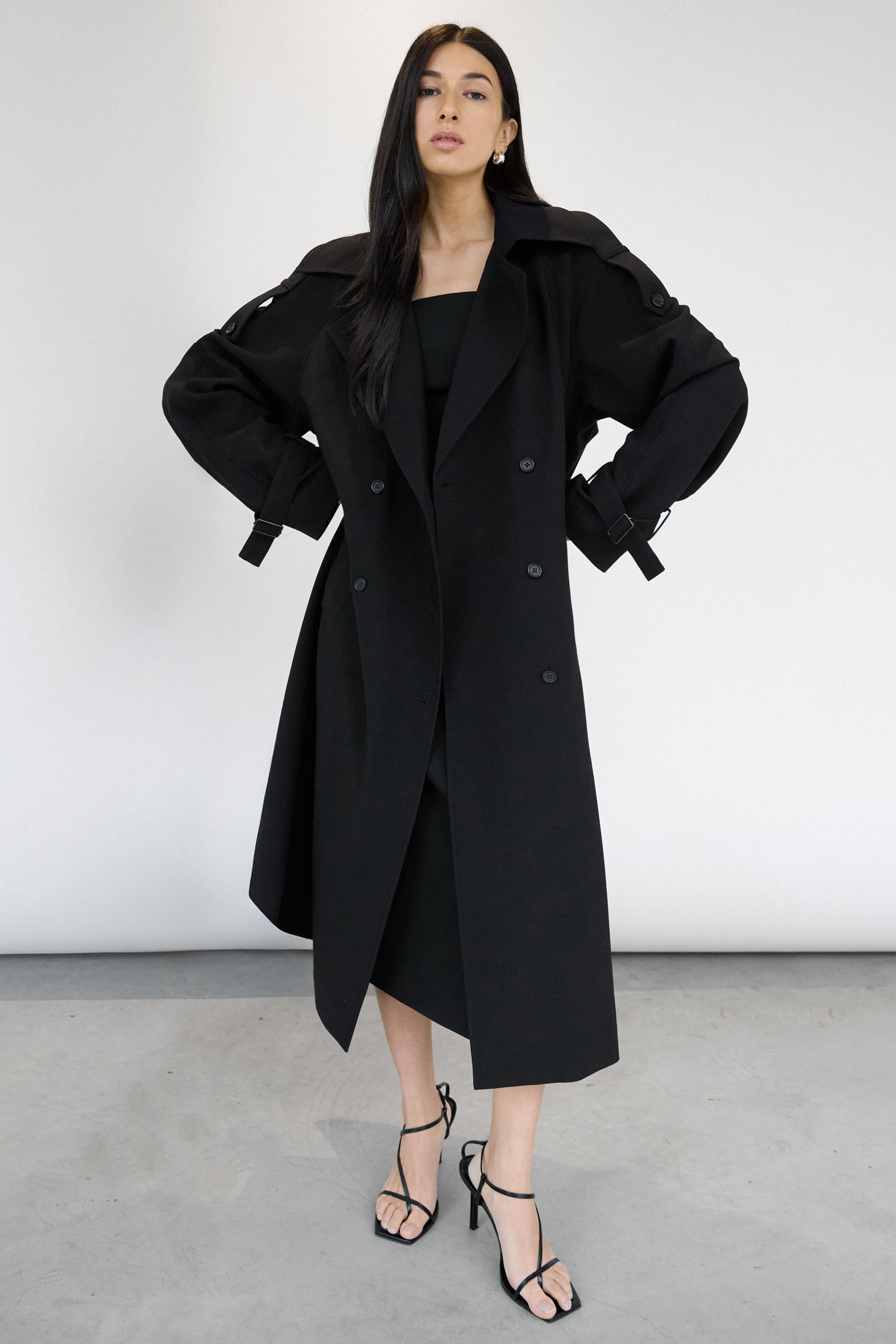 An updated take on our best selling trench coat, this version is an essential in every season and will be a versatile enough to day from day to night. The oversized fit is balanced with a double-breasted front and has a beautiful fluid drape with a subtle stretch. It has structured lapels, dropped shoulders, adjustable cuffs, a back vent and a belt detail at the neckline to create a funnel neck design. An effortless silhouette that you can wear for both for casual and chic outfits.