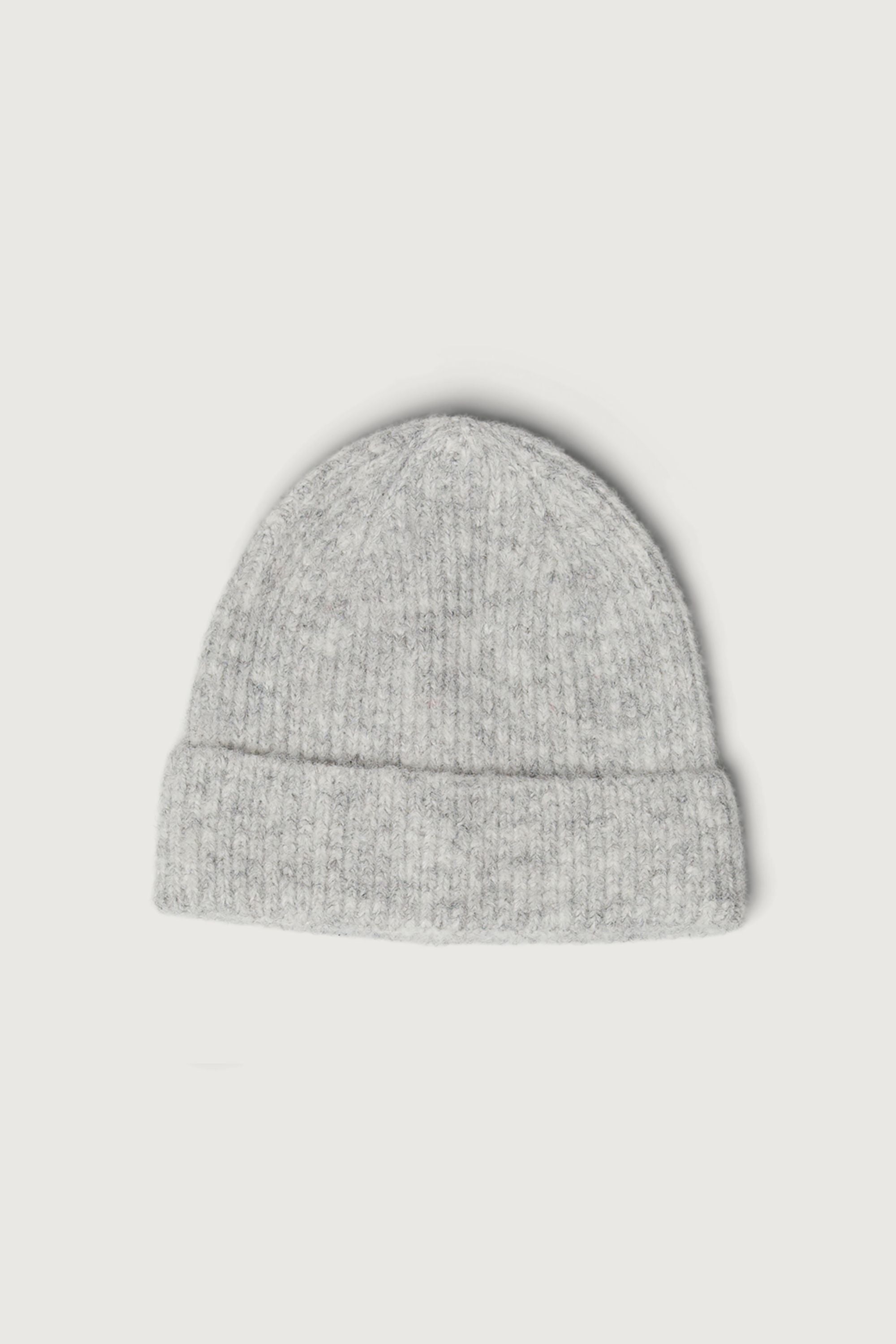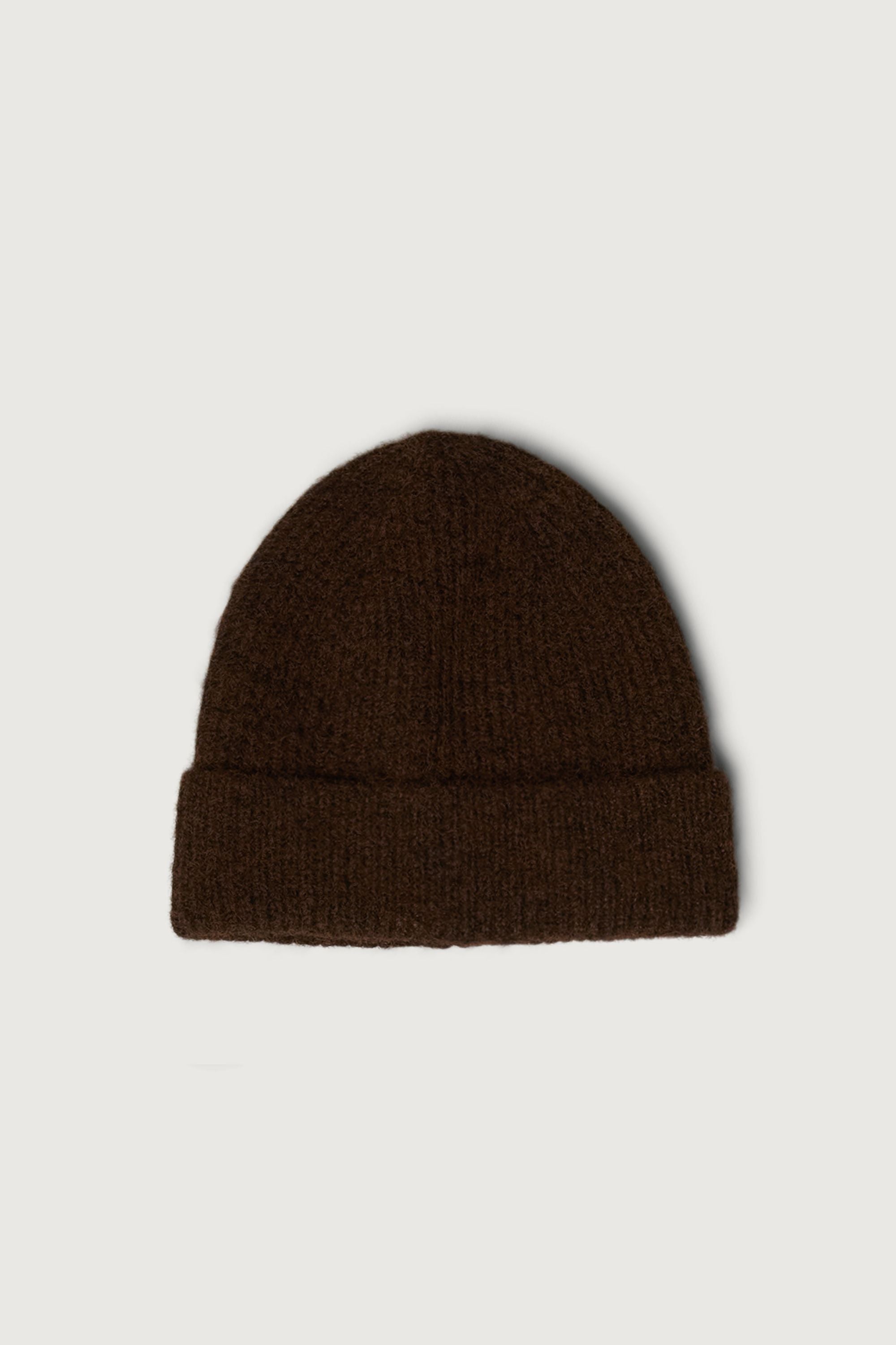 A cozy ribbed knit beanie with a soft, fuzzy texture that adds both warmth and tactile appeal. Designed in a classic fold-over silhouette, it offers a relaxed yet refined look for cooler days.