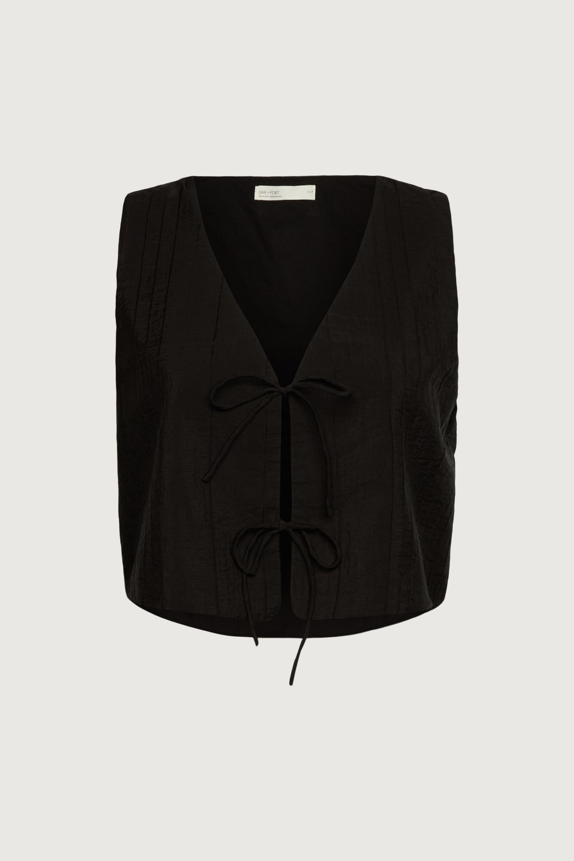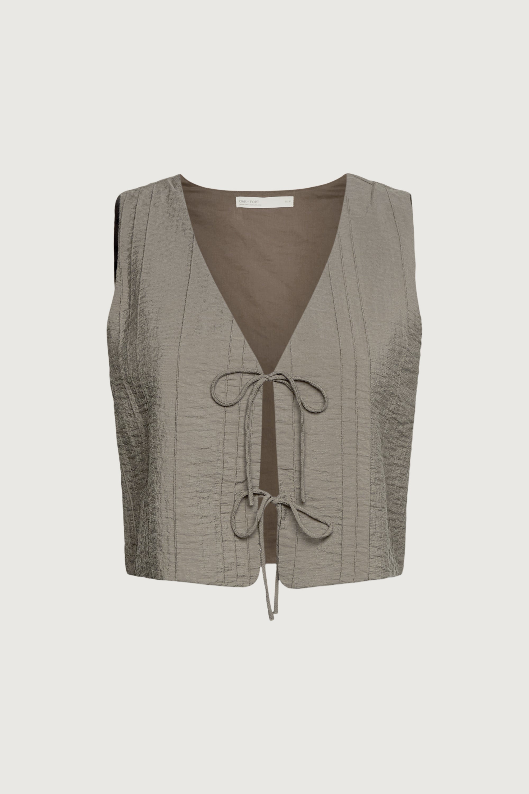 Gauzy textured lyocell blend. Short sleeves. Tie front design.