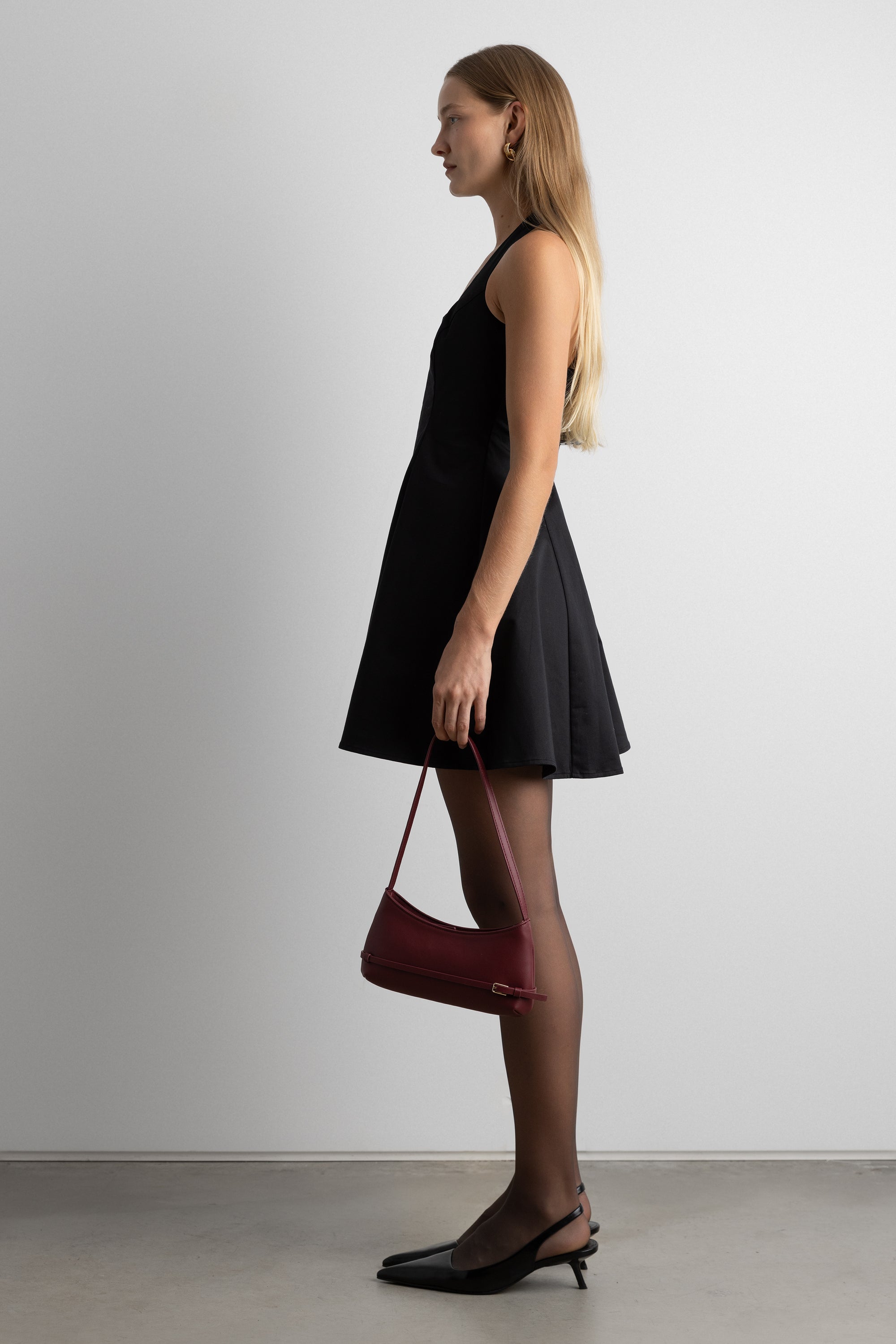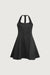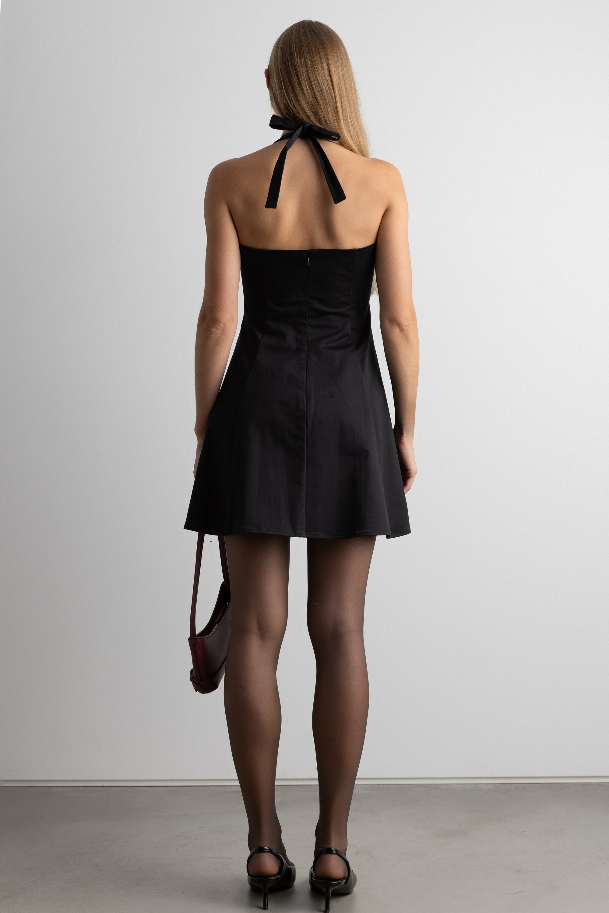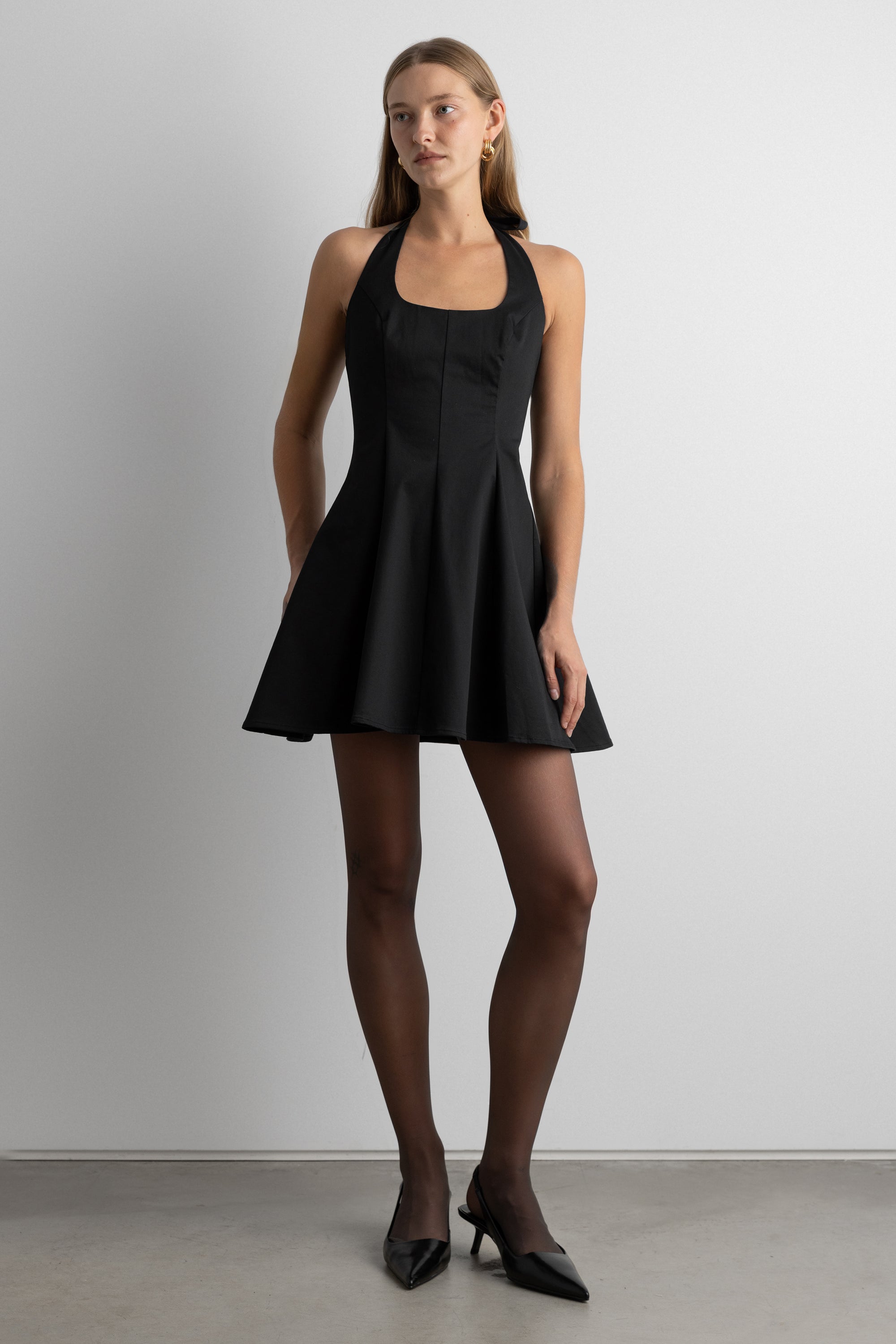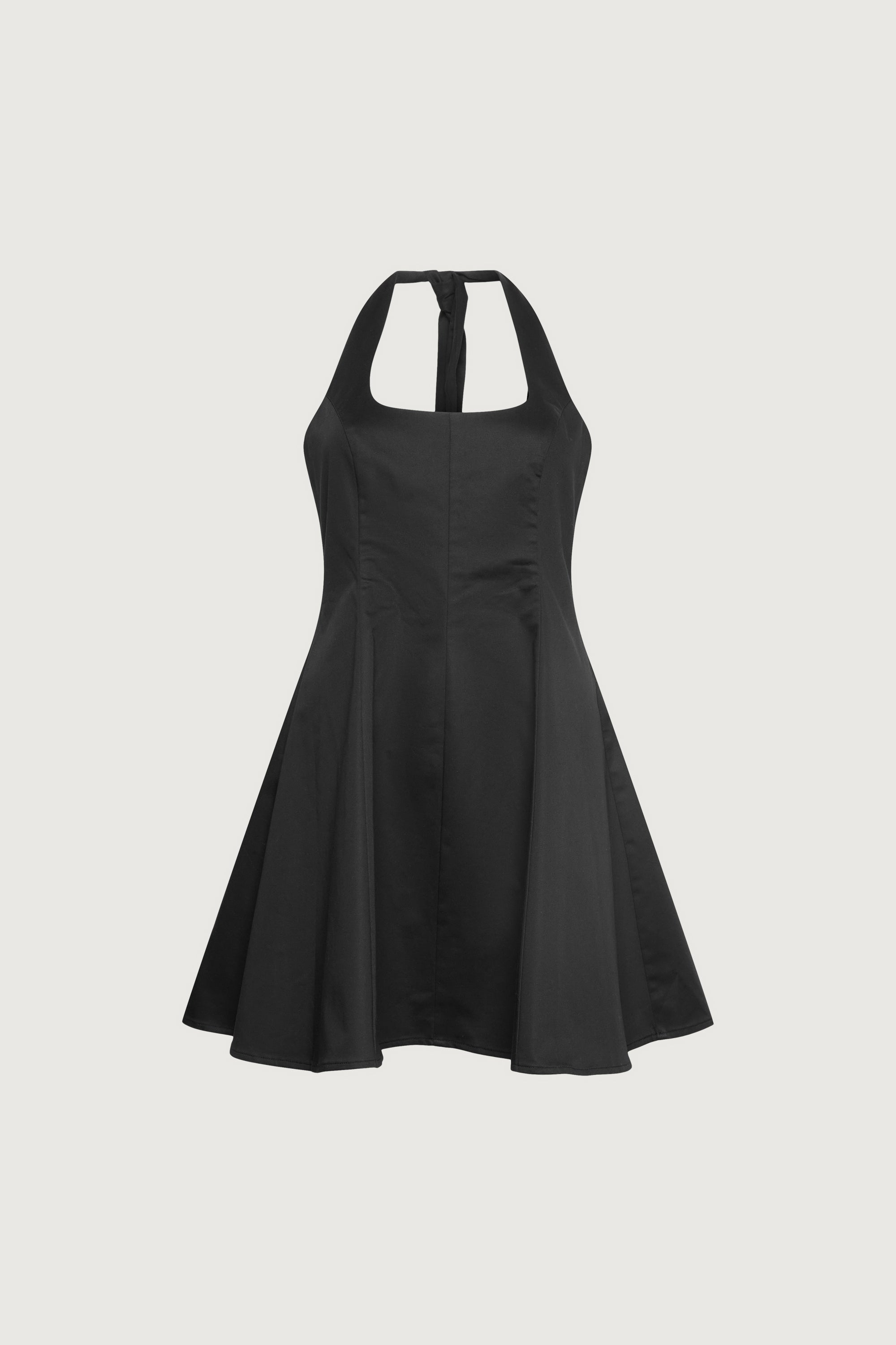 Cotton twill. Square neckline. Halter neck design. Flared skirt. Seam details.