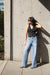 Suiting fabric with stretch. Halter neckline. Corozo button front closure. Welt pocket details. Princess seams. Lined interior.