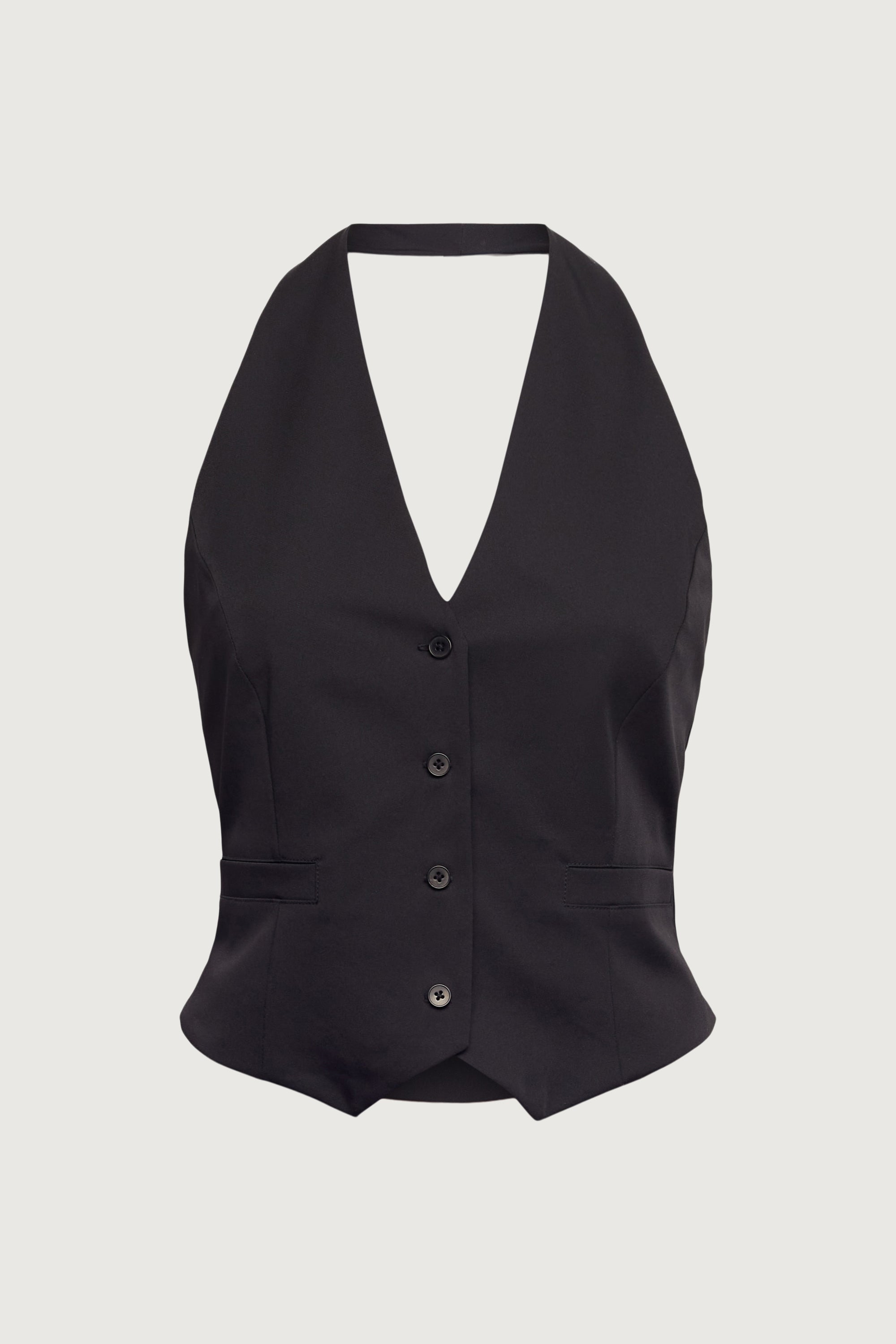 This halter suiting vest will be your new go-to this season. It's made in a slim fit with a button front, welt pocket details and princess seams to flatter your figure. Pair yours with matching trousers and kitten heels.