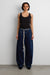 Dark wash, mid-weight denim. High-rise. Shoelace belt. 5-pocket design.
