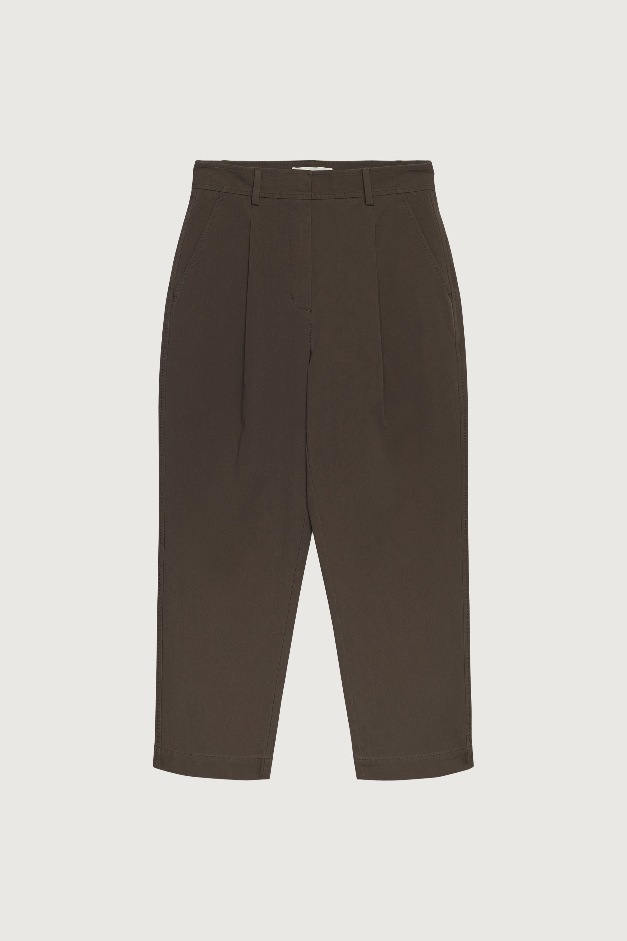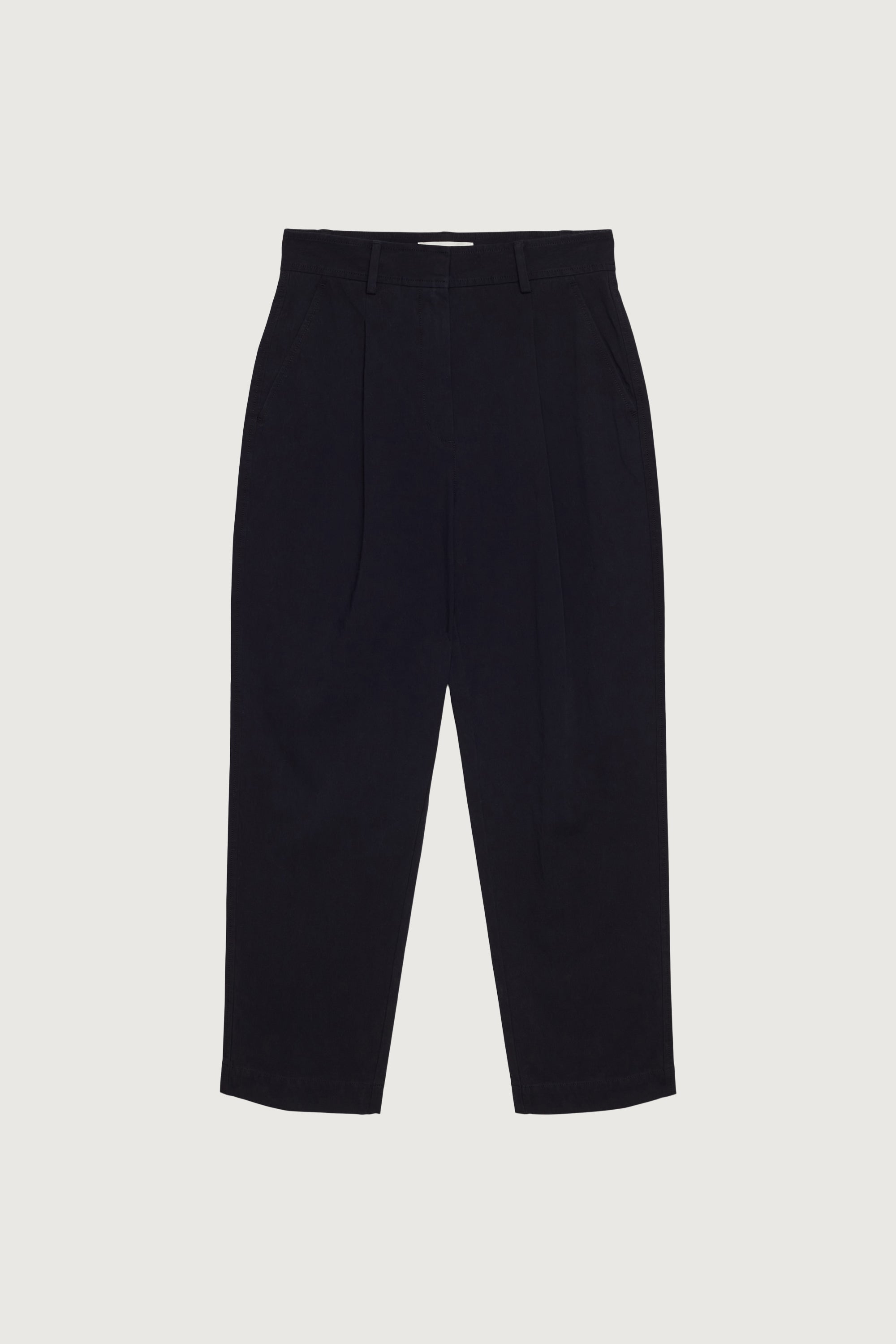 These high-rise tapered pants are cut from a cotton blend in a relaxed fit. It's complete with front pleats, slash pockets and a belt loop to emphasize the high-rise waist. An easy silhouette to style with a basic tee and sneakers.