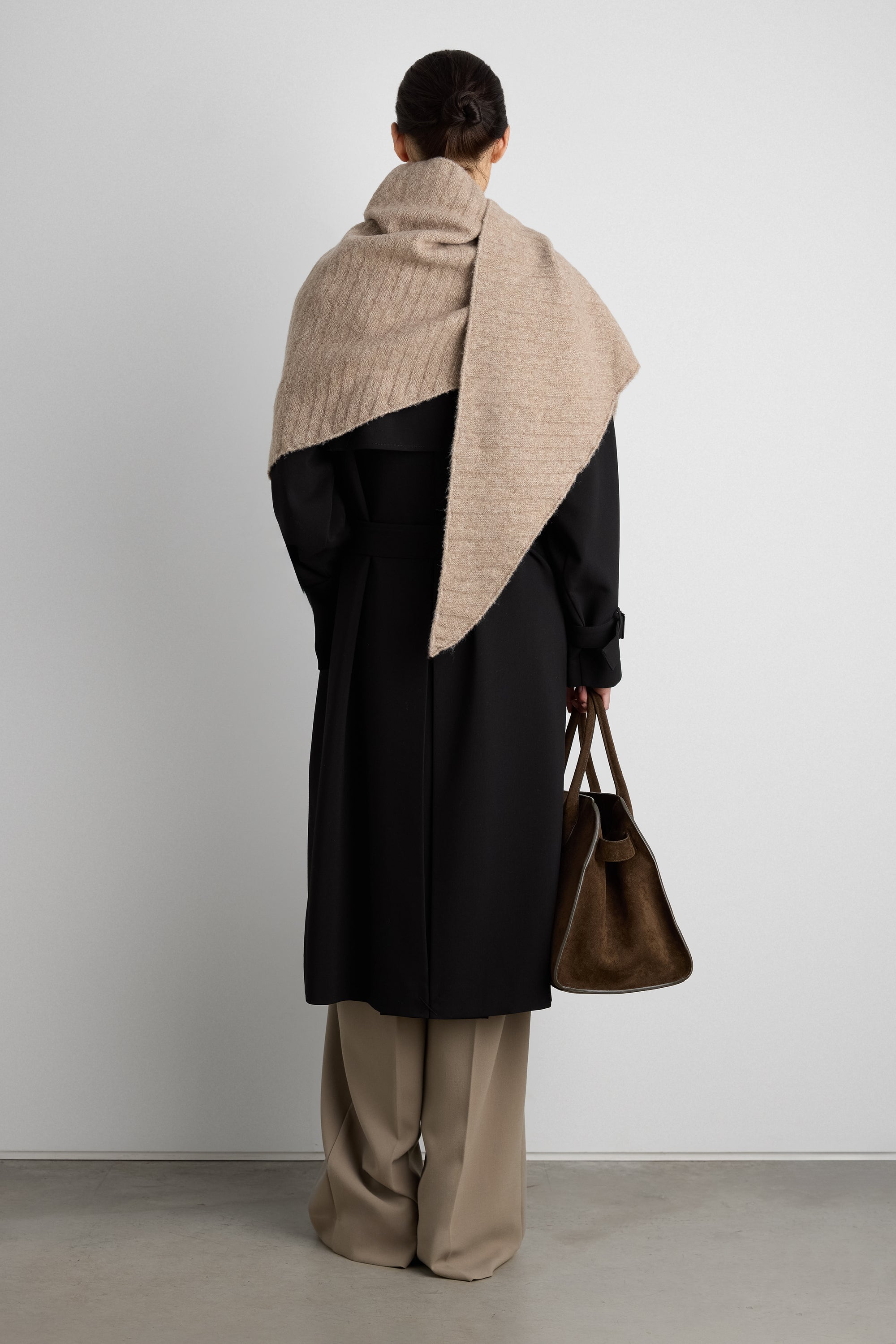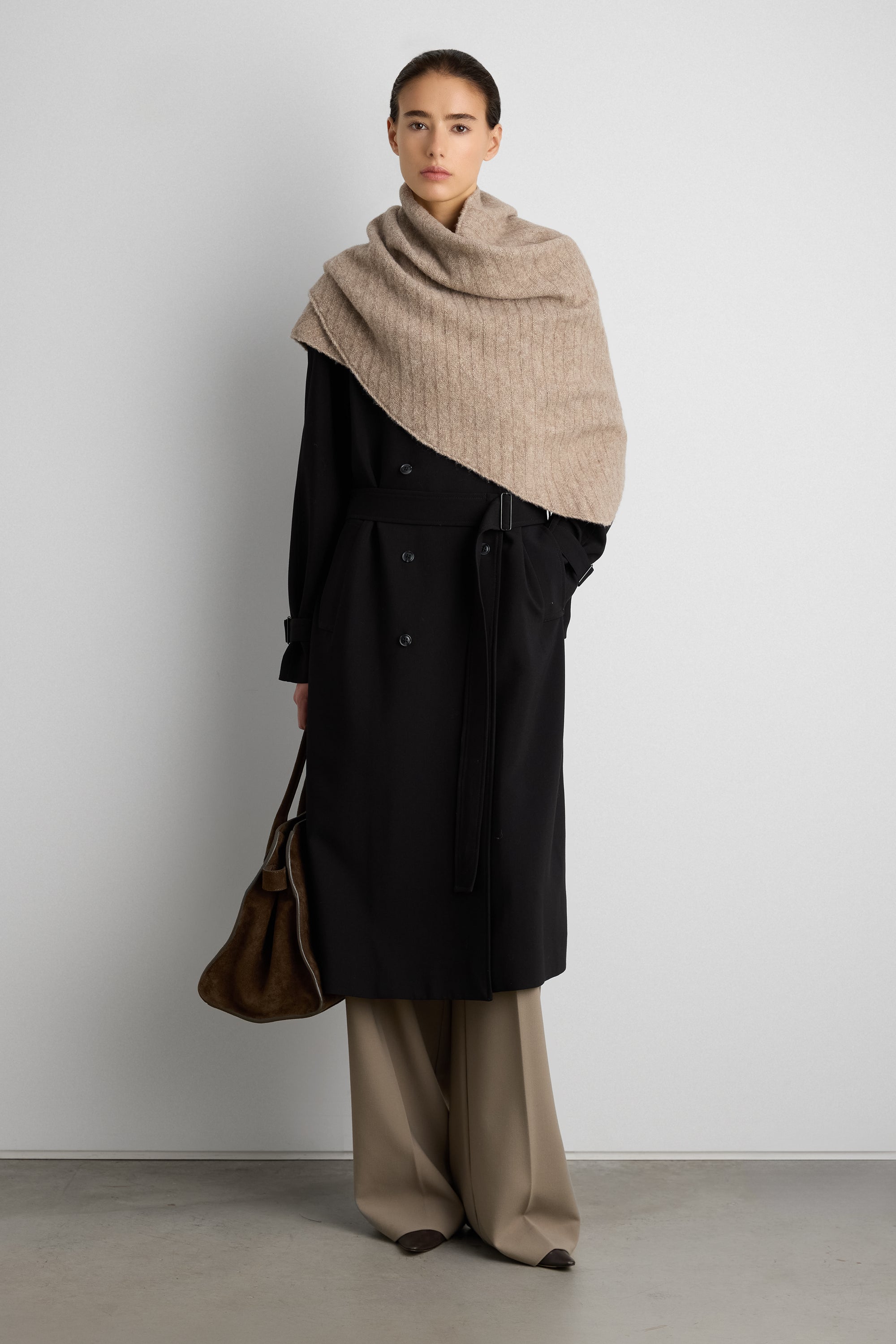 Your new go-to accessory this season — this knit scarf is versatile to add to every outfit. It's made in an asymmetrical shape with touches of wool for added warmth. Wear it around the neck, over the shoulders or even around the waist.
