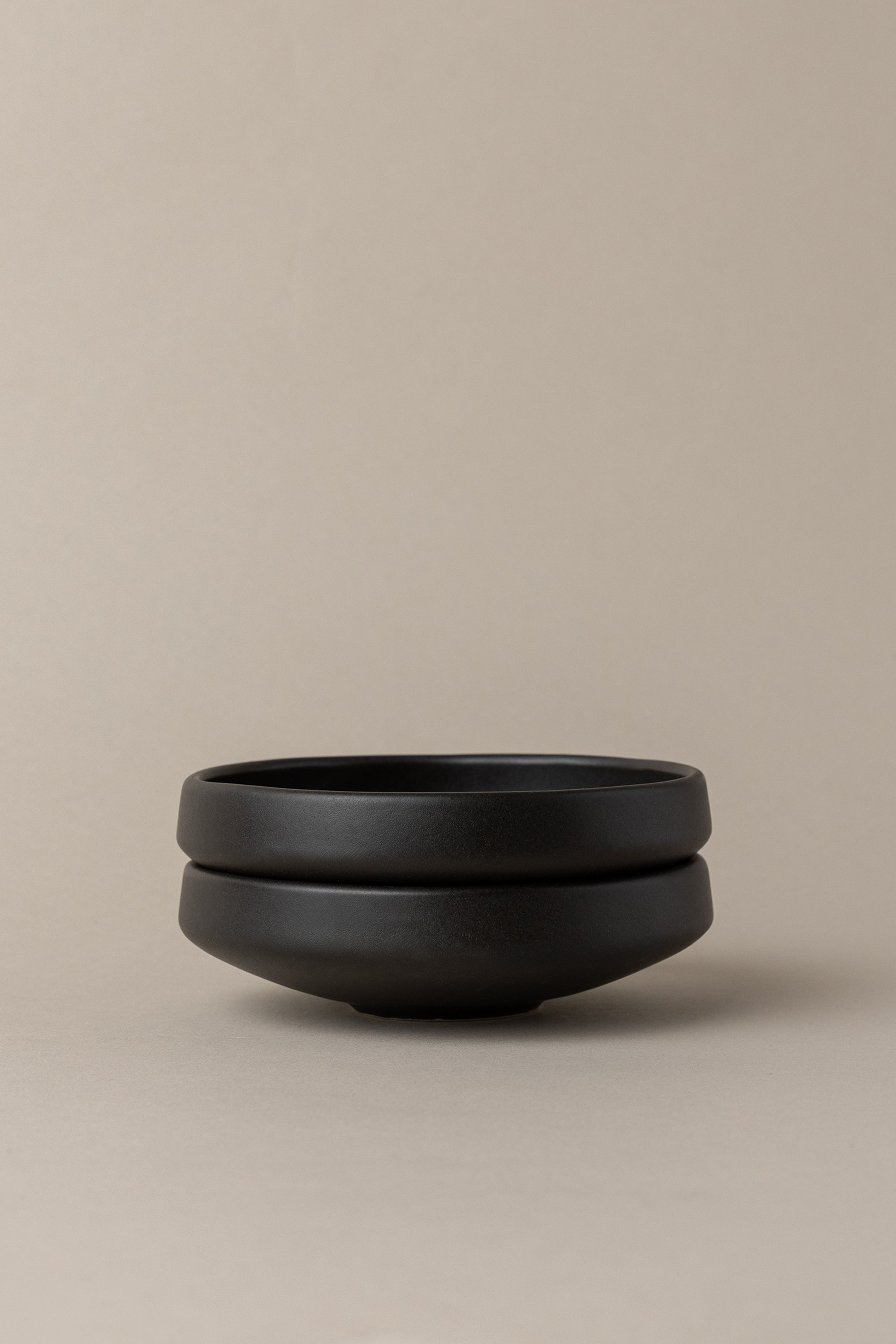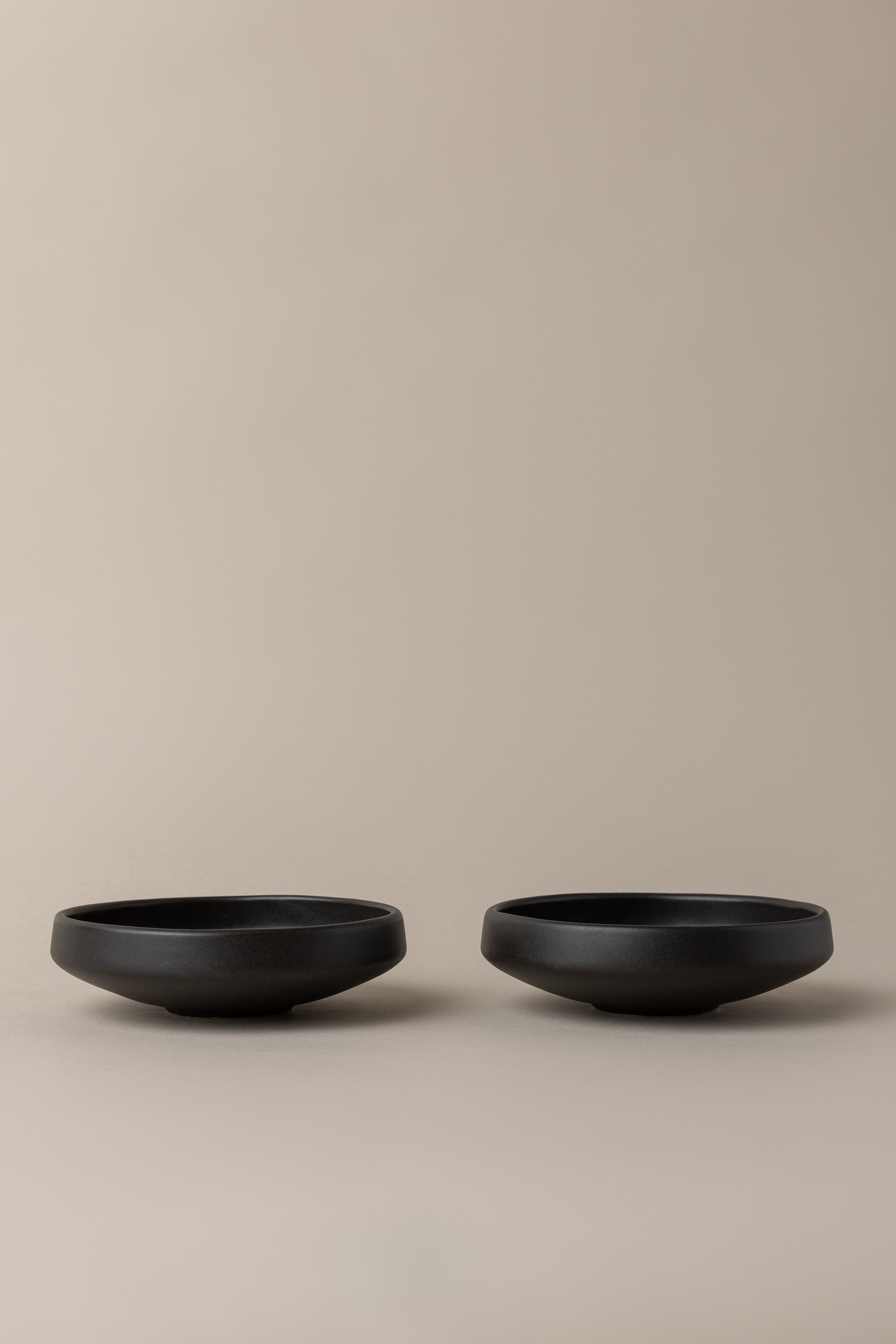 Defined by its clean lines and sculptural presence, this side bowl brings a modern edge to the table. The rounded walls and low profile create a balanced, minimal form that’s as versatile as it is striking. Finished in a rich, stain black glaze, the surface feels both refined and grounding. Each piece is hand-stamped with the SENN logo. Perfect for everyday dining or layered with other dinnerware for a contemporary tablescape. Sold as a set of 2.