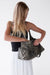 Leopard print. Exterior Pockets. Double shoulder strap. Snap tab closure