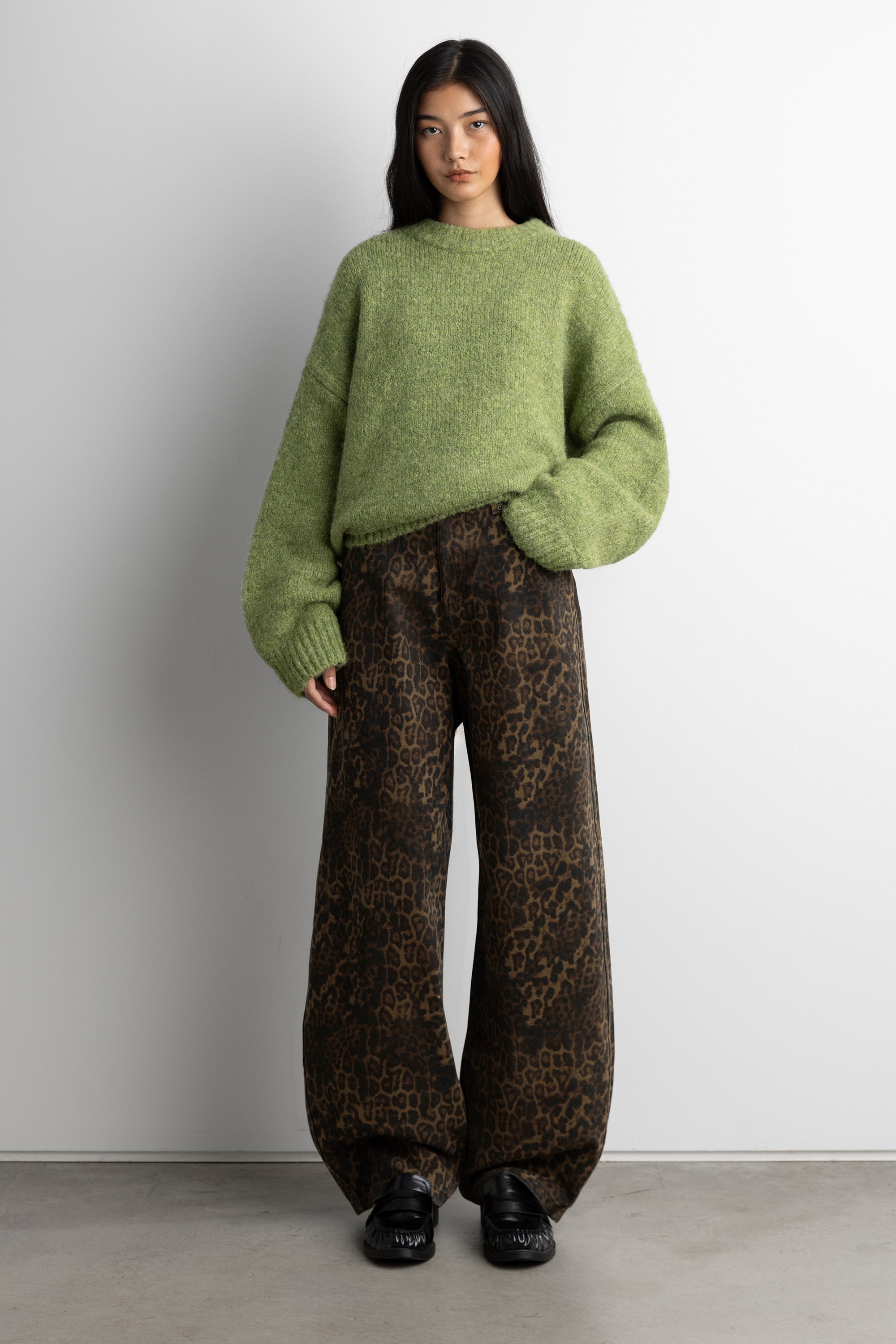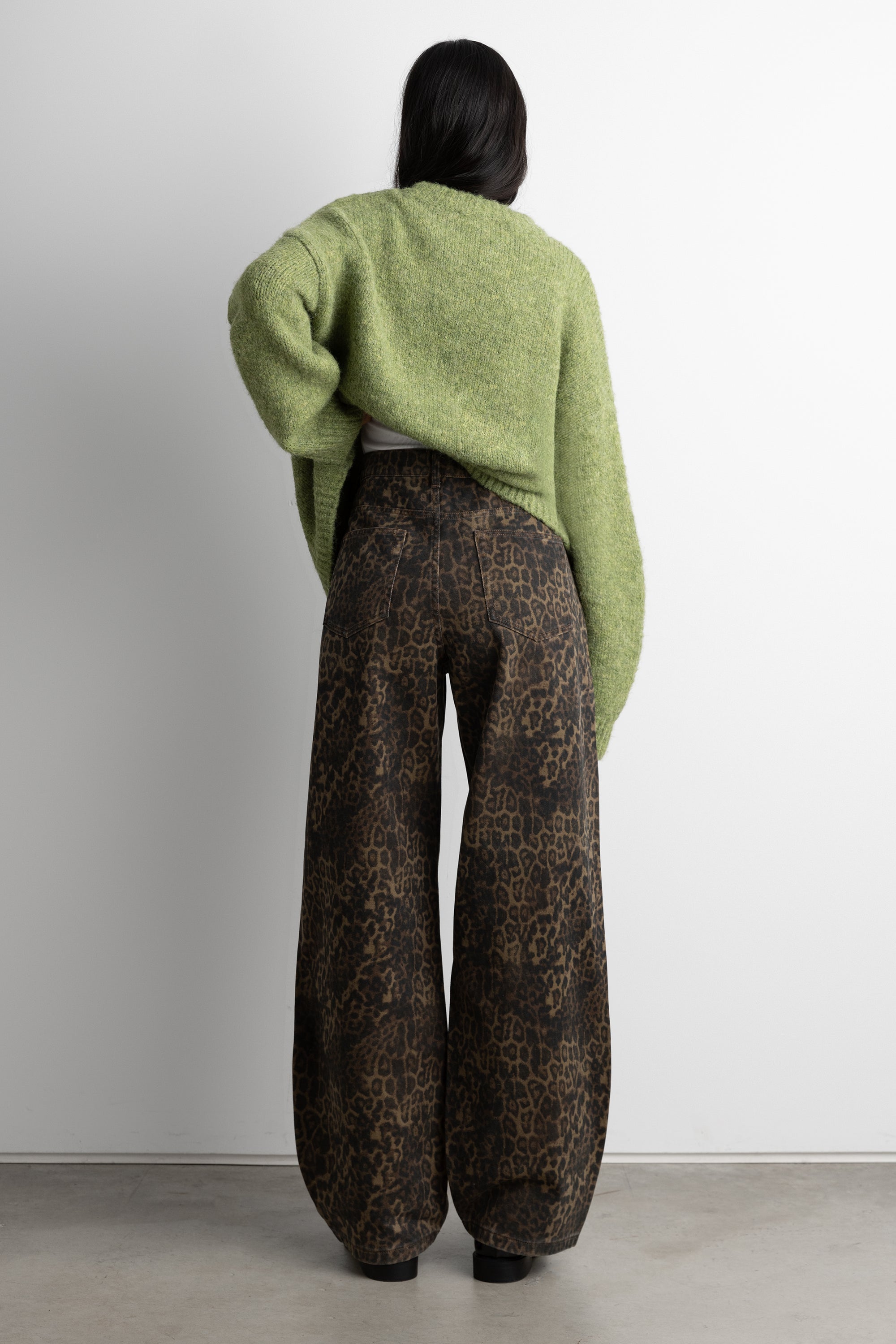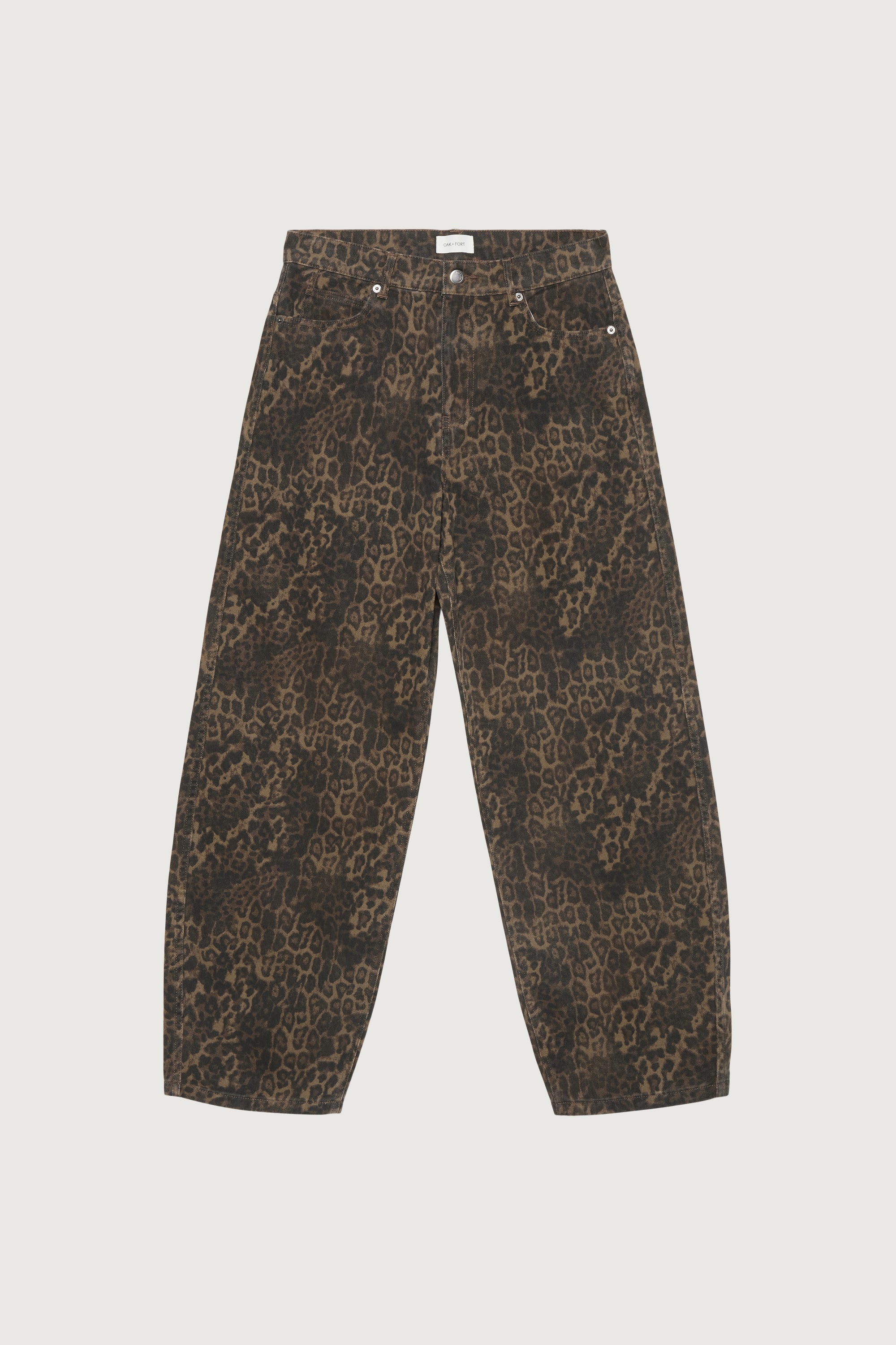 These barrel leg jeans feature a dark leopard print and is made in a relaxed fit. It has a mid-rise waist and its baggy curved leg silhouette adds a statement to all your looks this season. Pair yours with a crewneck tee and a trench coat.
