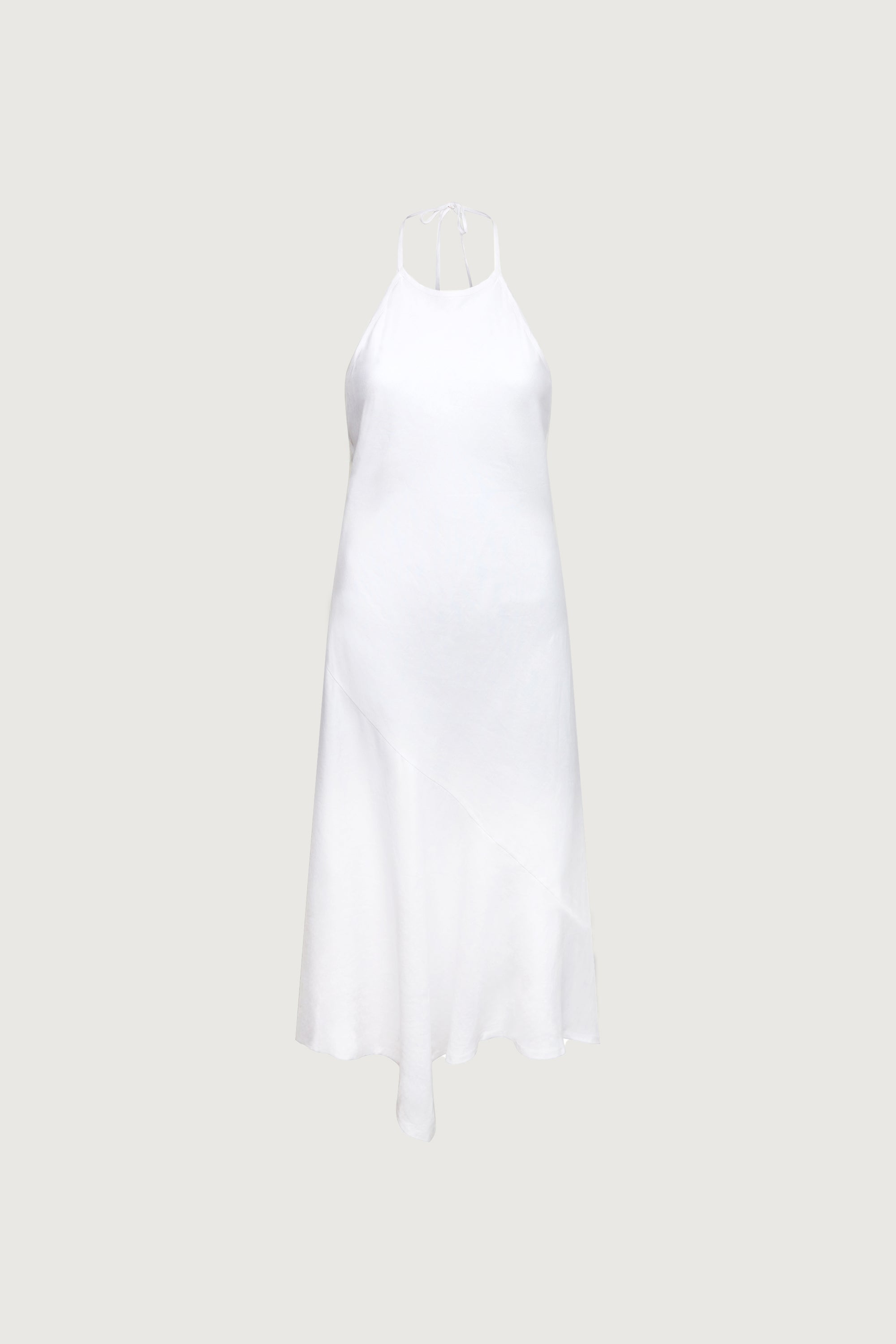 This halter neck midi dress is cut from a linen rayon blend in a classic fit. It has a high neckline with ties and a bias cut panel that accentuates the handkerchief hemline. A new essential for your spring and summer wardrobe, pair yours with bold earrings and heeled sandals.