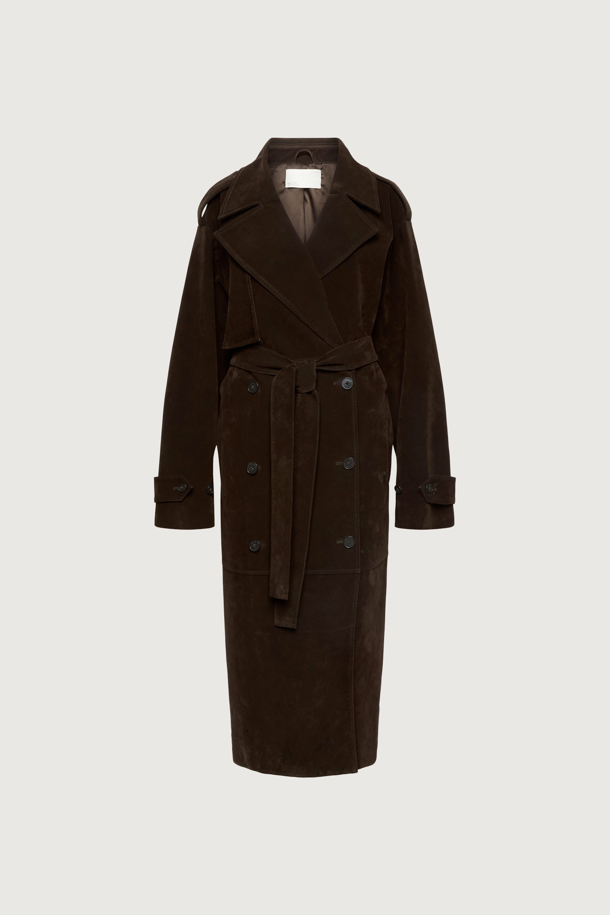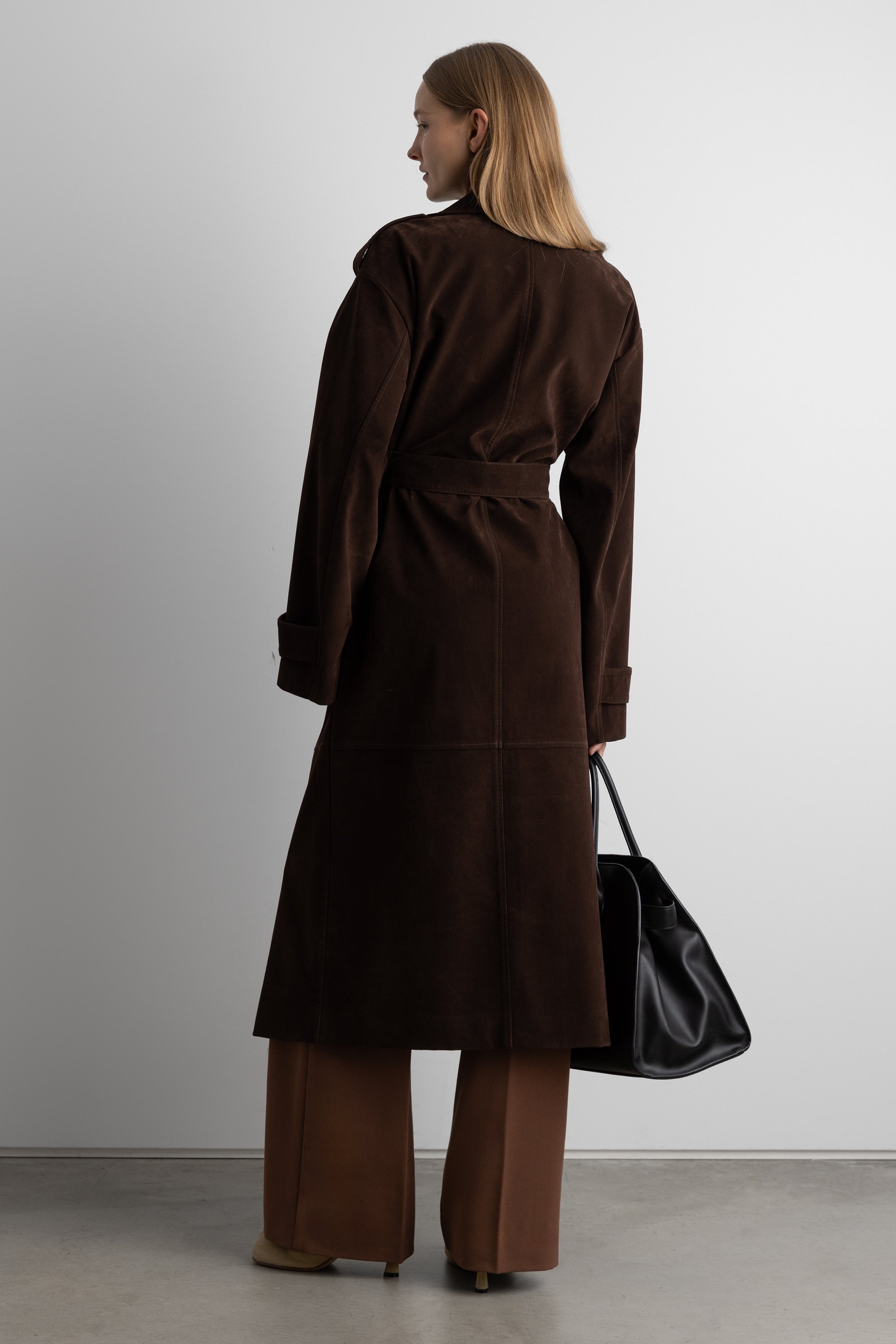 LONG PANELED VEGAN SUEDE TRENCH COAT