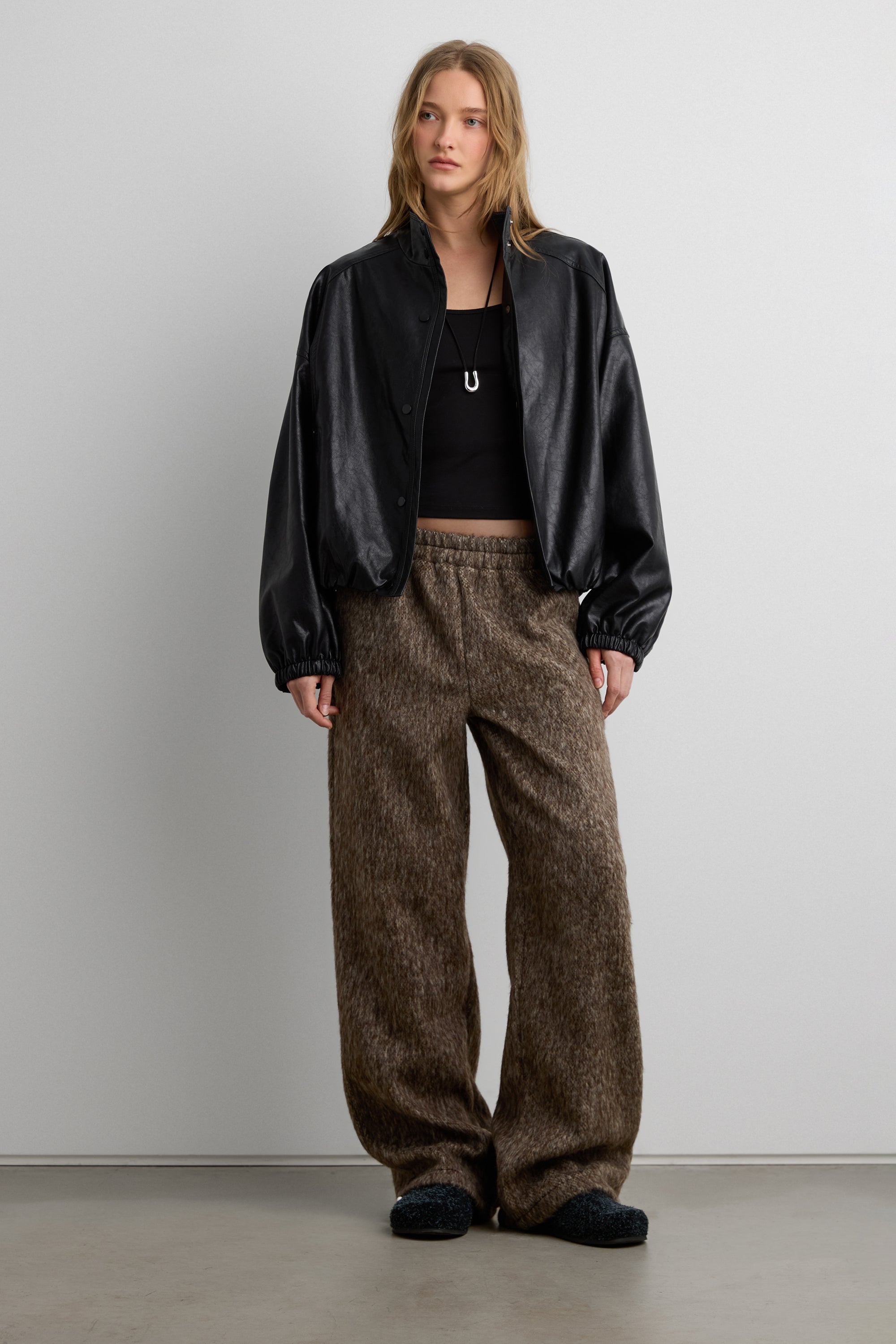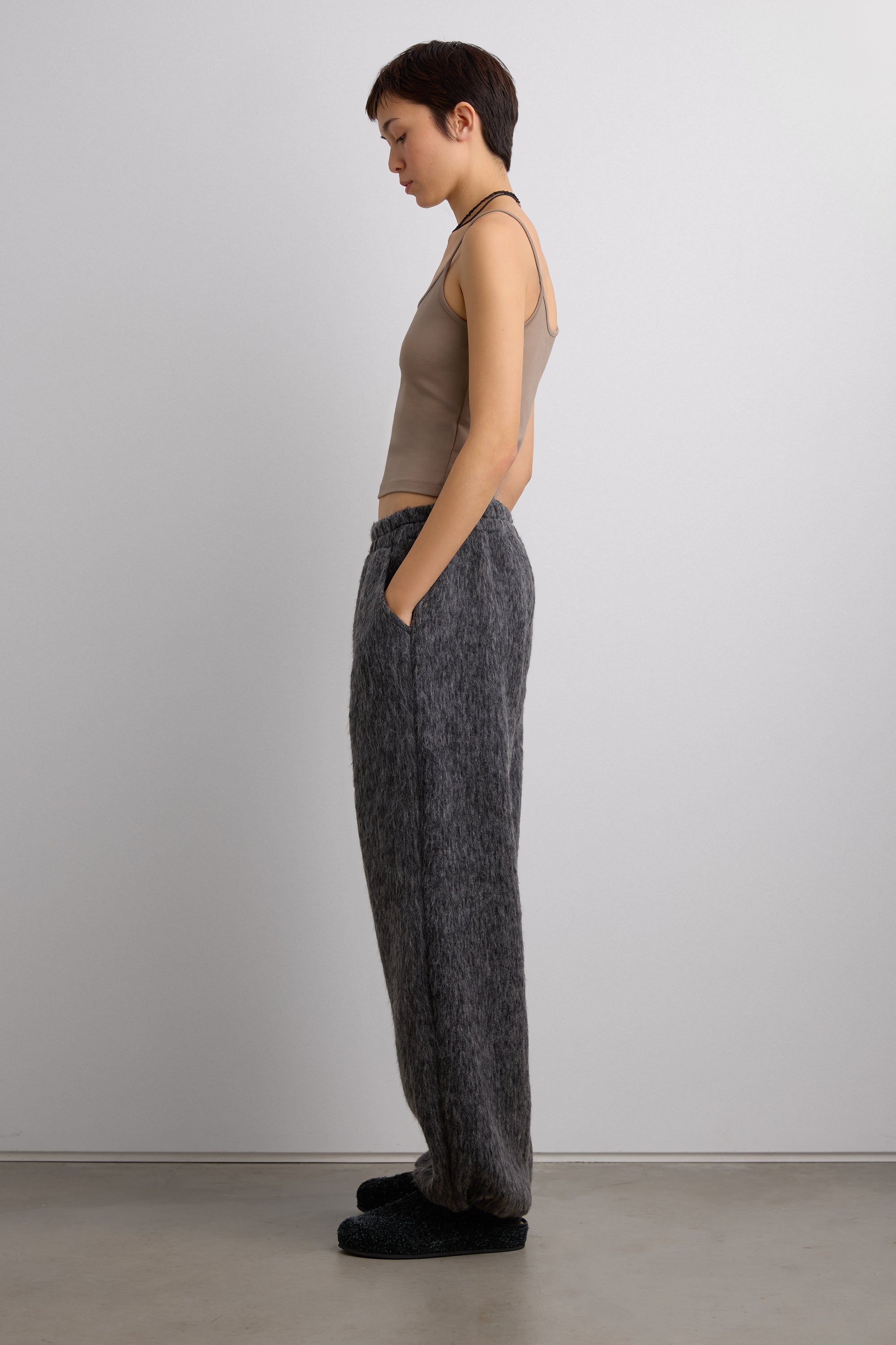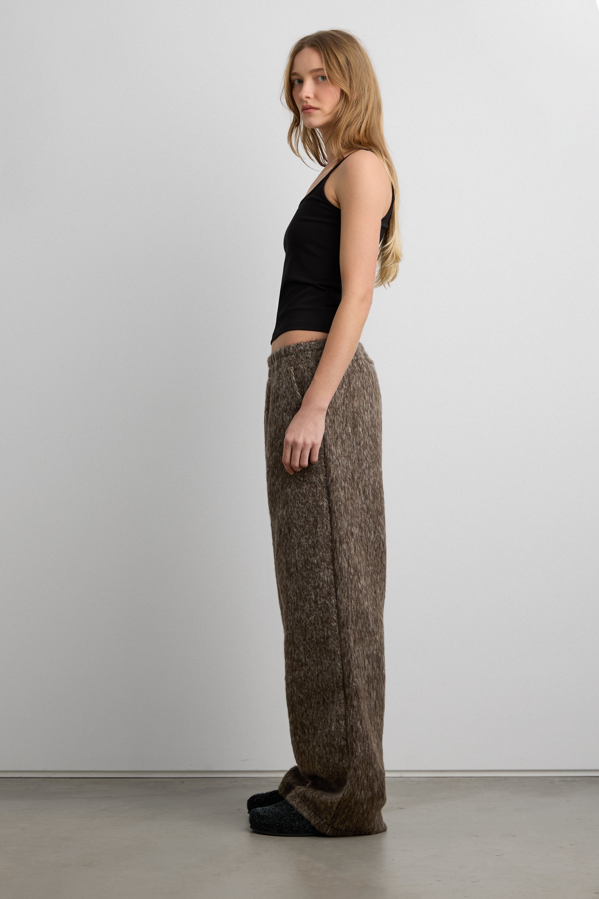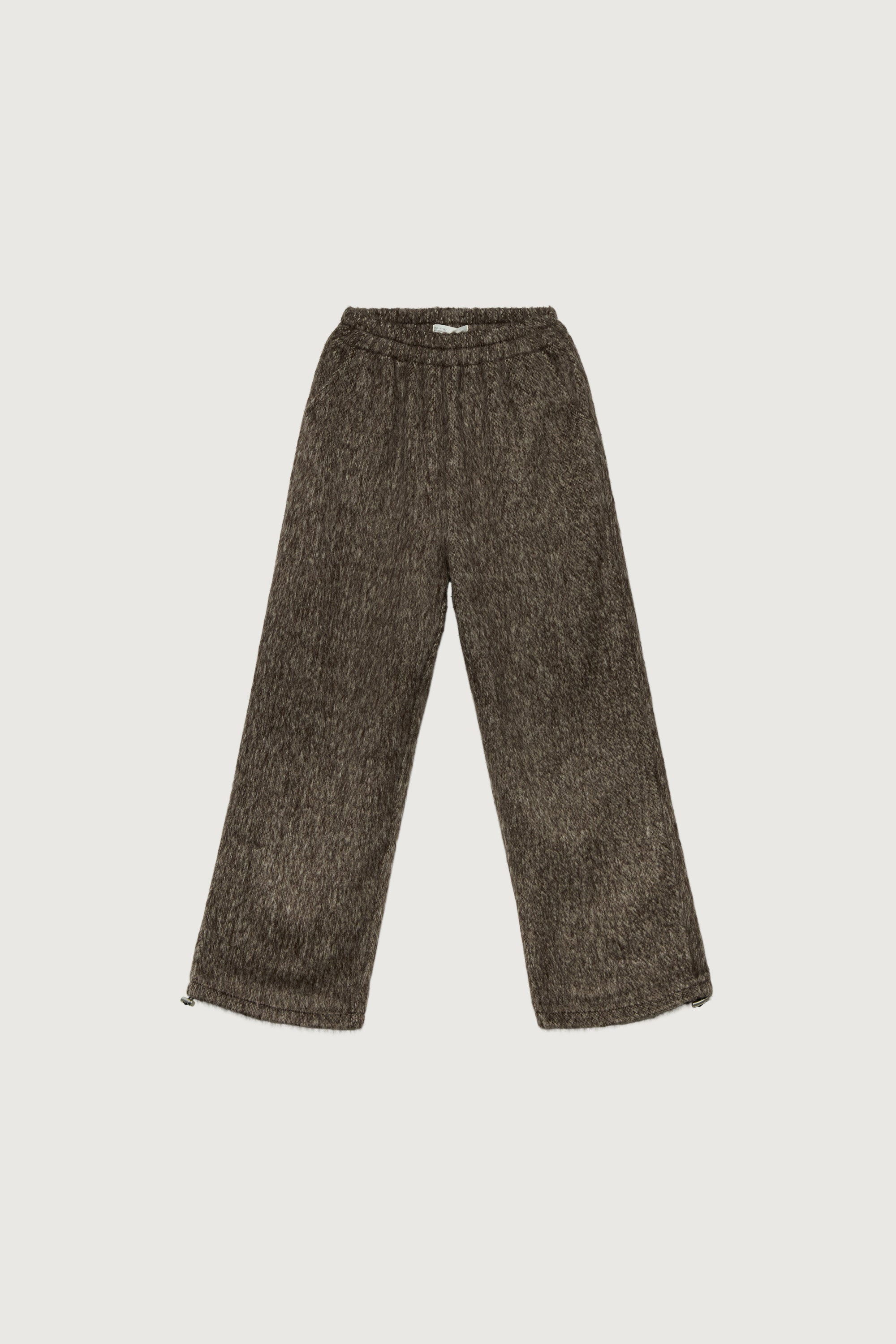These marled pants feature a soft textured finish and an easy elastic waistband for everyday comfort. Designed with a relaxed straight-leg silhouette, they offer a cozy yet refined look that pairs effortlessly with knits and outerwear.