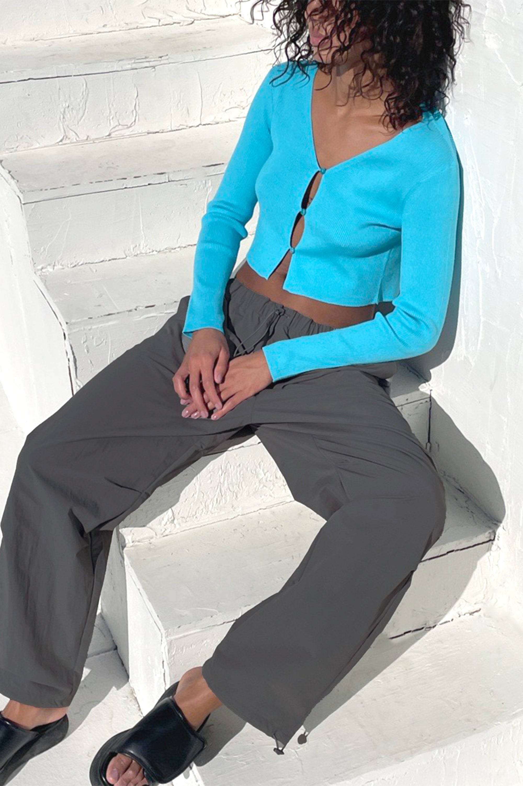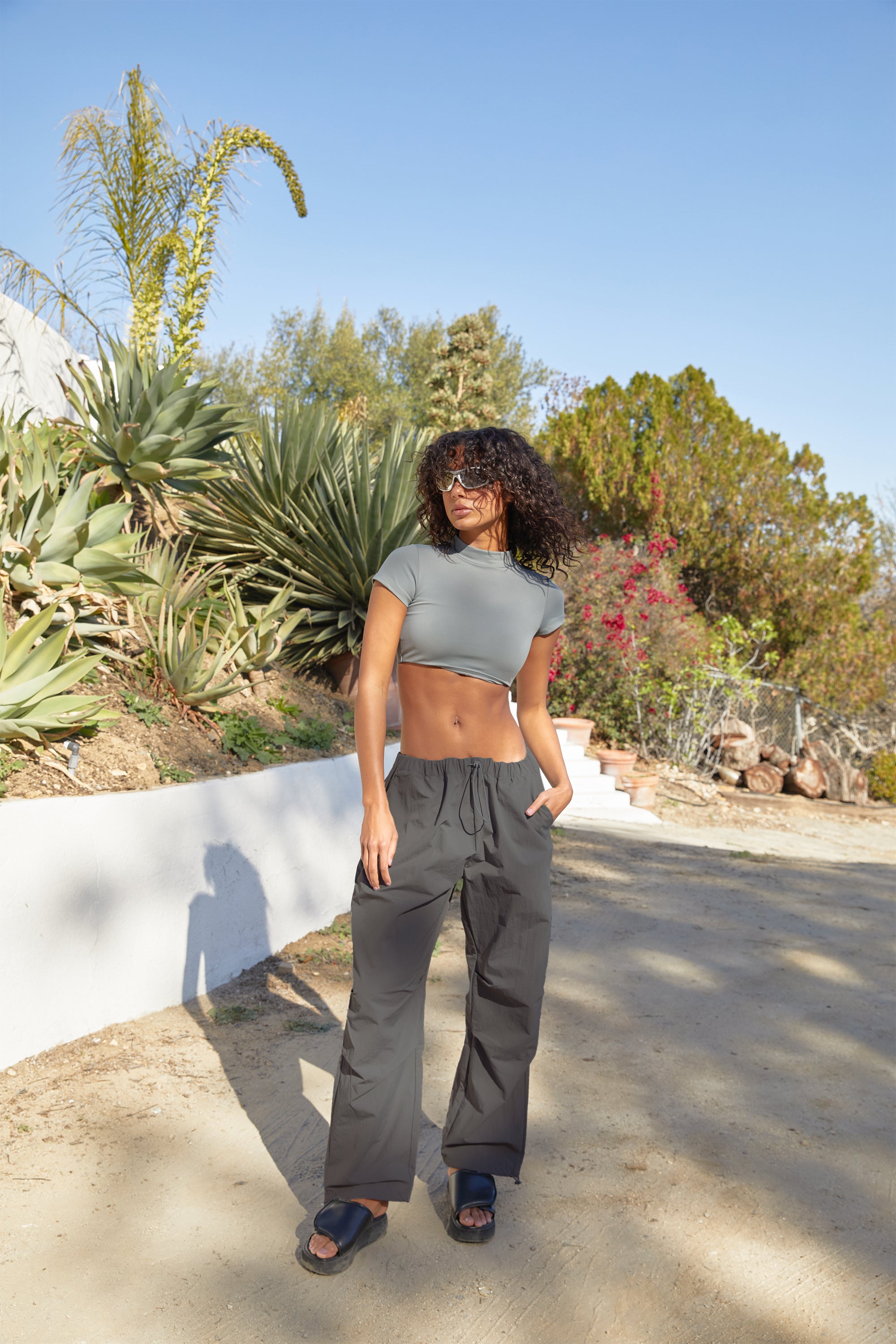 These baggy parachute pants are cut from recycled nylon in a relaxed fit. It has pleats at the knee and shock cord details on the elasticated waist and hem. Wear yours with a basic tank and sneakers.