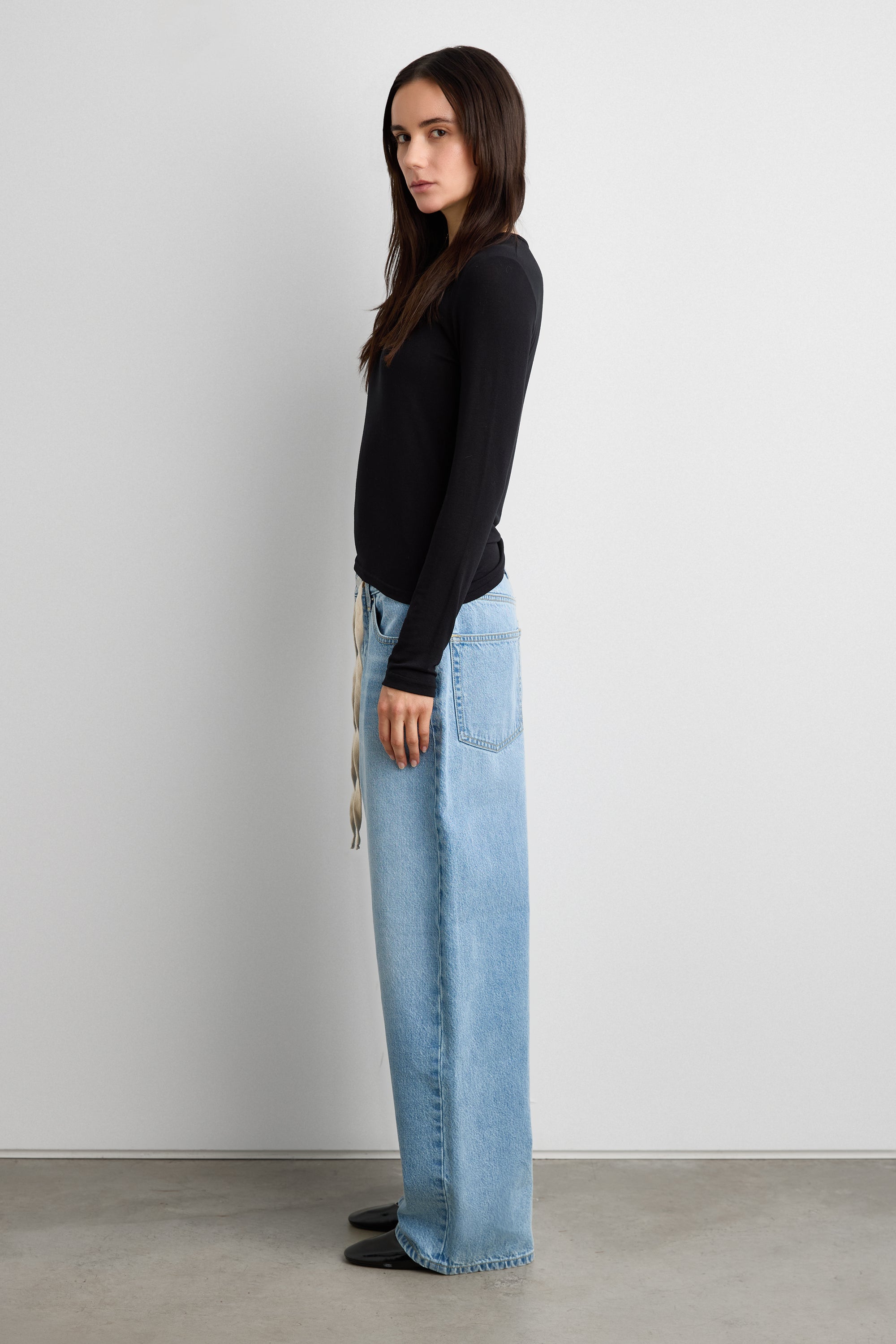 MID-RISE WIDE LEG JEAN WITH DRAWSTRING WAIST