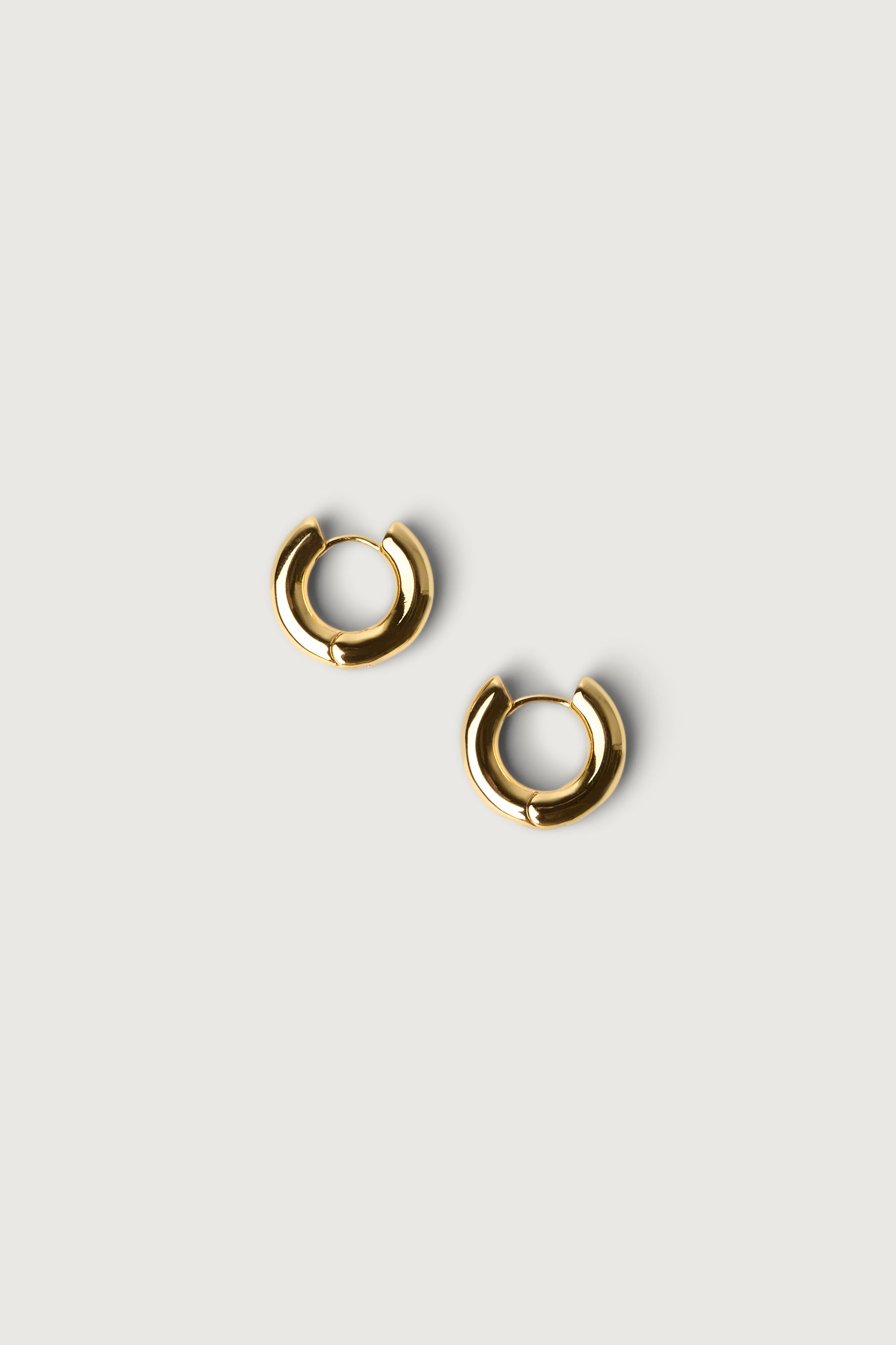 This minimal huggie hoop earring offers a sleek, close-to-the-ear fit for a modern, understated look. It features a secure hinge clasp for easy, comfortable wear. Made for everyday styling, it pairs effortlessly with other earrings or can be worn alone for a simple statement.