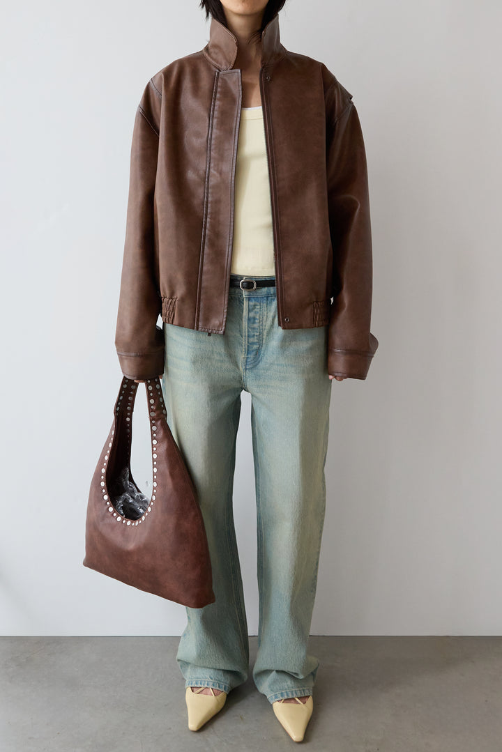 Vintage inspired vegan leather bomber jacket in vintage brown — main imageVINTAGE INSPIRED VEGAN LEATHER BOMBER JACKET in Vintage Brown — alternate angle