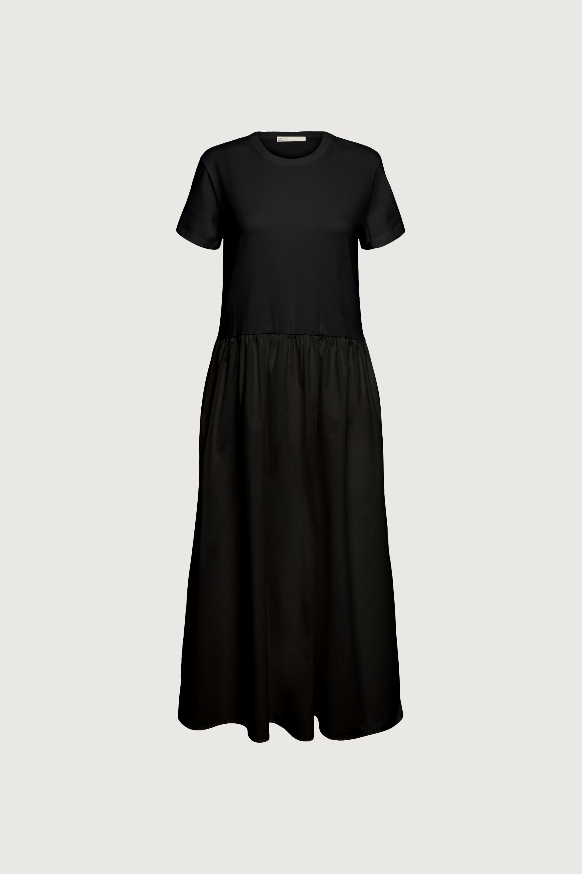 This t-shirt style maxi dress has a knit bodice and a nylon-style skirt with a pocket. Wear yours this season with sandals or dress it up with accessories and kitten heels.