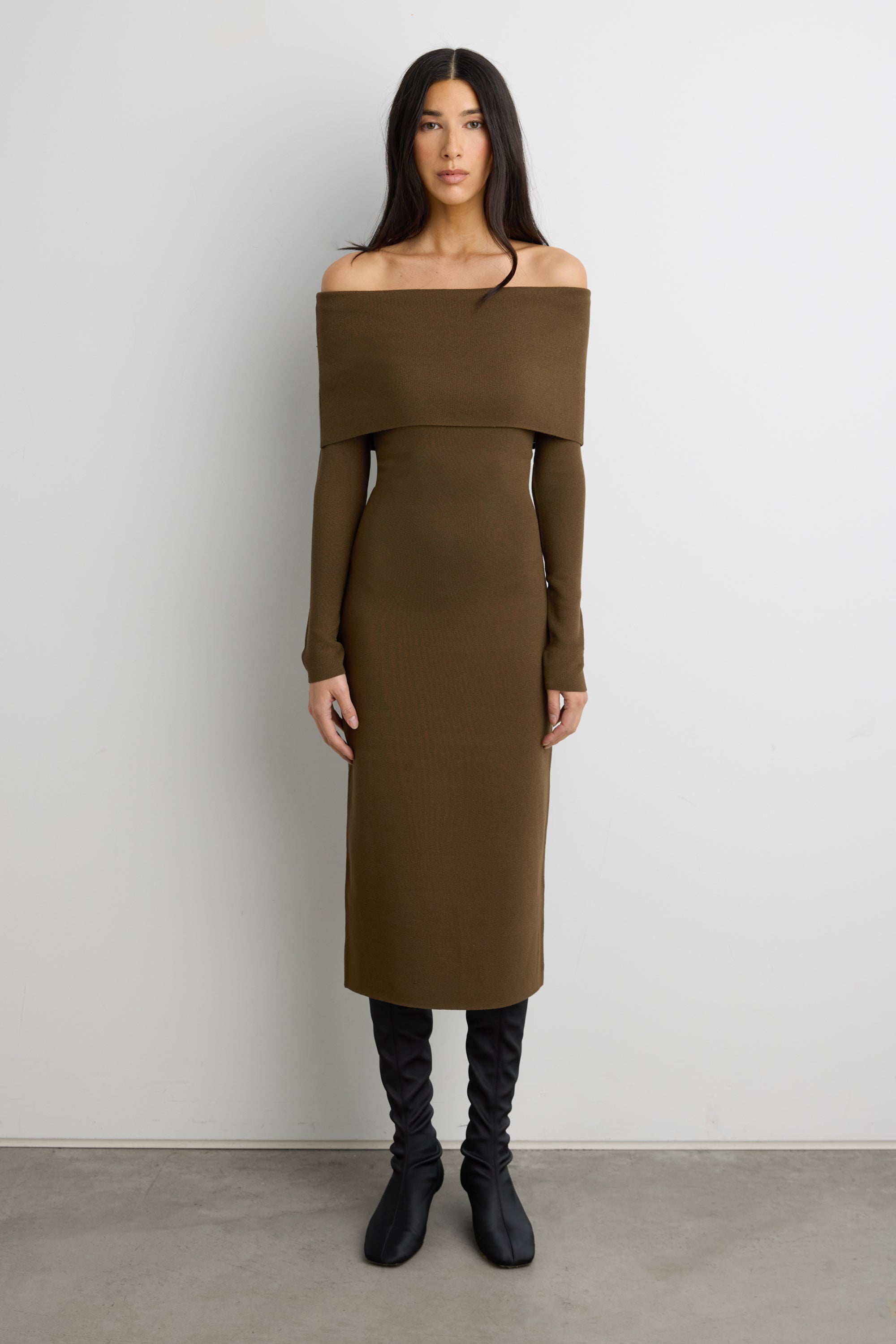 OFF THE SHOULDER LONG SLEEVE MIDI DRESS
