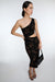 Floral jacquard. One shoulder sleeveless design. Cutout detail.