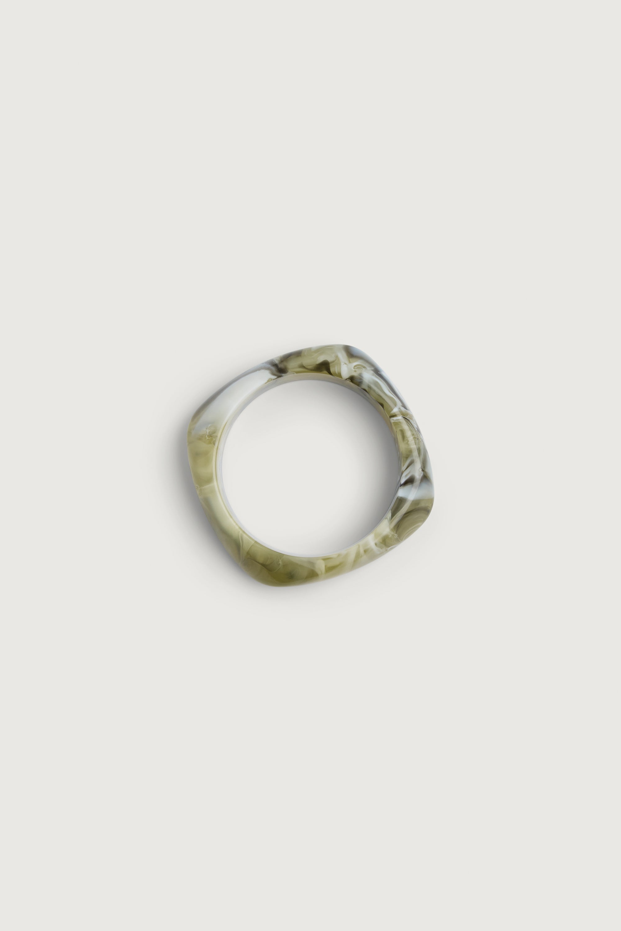 Designed with an irregular, sculpted shape, this bangle adds subtle dimension to everyday styling. Its fluid form creates a soft statement while remaining easy to layer.