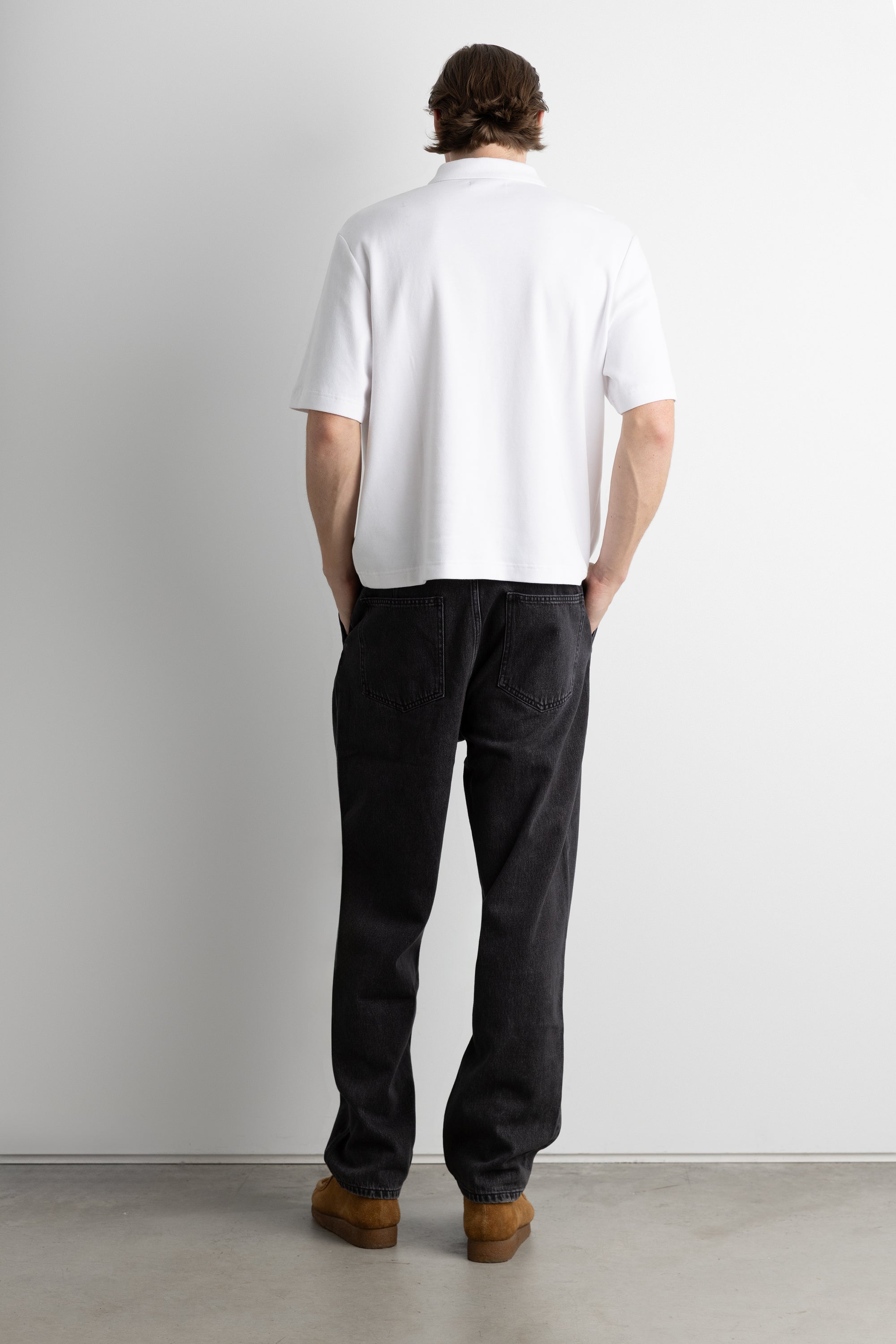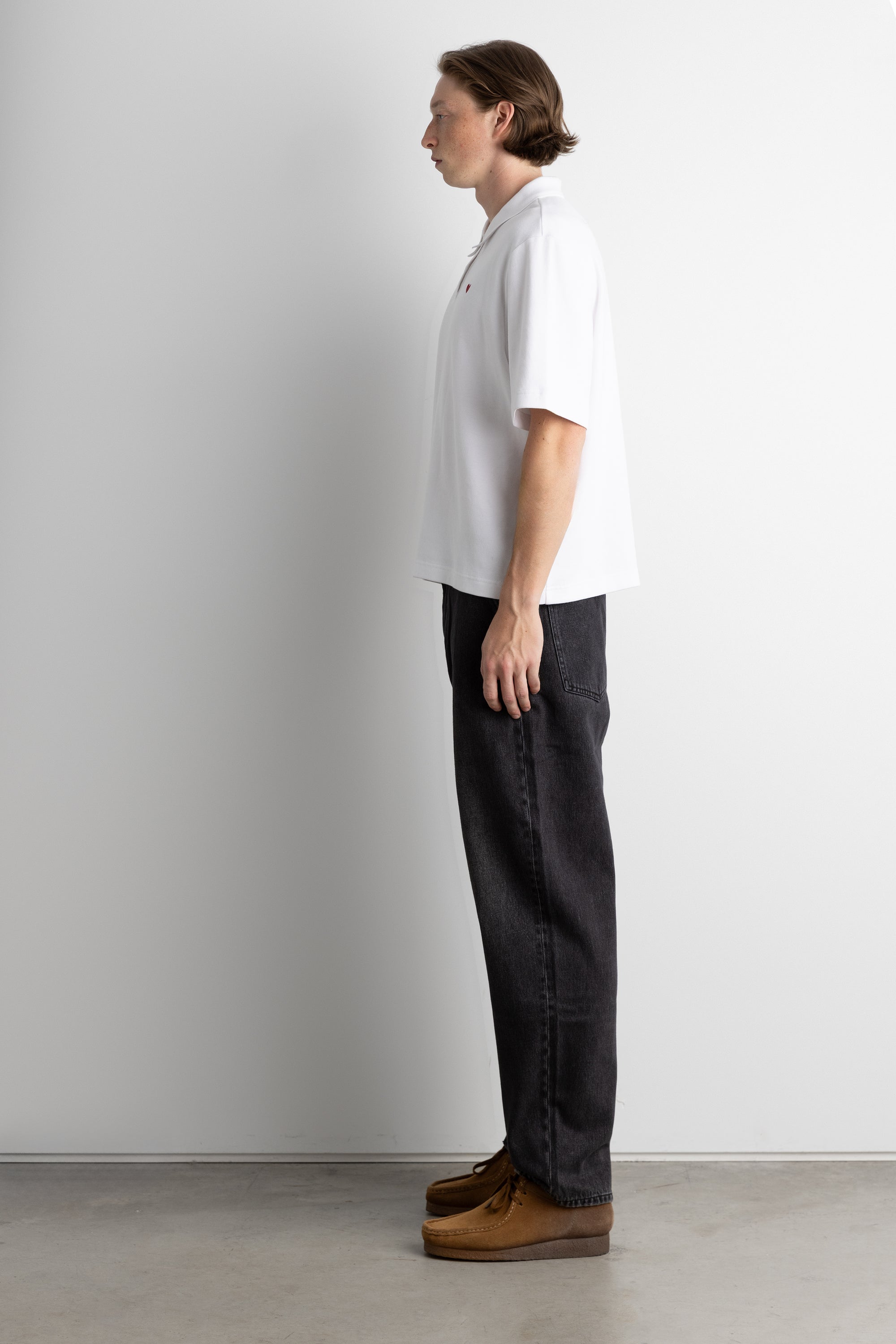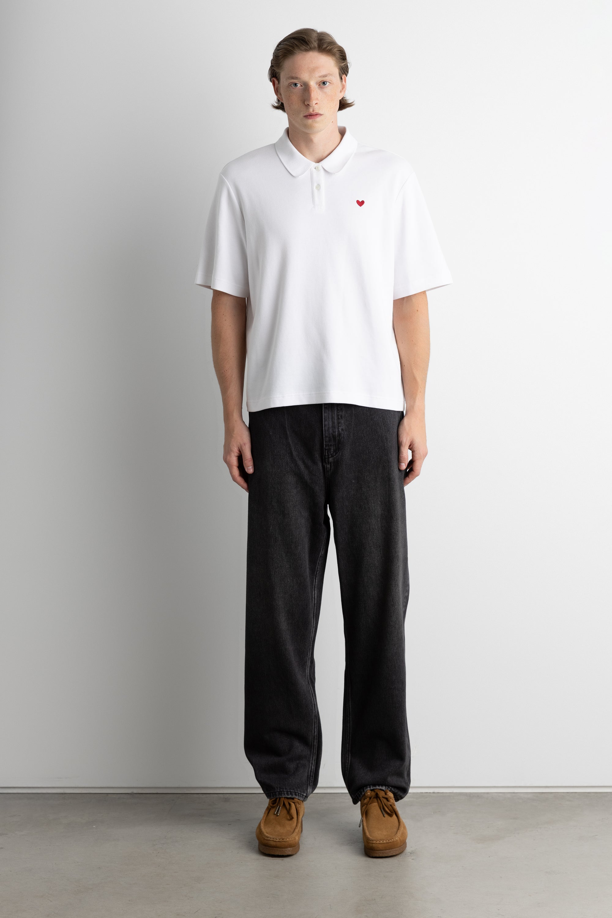 Oversized fit. Cotton blend fabric . Ribbed quarter button up collar. Tiny heart embroidery. 27” based on size M.
