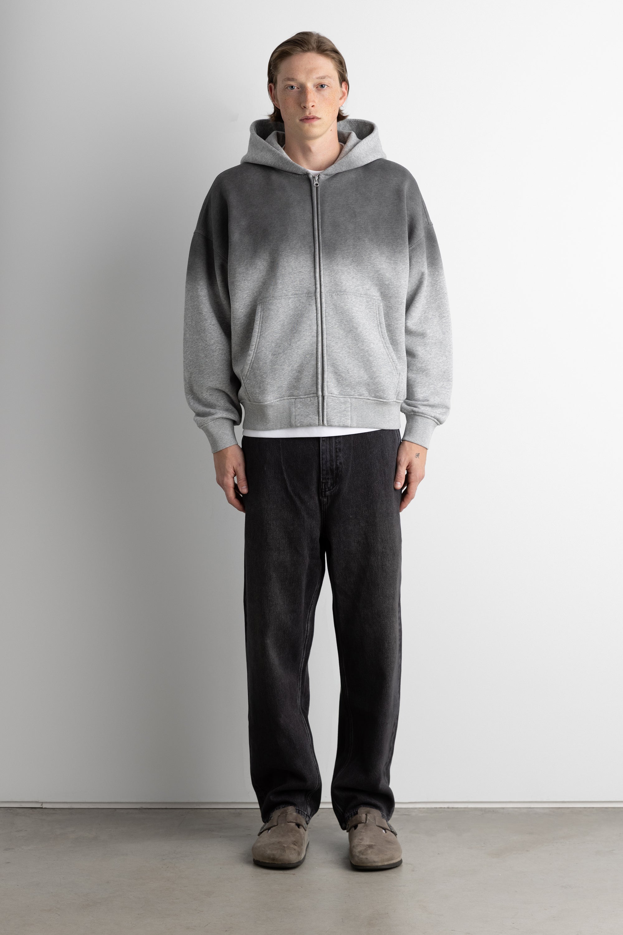 OVERSIZED BOXY OMBRE EFFECT ZIP UP HOODIE