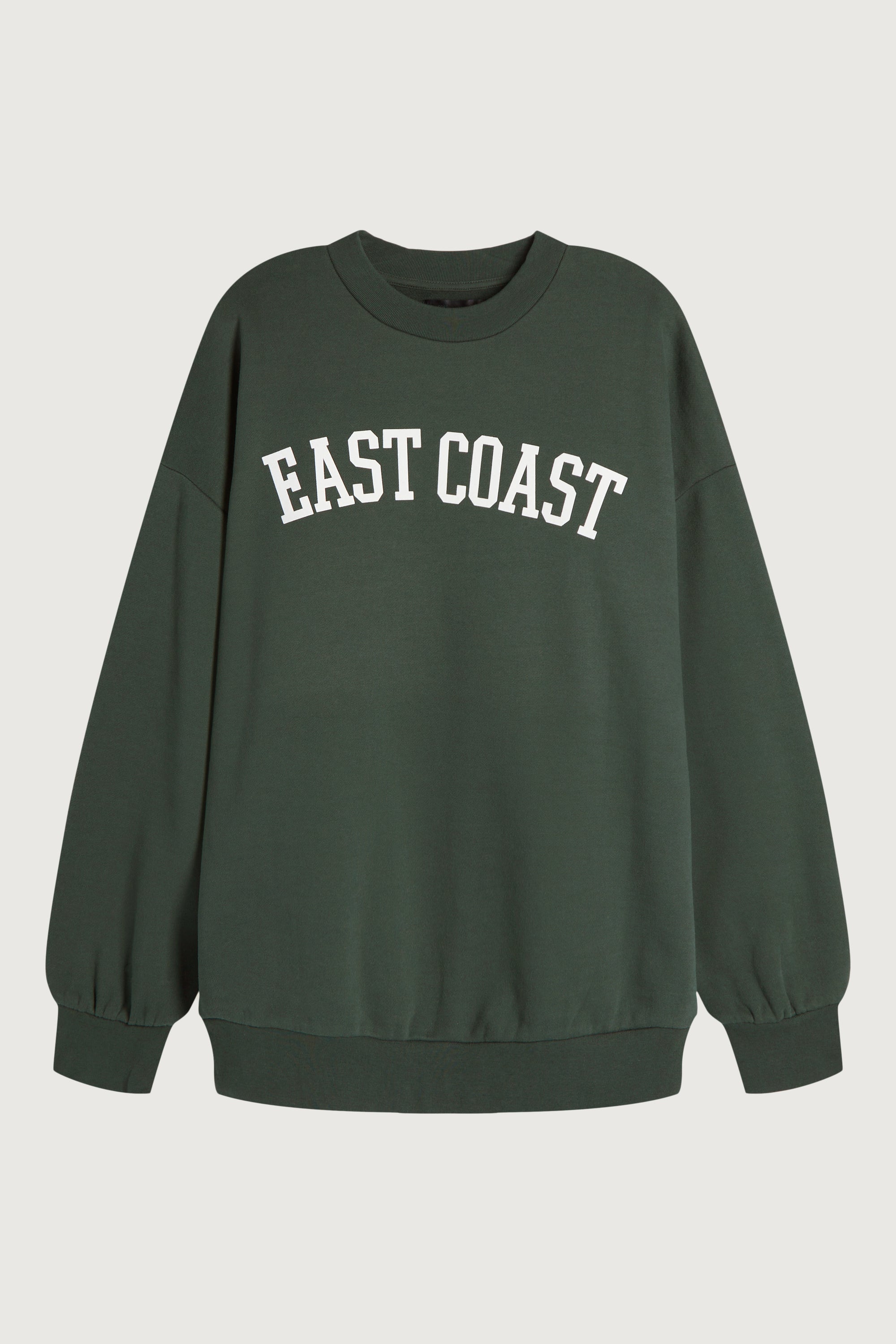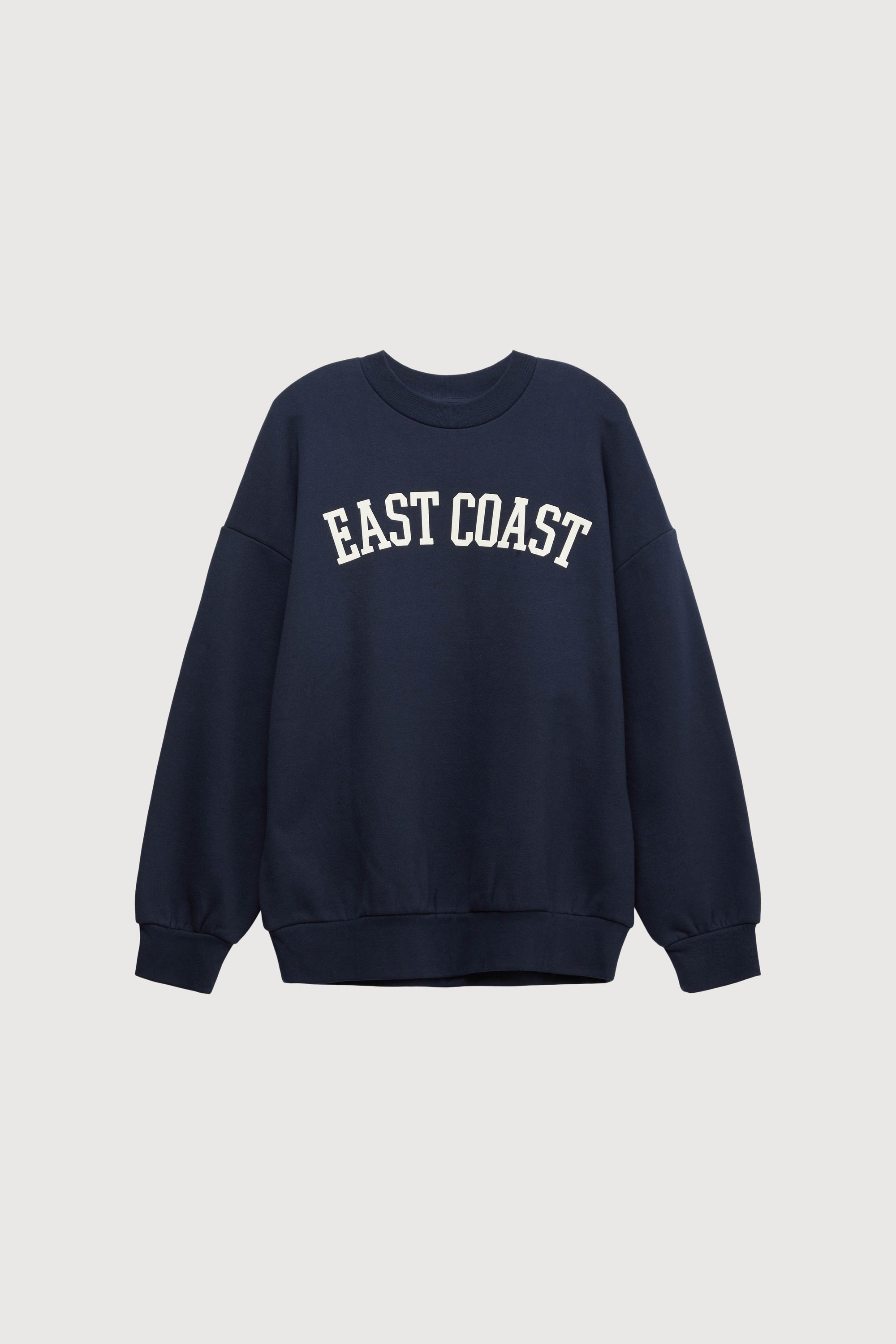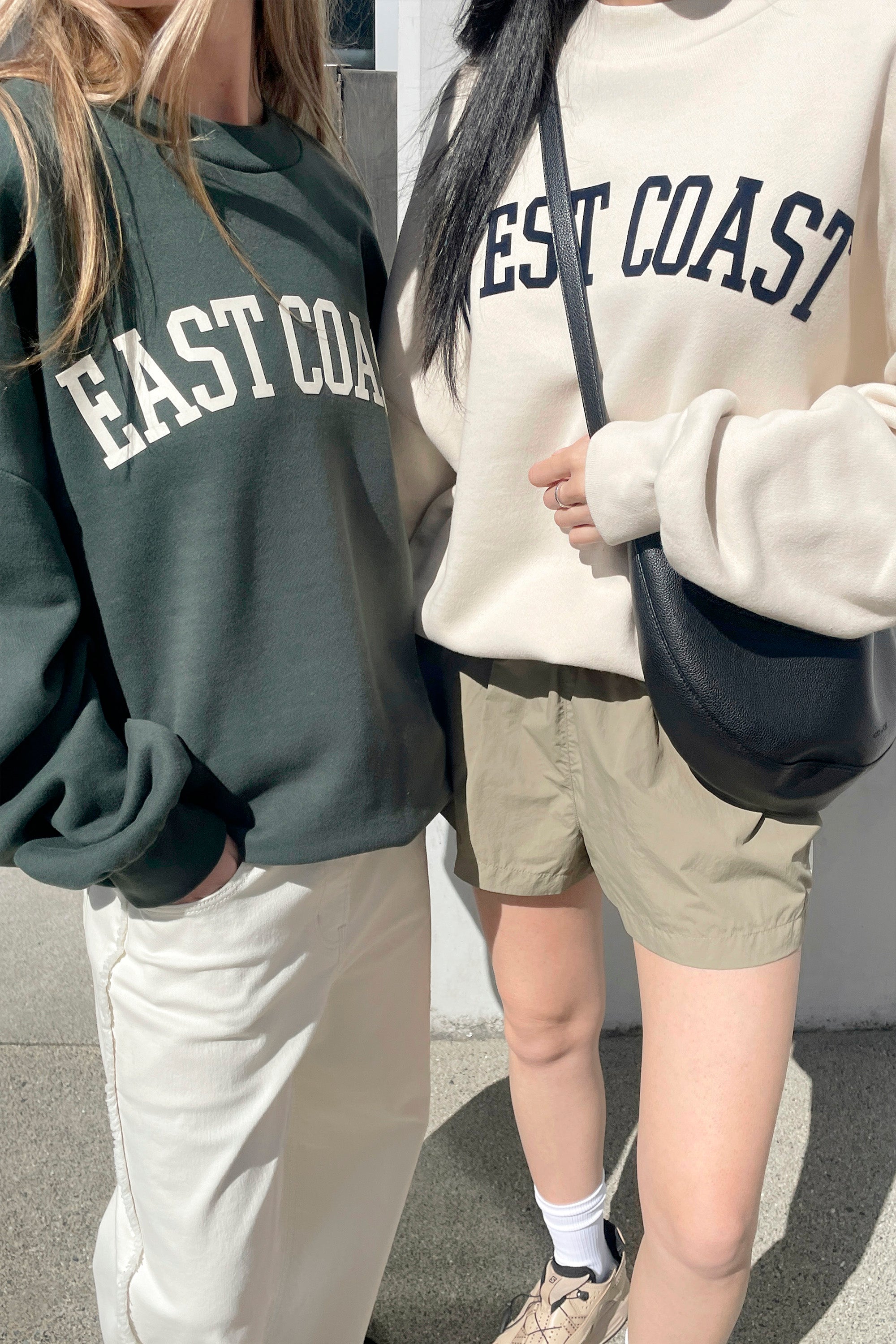 Oversized fit in men's sizing. Crew neckline. Ribbed trims. Dropped shoulders. Graphic lettering 'WEST COAST' and 'EAST COAST'. Mid-weight cotton blend. Designed for OAK + FORT MAN, if you're looking to purchase in women's sizing please size down. The intentional fit for this item is oversized.