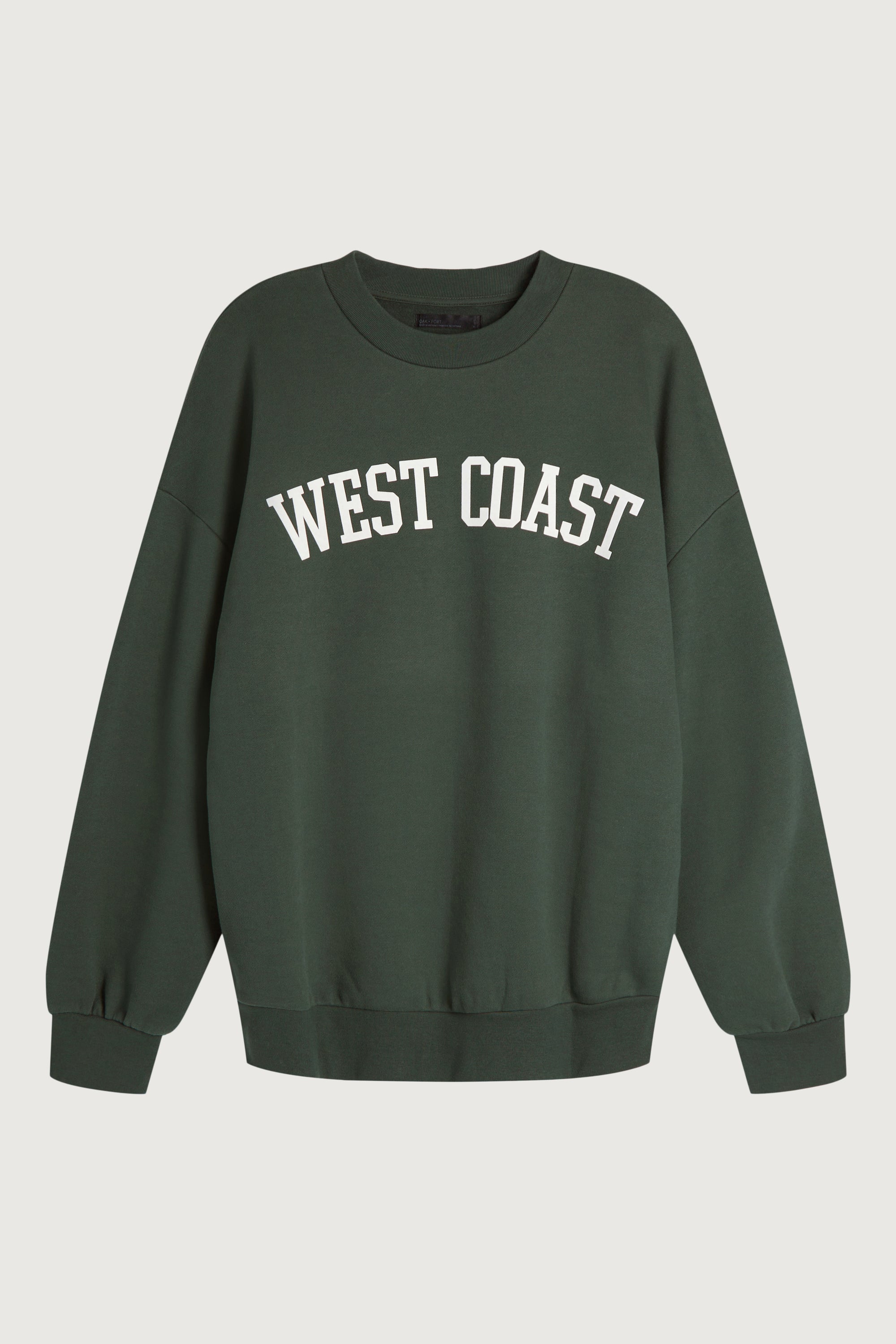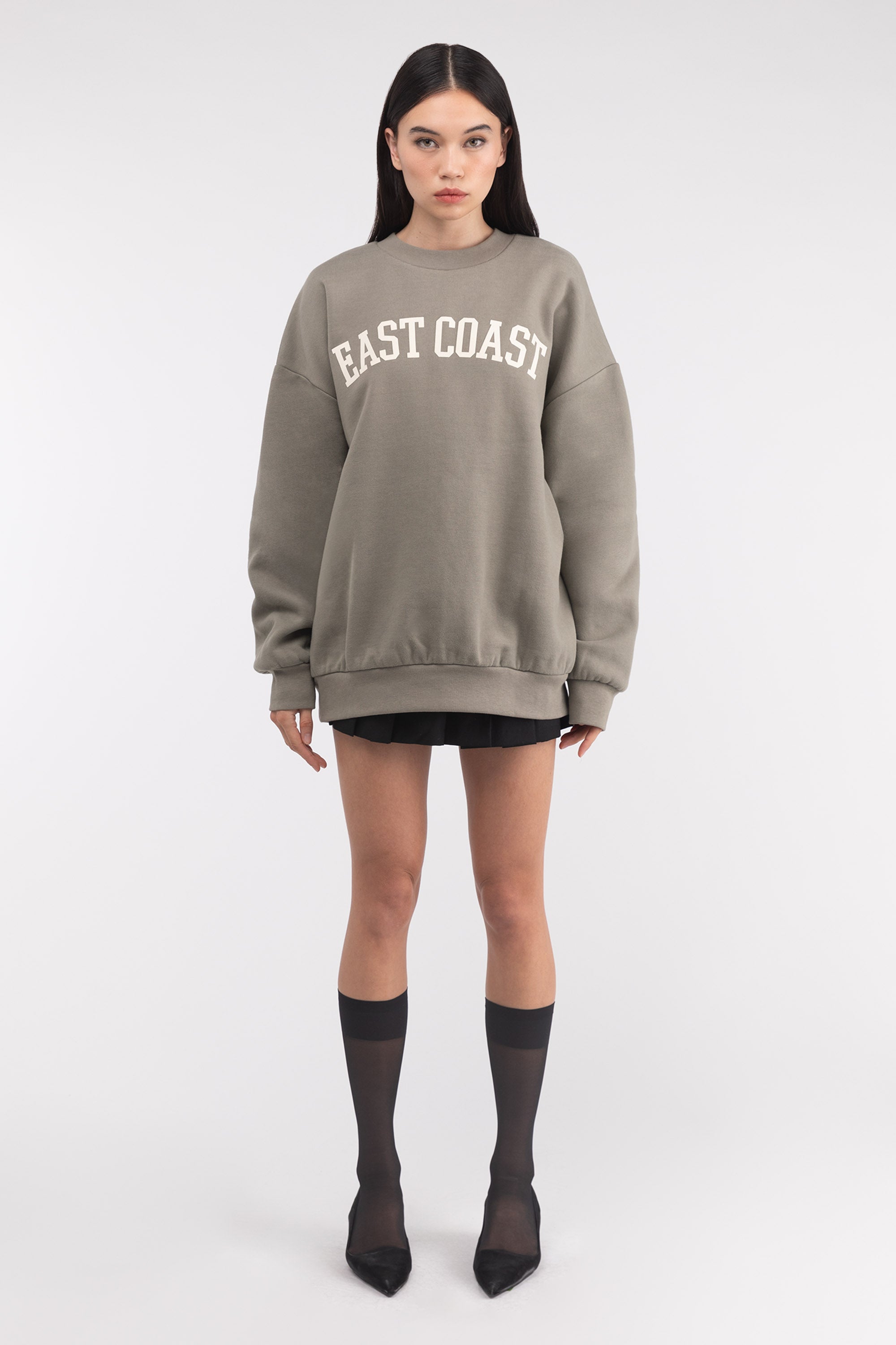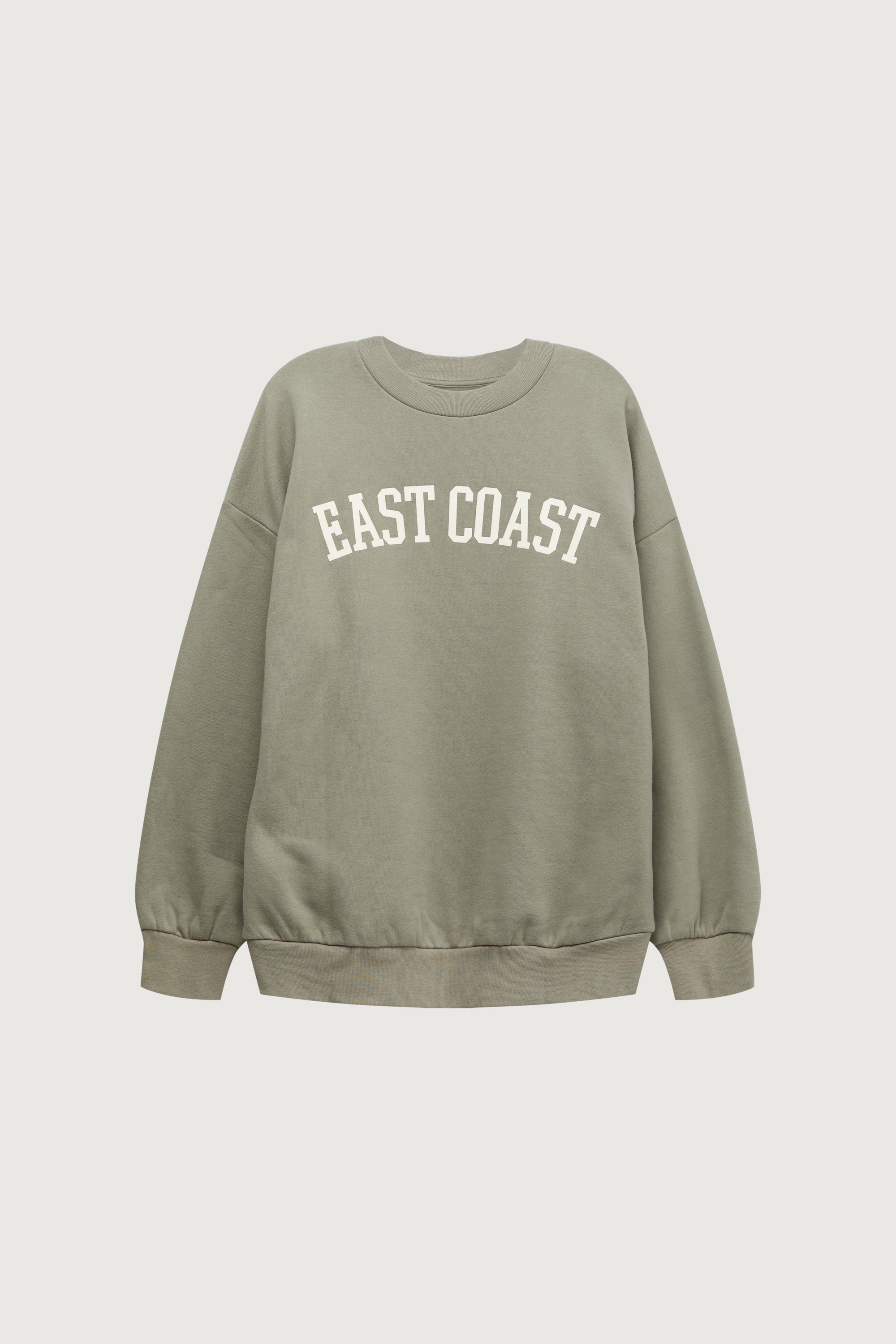 Oversized fit in men's sizing. Crew neckline. Ribbed trims. Dropped shoulders. Graphic lettering 'WEST COAST' and 'EAST COAST'. Mid-weight cotton blend. Designed for OAK + FORT MAN, if you're looking to purchase in women's sizing please size down. The intentional fit for this item is oversized.