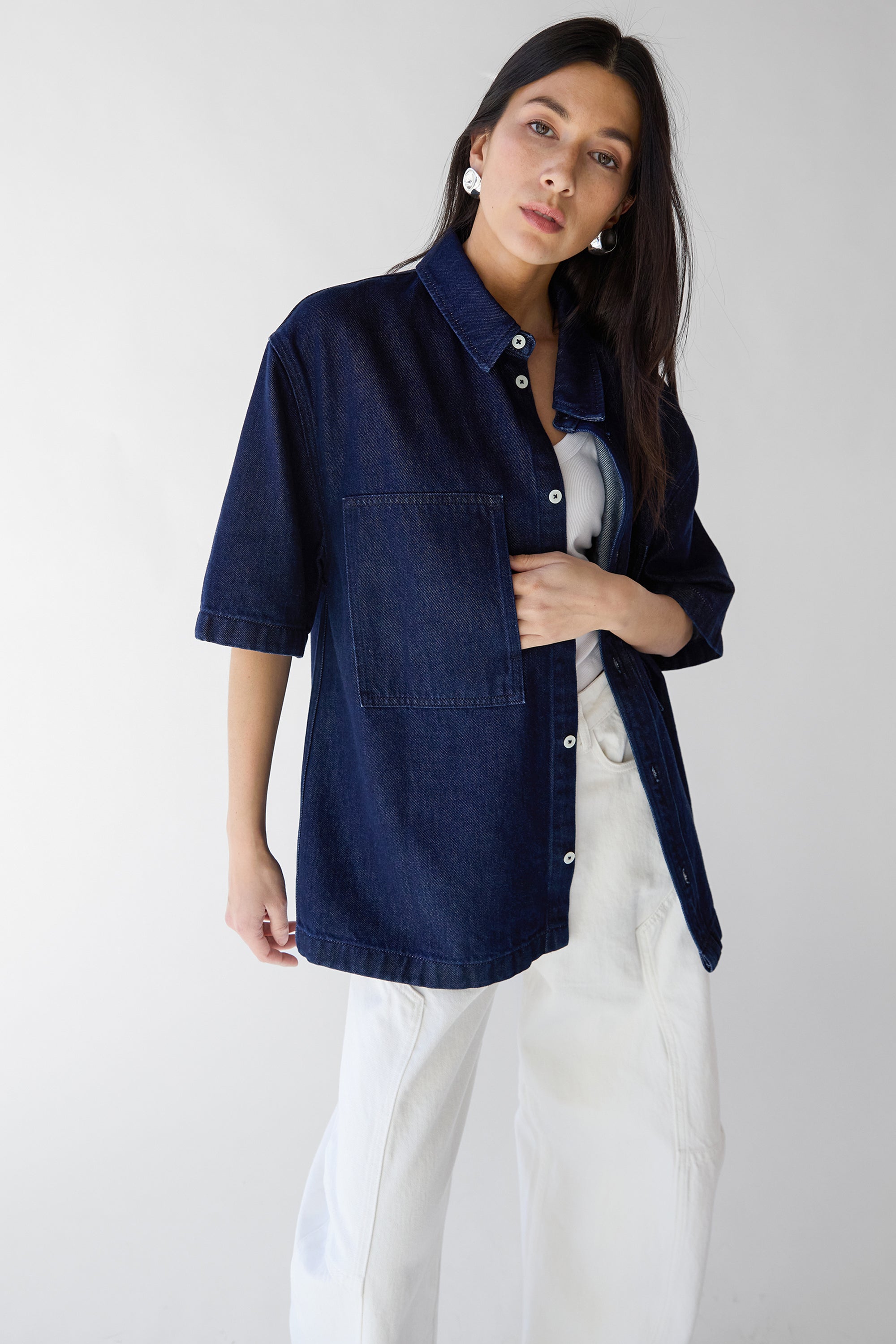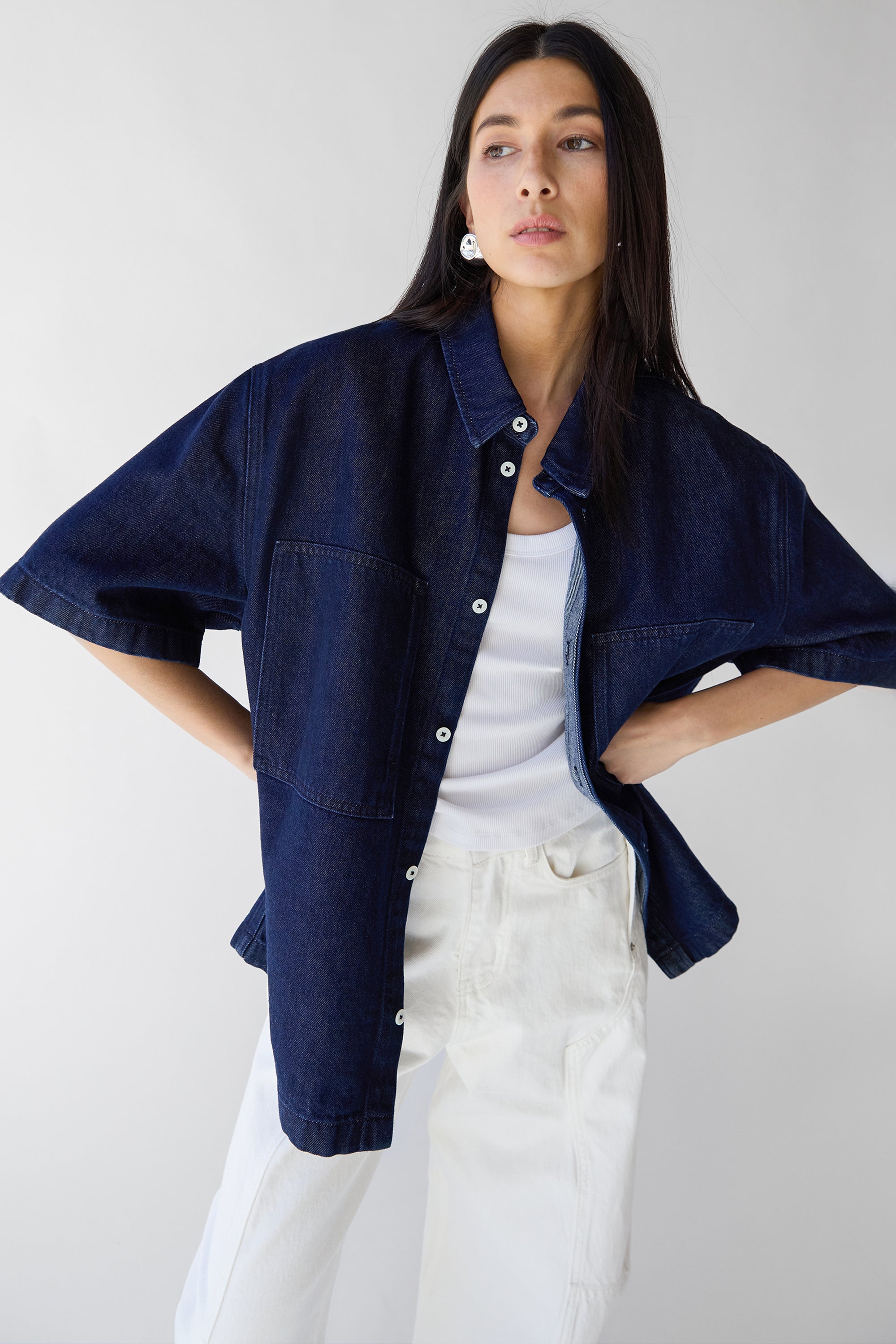 OVERSIZED SHORT SLEEVE DENIM SHIRT