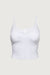 Ribbed cotton. Sweetheart neckline with lace trims. Removable pads. Adjustable shoulder straps. Pintucks at bust. Smocked back panel.