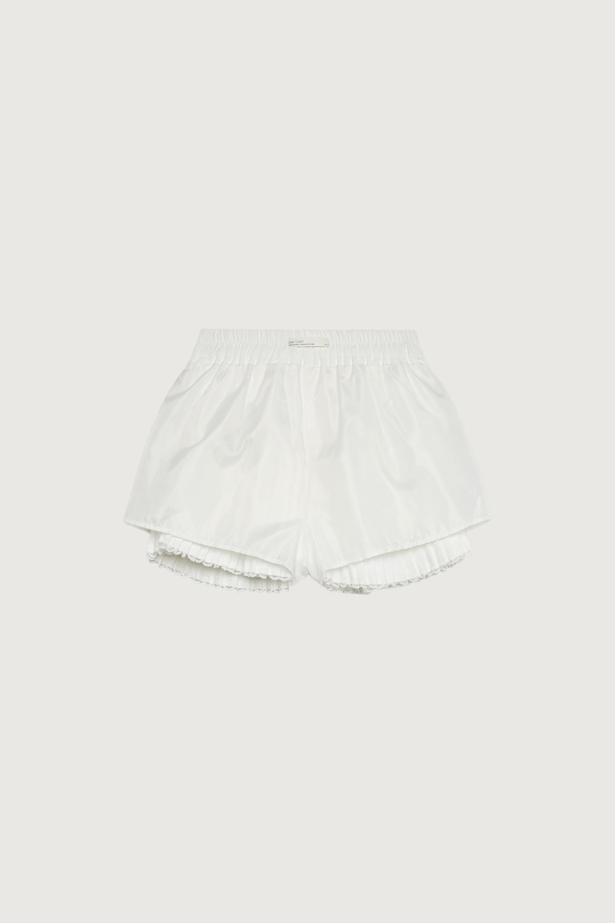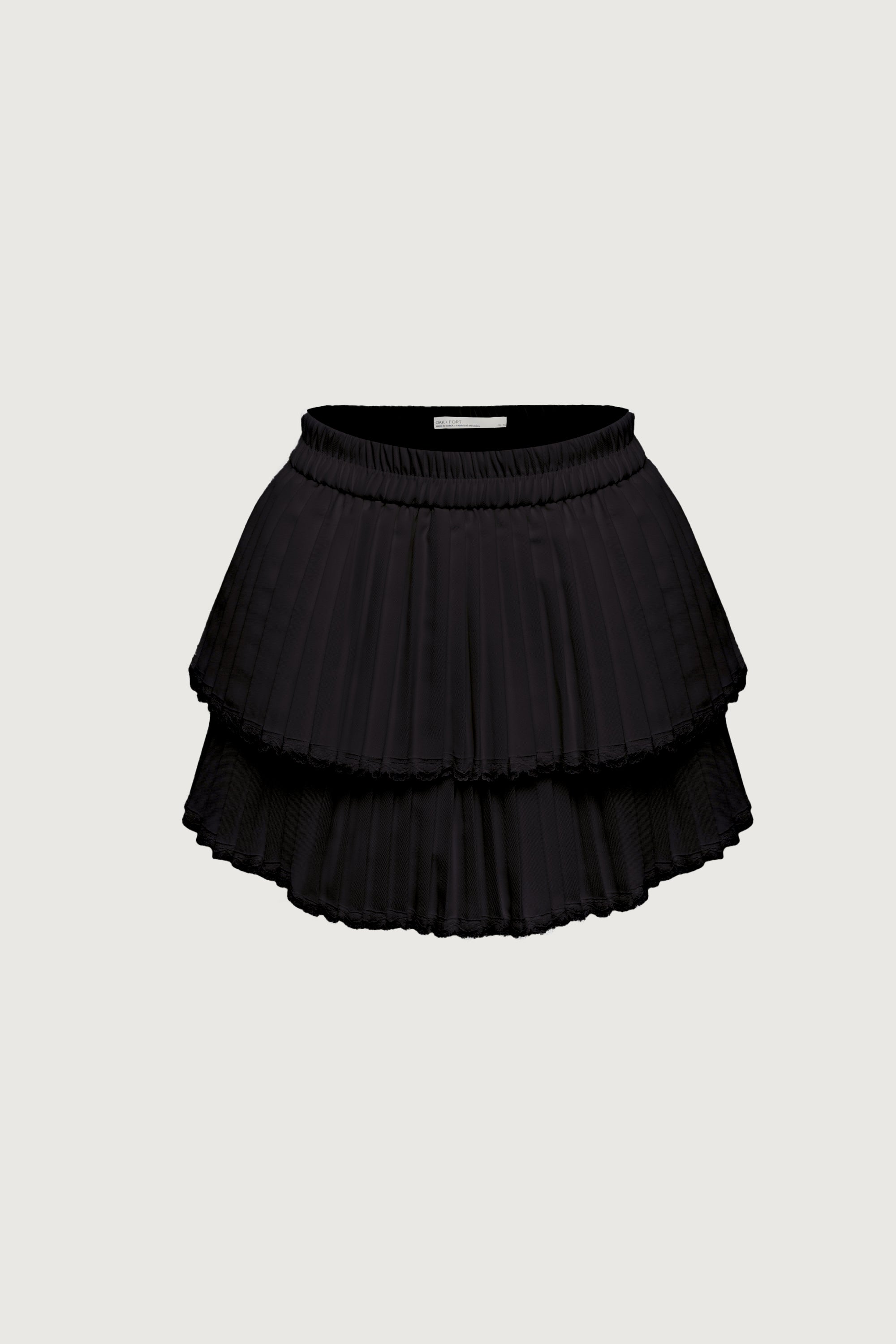 Tiered. Pleats. Elasticated waistband. Shorts.