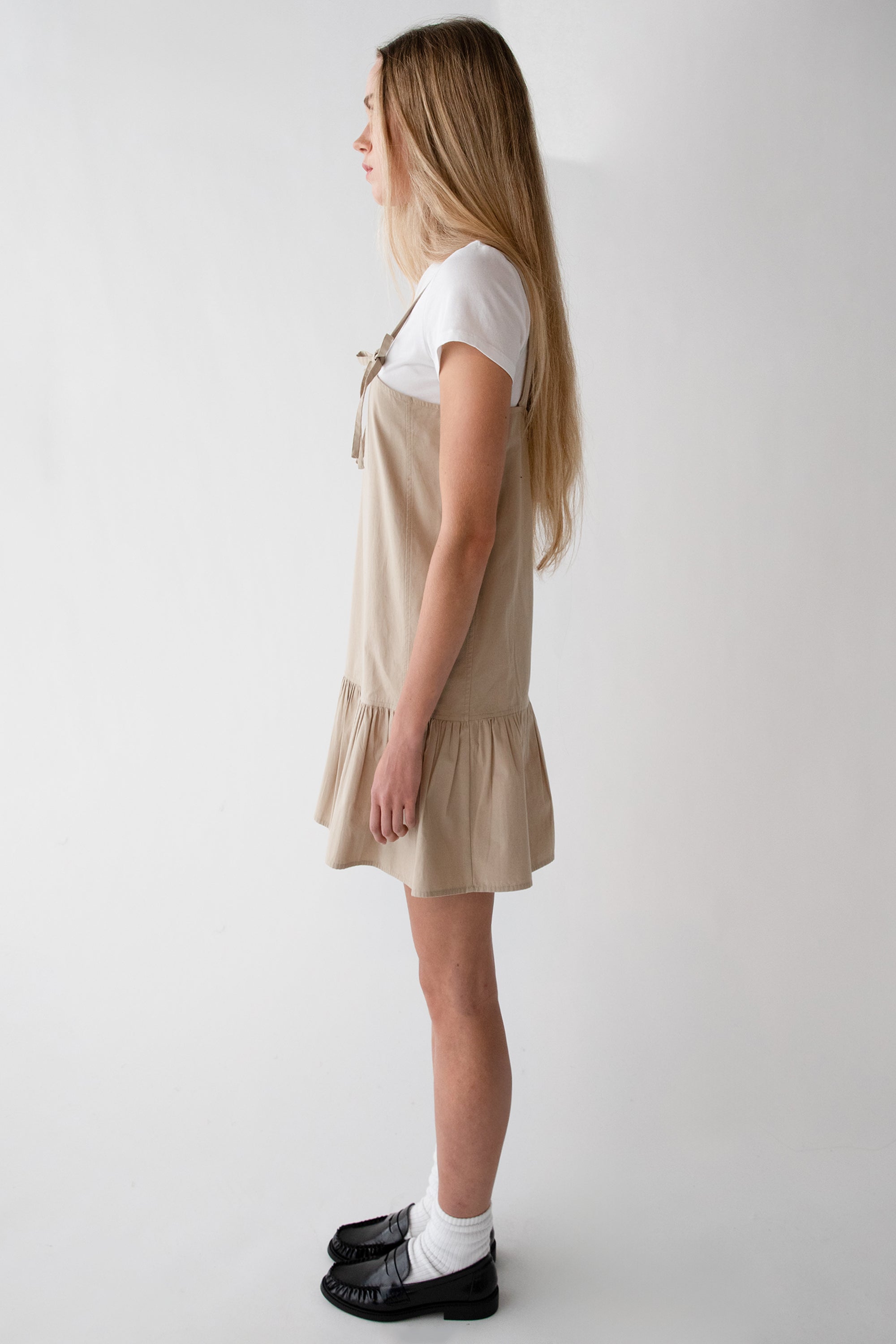 This sleeveless cotton poplin mini dress is perfect for warmer weather. It's relaxed fit is complete with bow details, the adjustable shoulder strap ties and a gathered tiered hem. Wear yours over a basic t-shirt and flats.