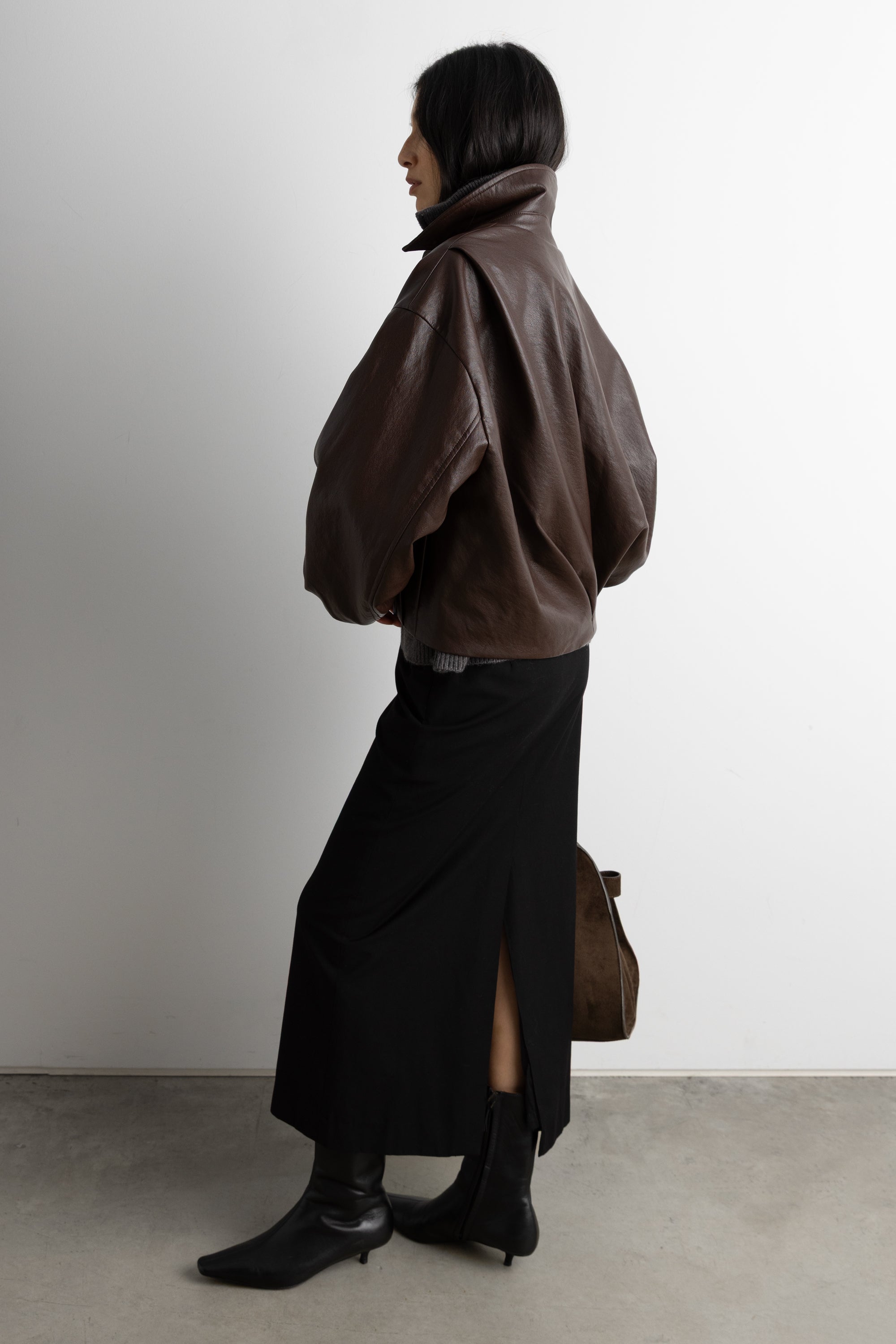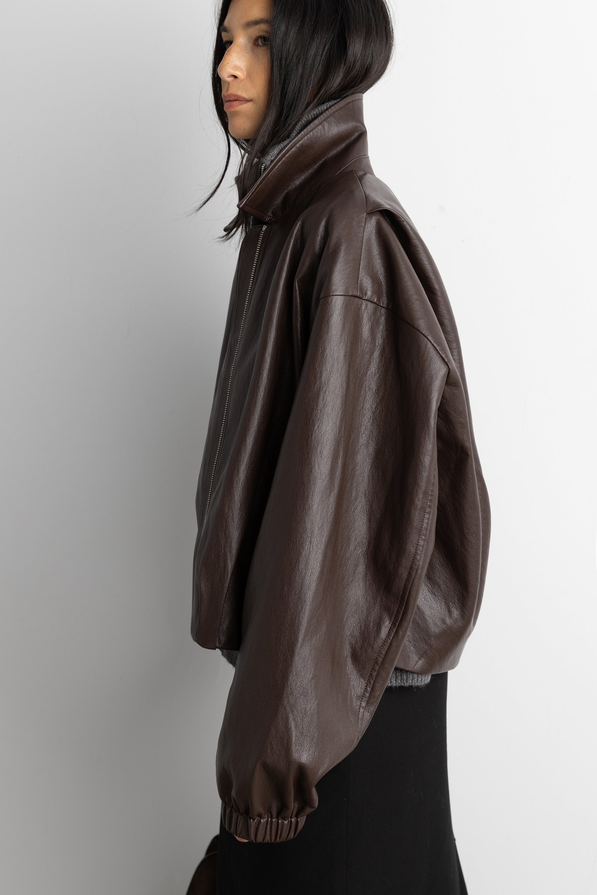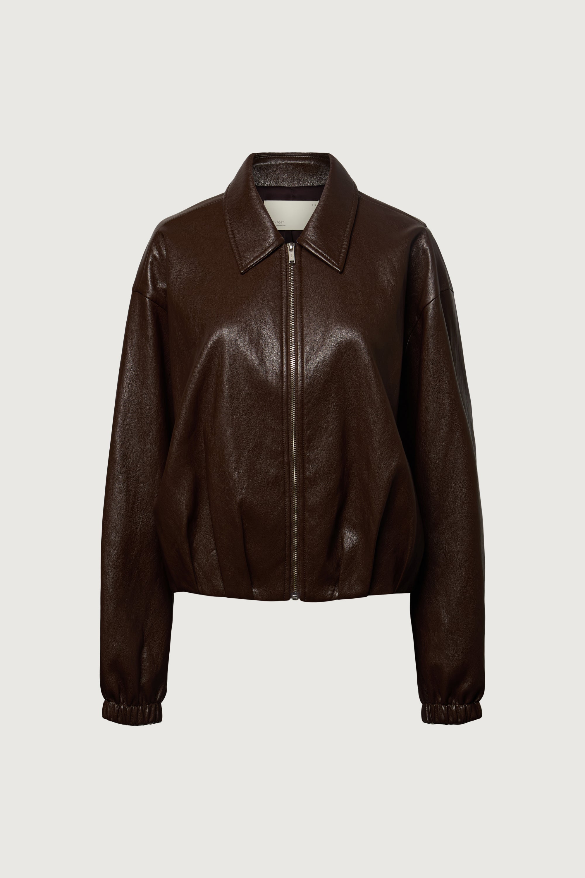 PUFFED VEGAN LEATHER BOMBER JACKET WITH PLEATS
