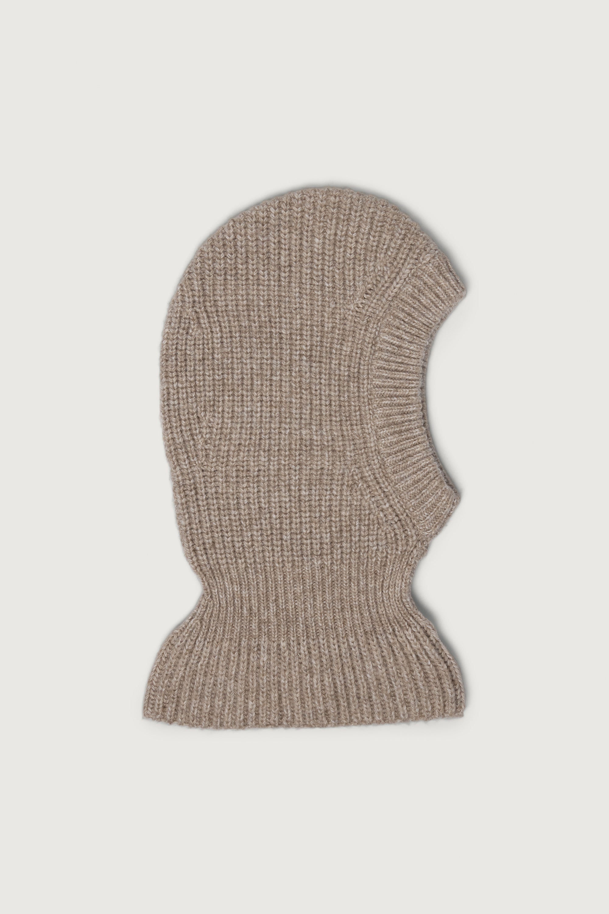 A ribbed knit balaclava designed for full coverage and comfort. Crafted in a soft, stretchy texture, it offers warmth while maintaining a sleek, modern silhouette. The minimalist design makes it a versatile layering piece for cold-weather dressing.