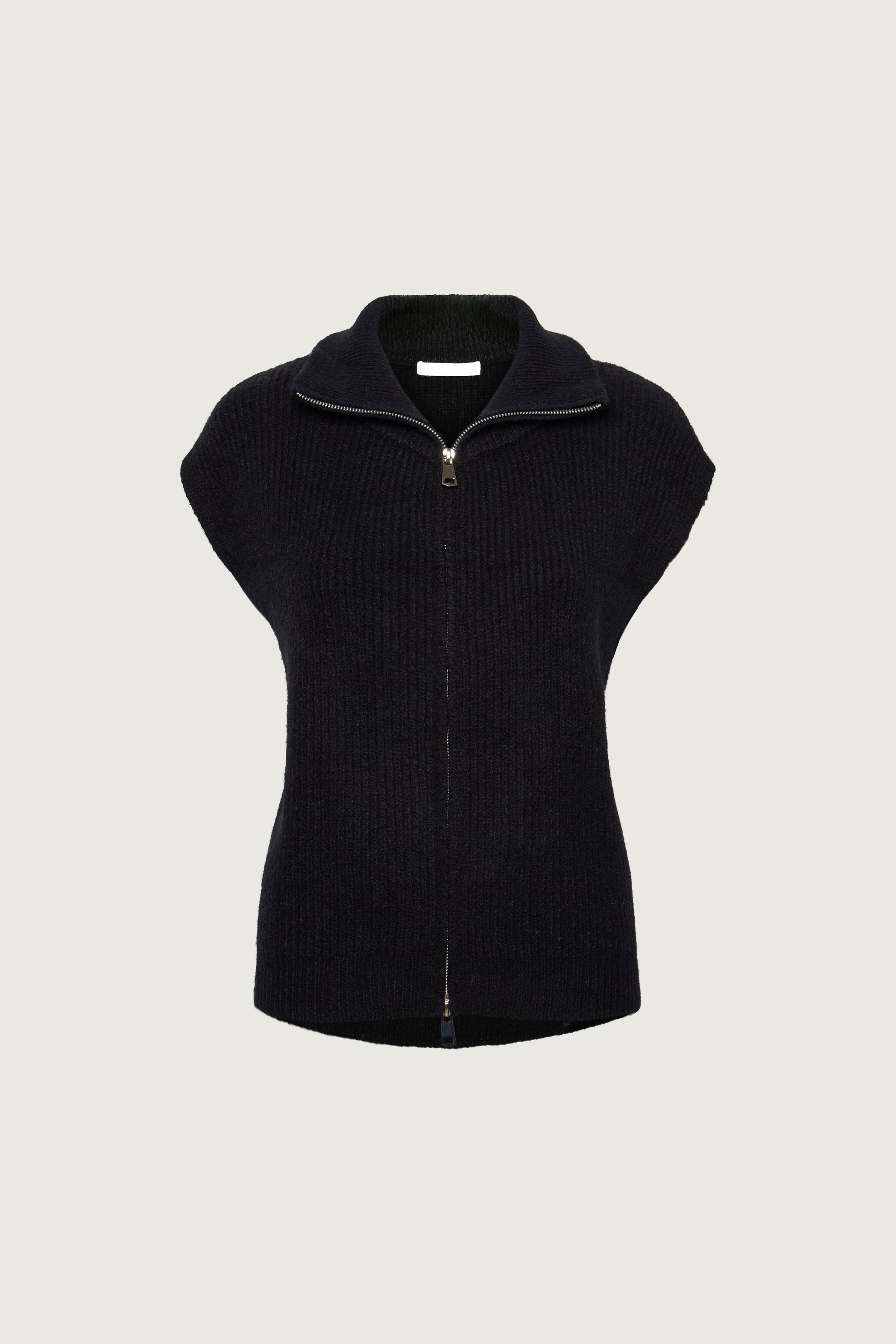 Ribbed Knit. Mock neck. Zip Front.