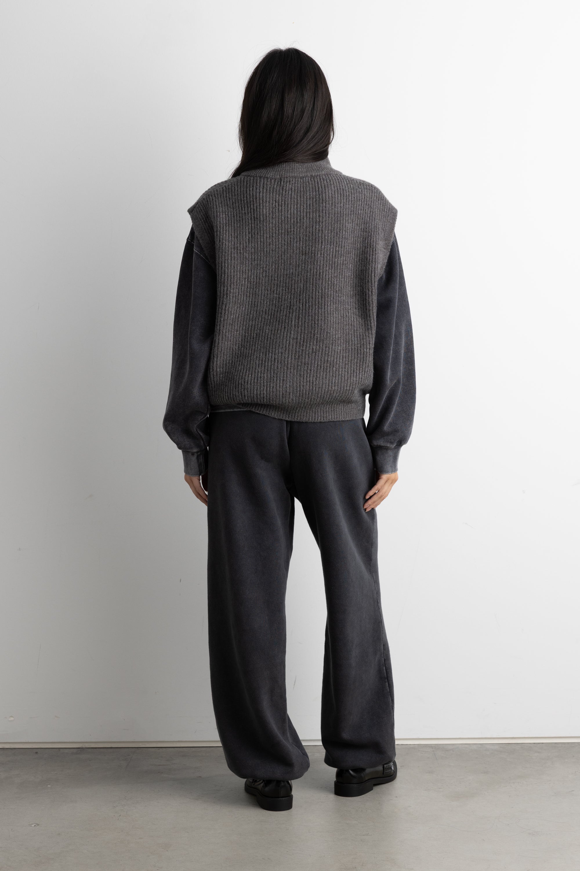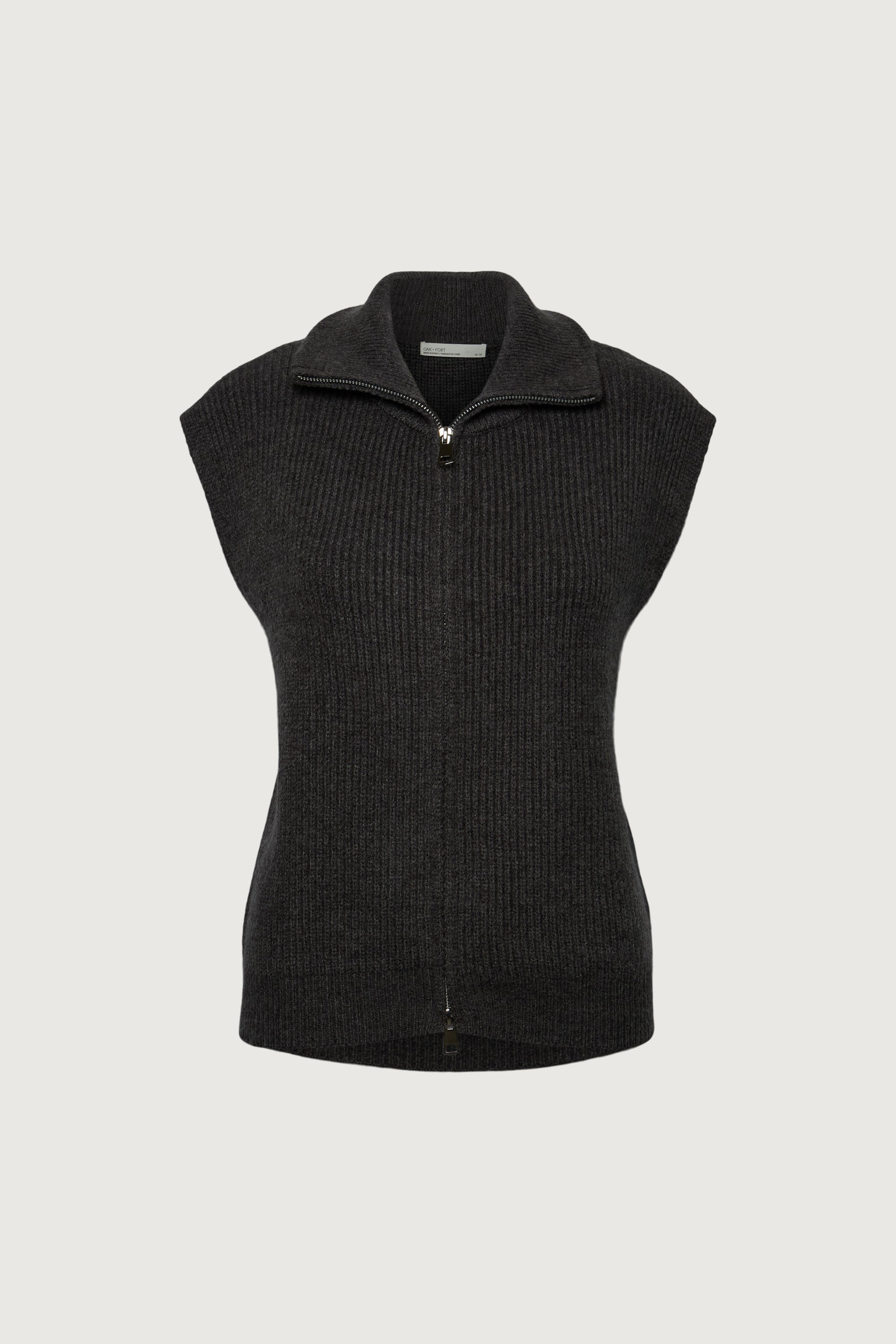 This zip-up knit vest is made from a chunky ribbed knit in a relaxed fit. Designed with a mock neck and finished with a two-way zipper, it offers both function and versatility. A perfect layering essential, style it over shirts or turtlenecks, or wear it under outerwear for added warmth and texture.