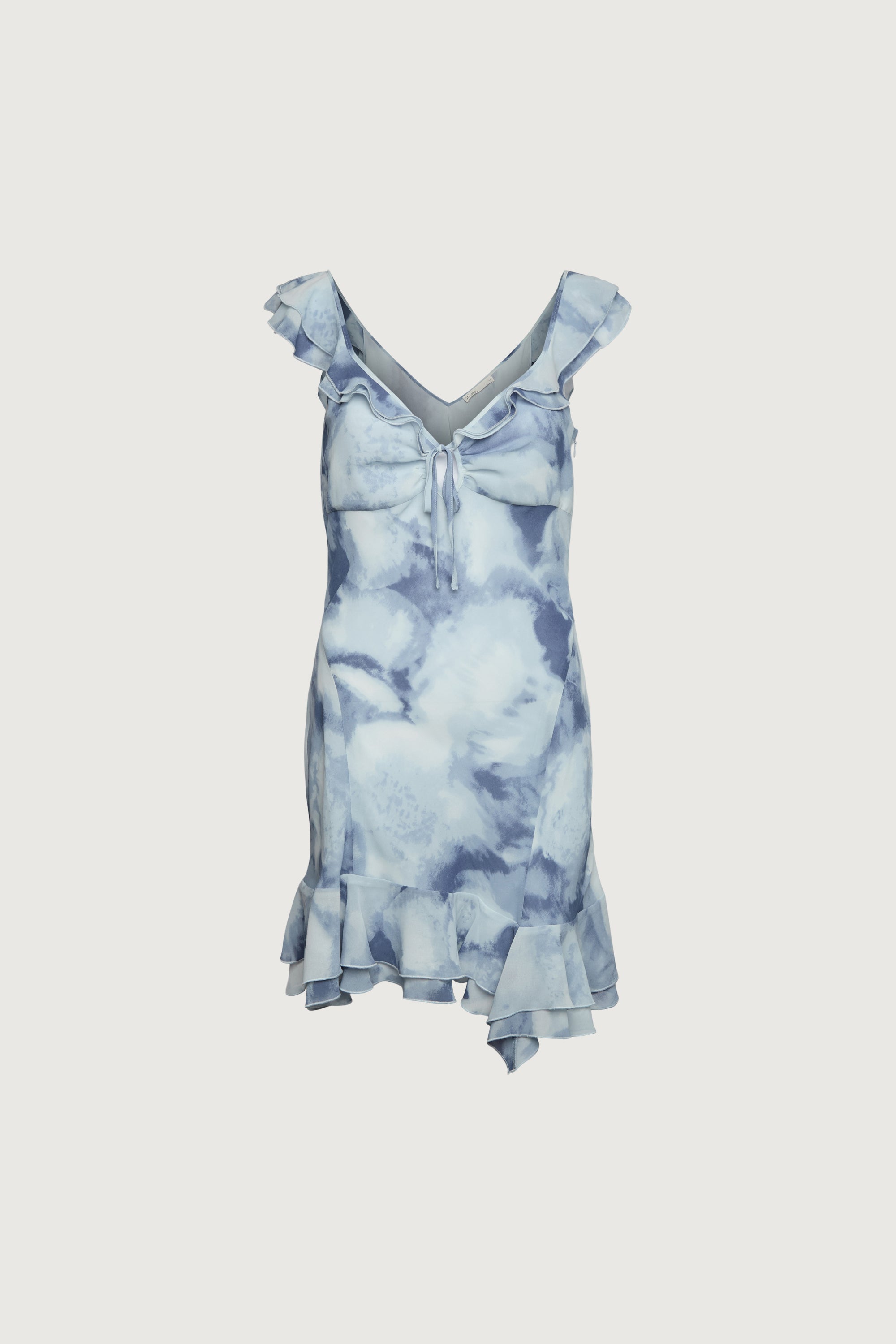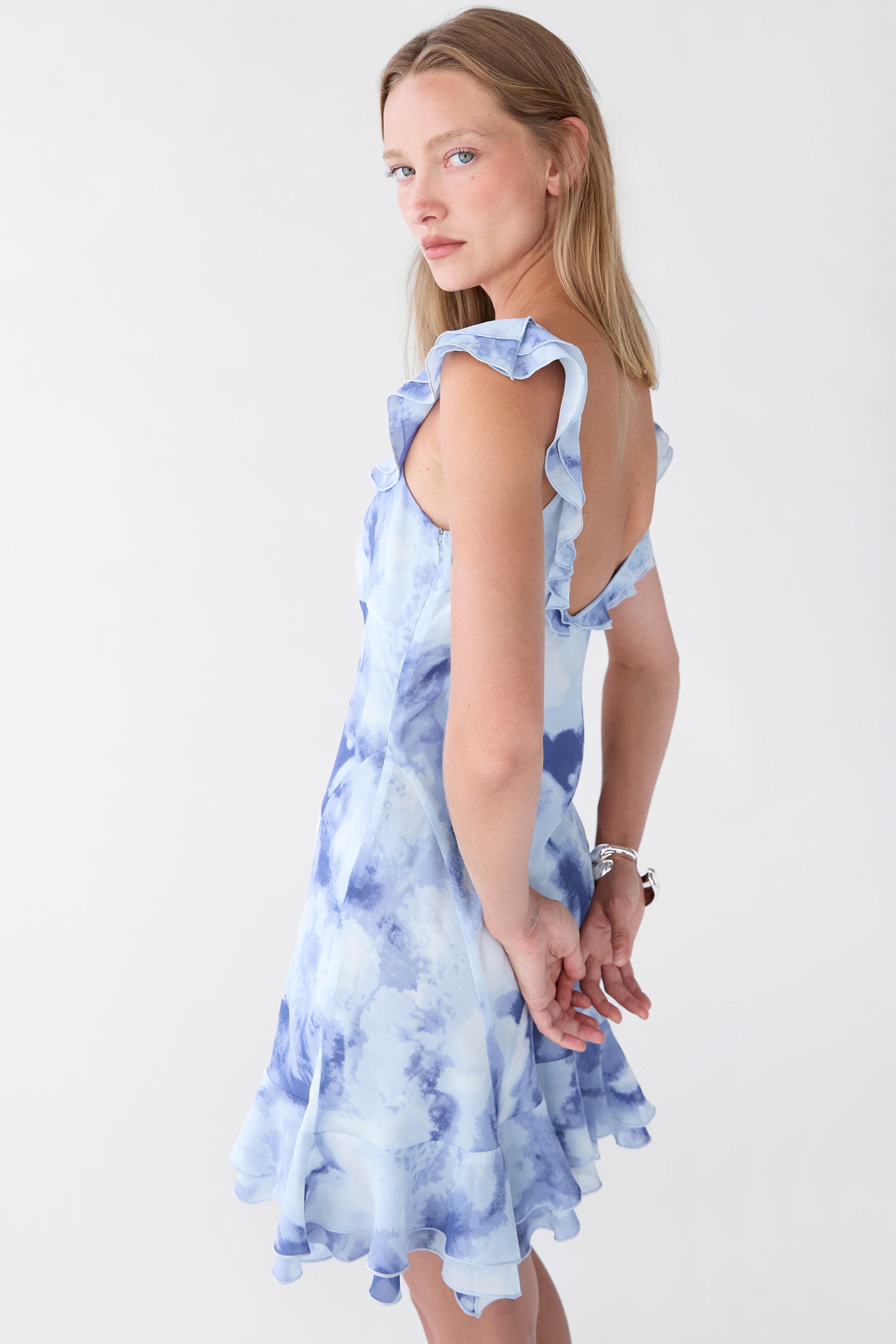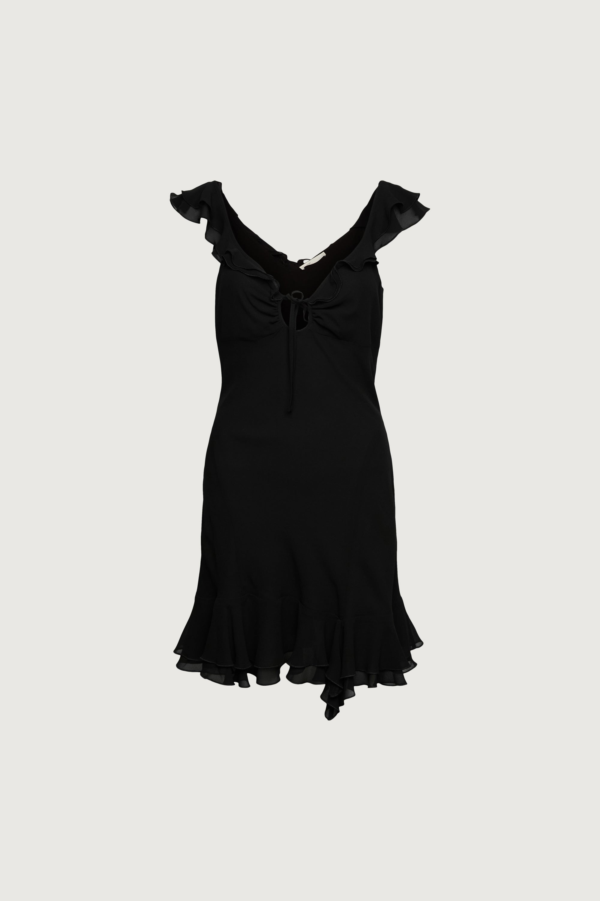 Inspired for hot summer days, this chiffon mini dress is made in a slim fit and is detailed with an asymmetric ruffled hem. It has a V-neckline keyhole front ruffled at the trims and has princess seams to flatter your figure. Wear yours during the day with mesh flats or strappy heels for a night out.