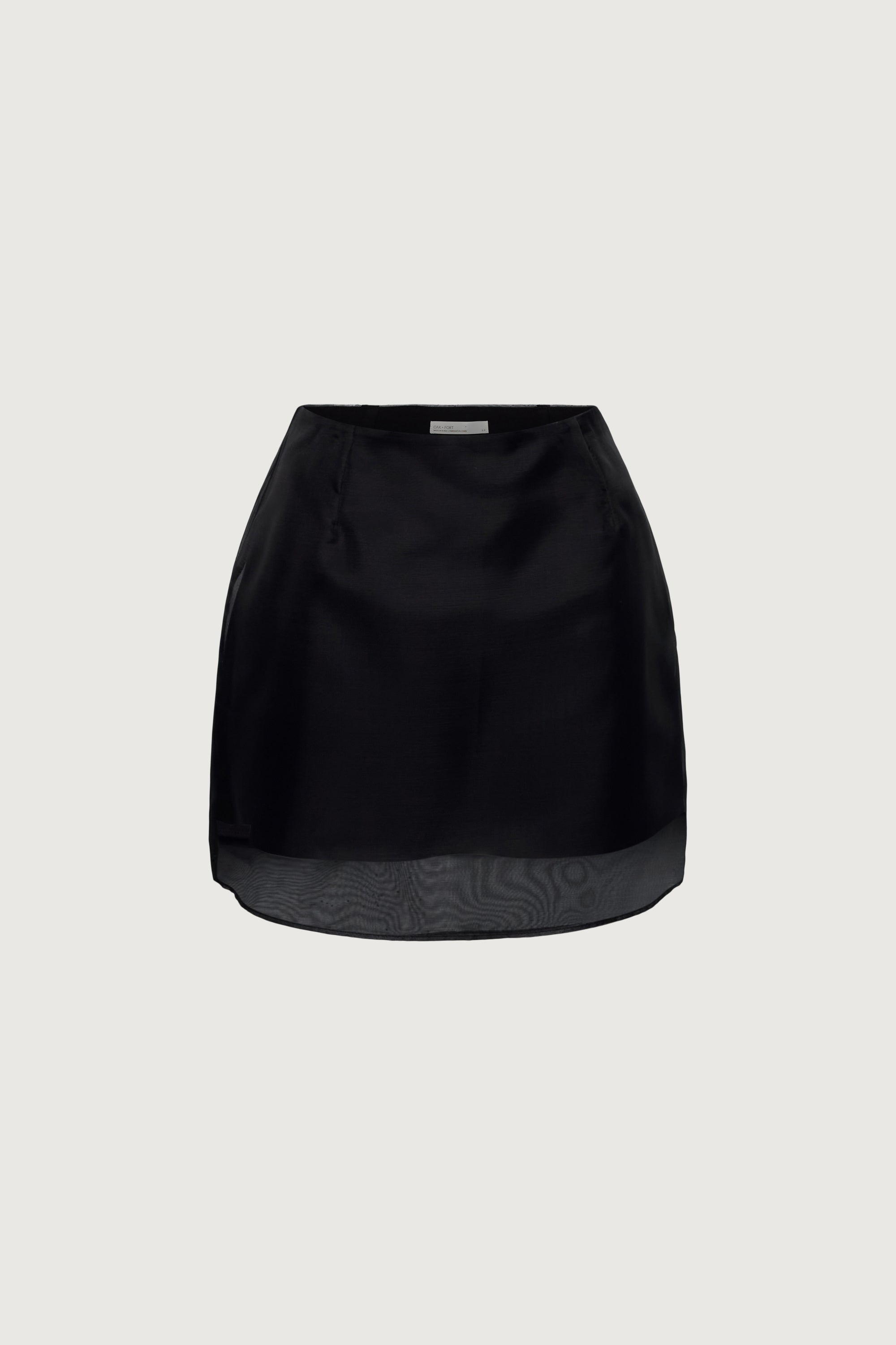 This mini length skirt features layered fabric, with the sheer material on top. Wear yours with a blouse or off-shoulder top.