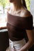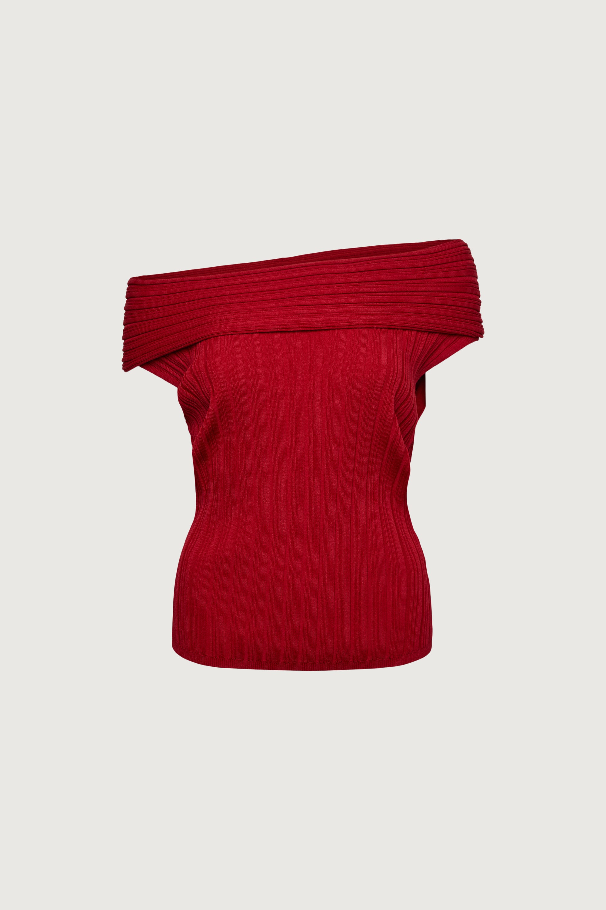 The perfect summer knit to add to your rotation. This short sleeve off the shoulder sweater has a varied ribbed-knit and is made for a relaxed fit. Wear yours from day to night with straight leg trousers and sandals.
