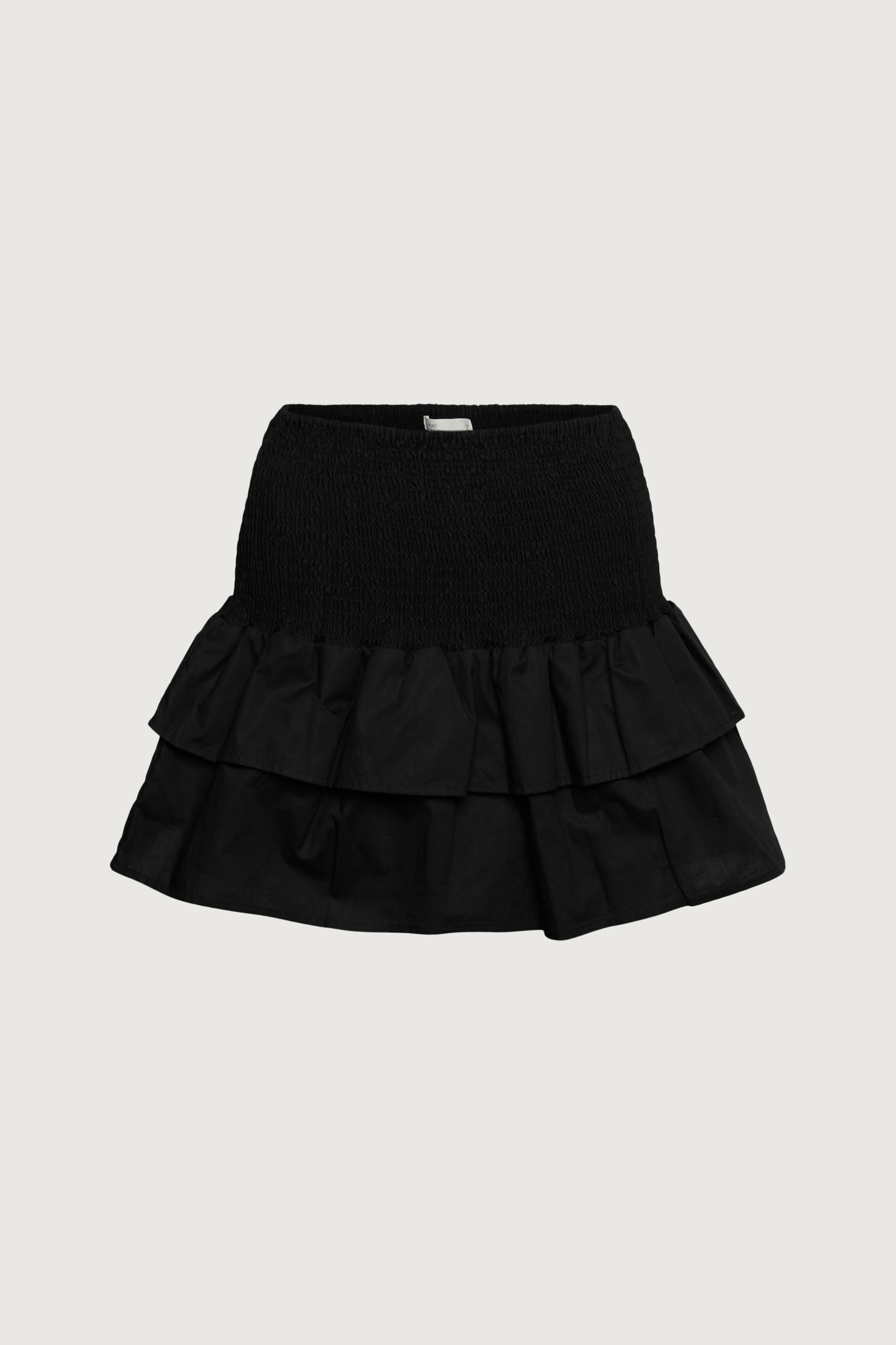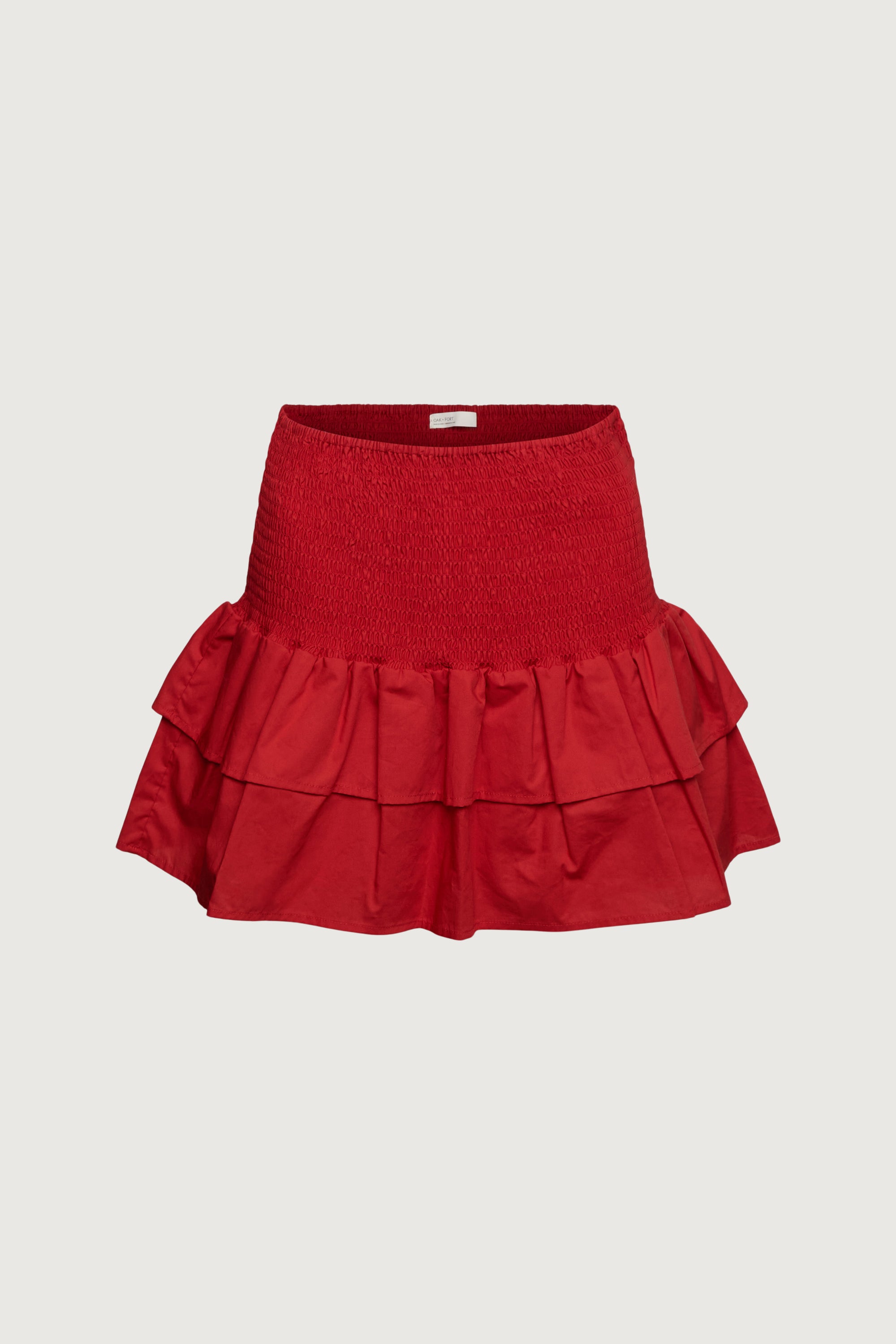 Lightweight cotton poplin. Smocked high waist. Two ruffled tiers.