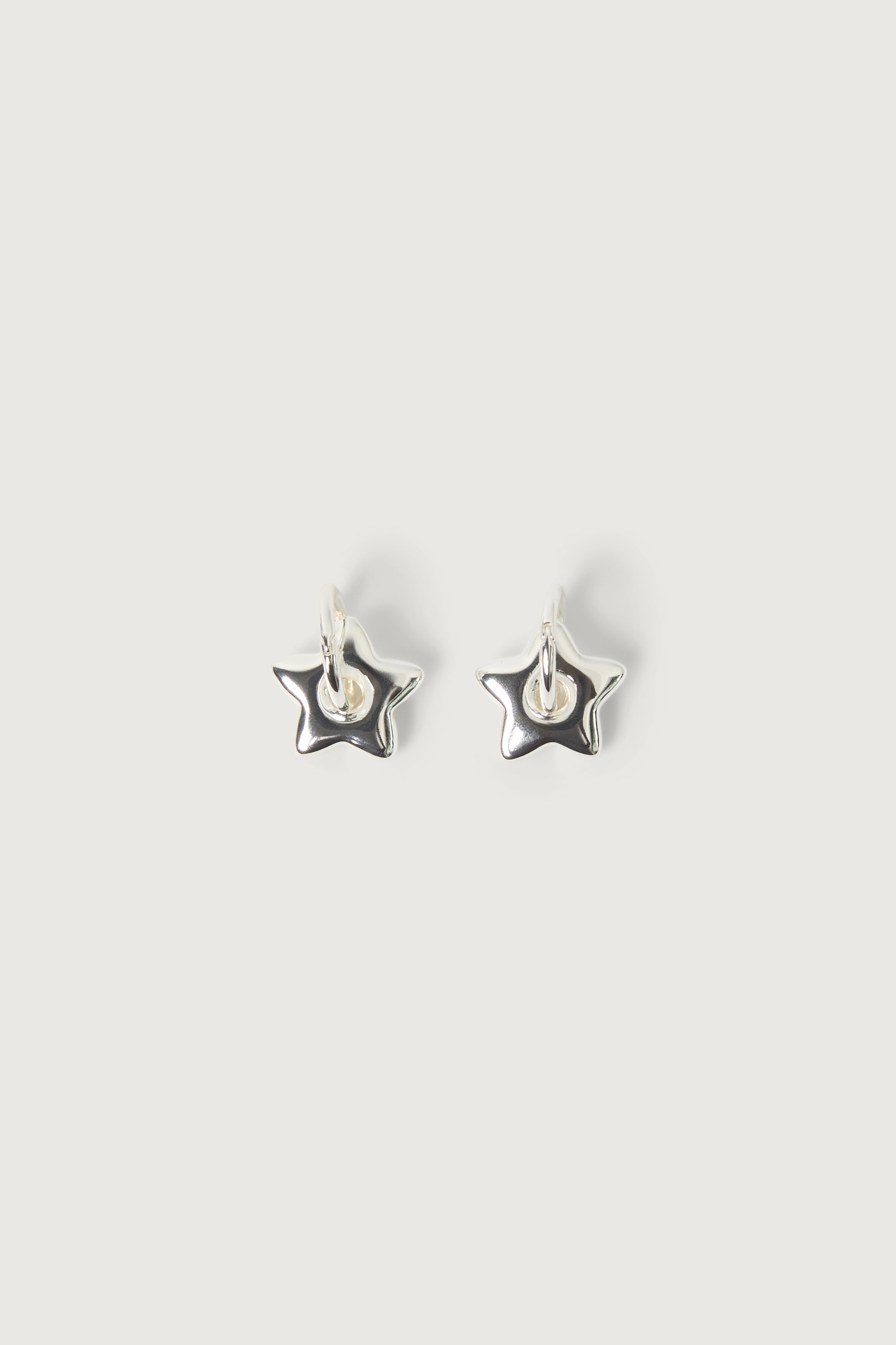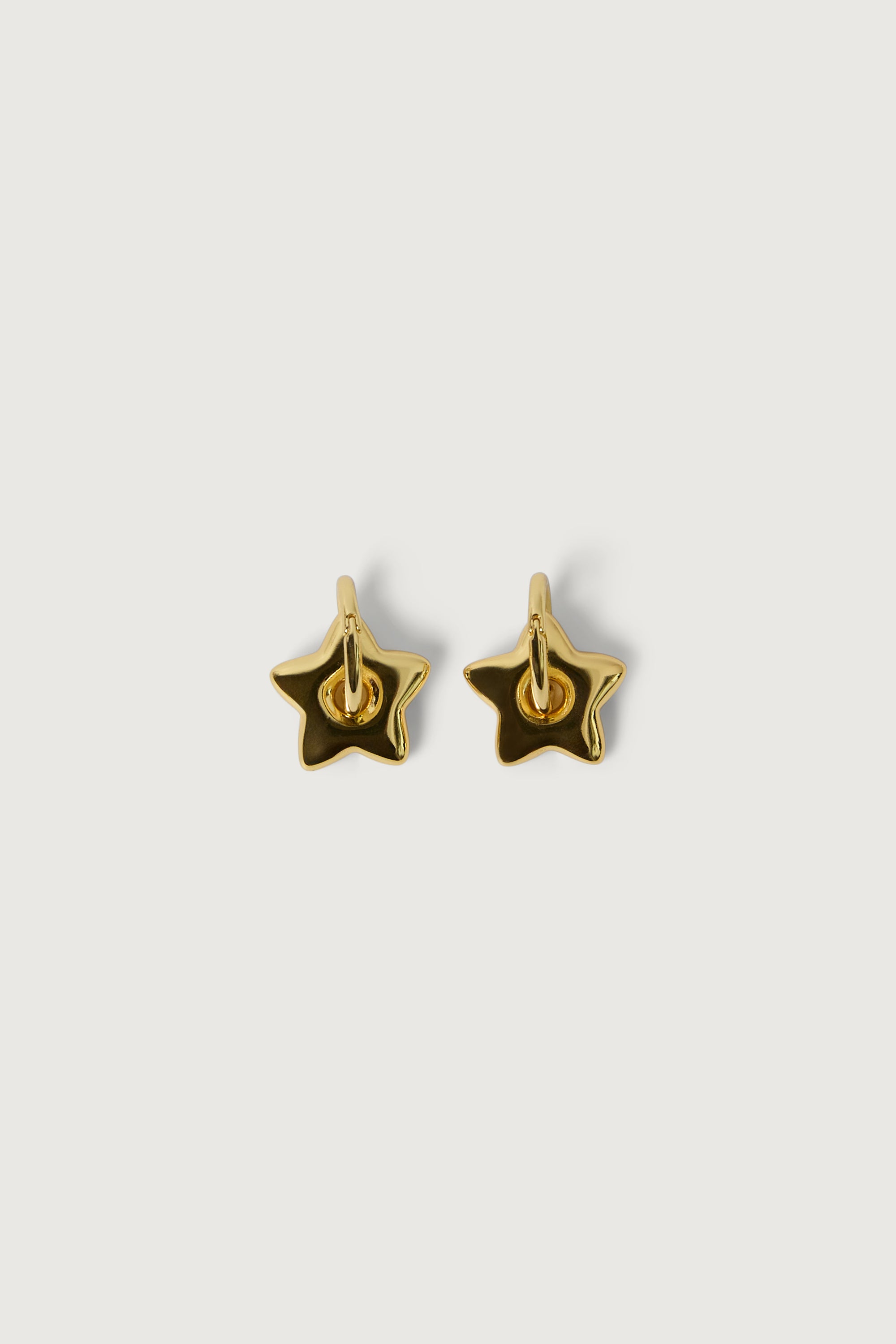 Star pendant height: 19mm. Total earring height: 24mm. Seamless hinge clasp closure. 14K gold or silver plating.