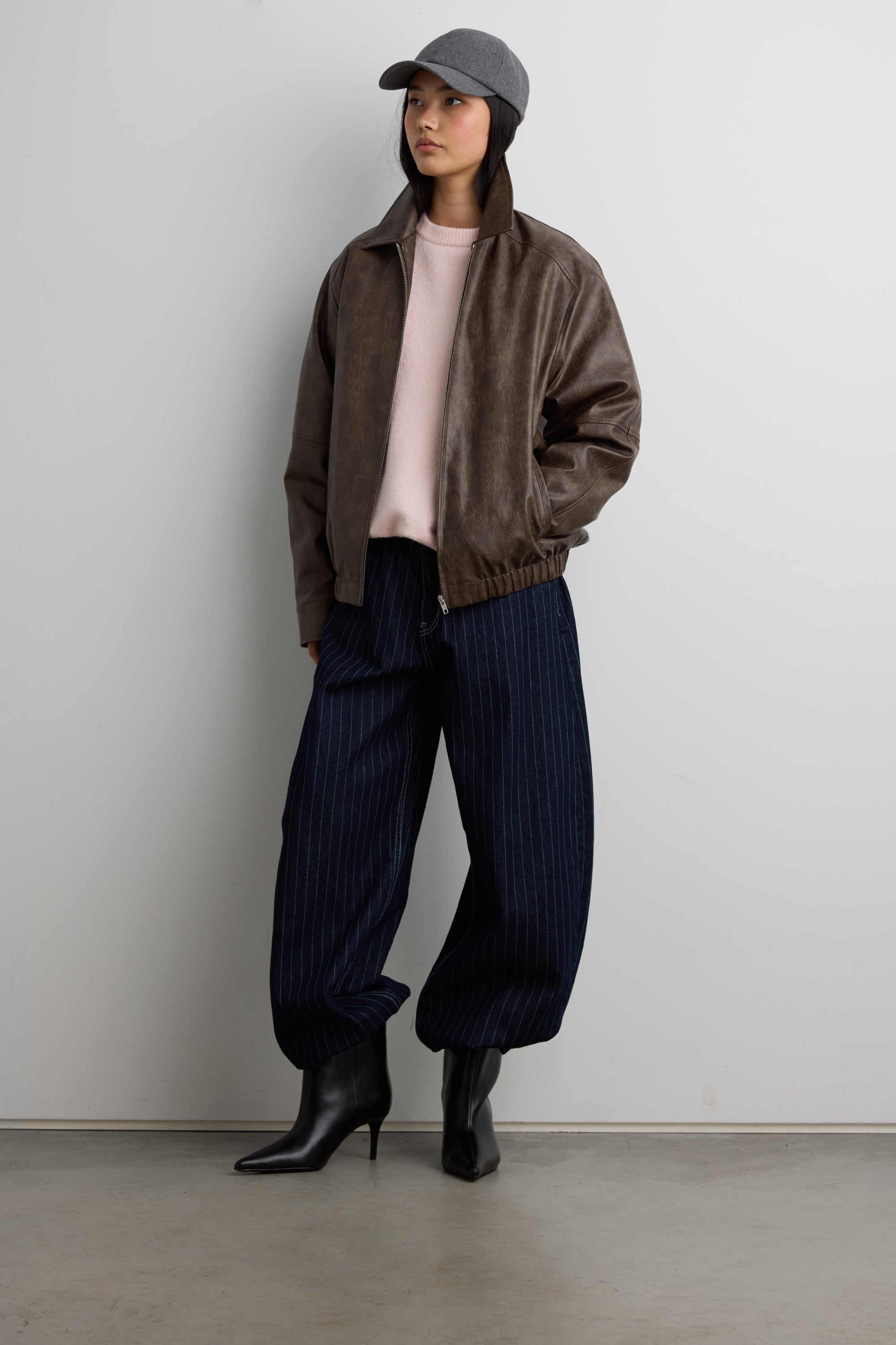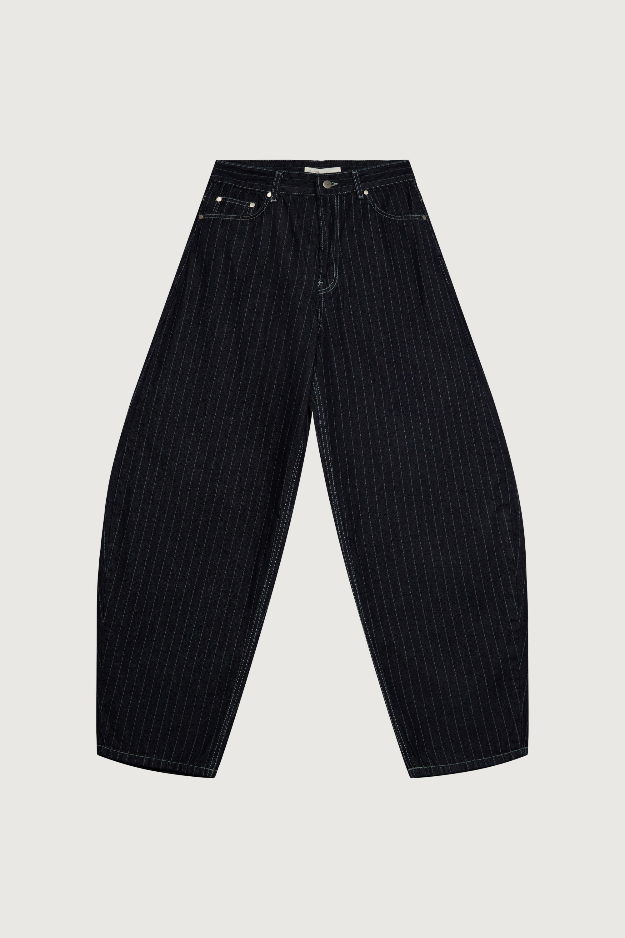 Pinstripe. Indigo wash. Contrast stitching. 5-pocket design. Button fastener. Zip fly.