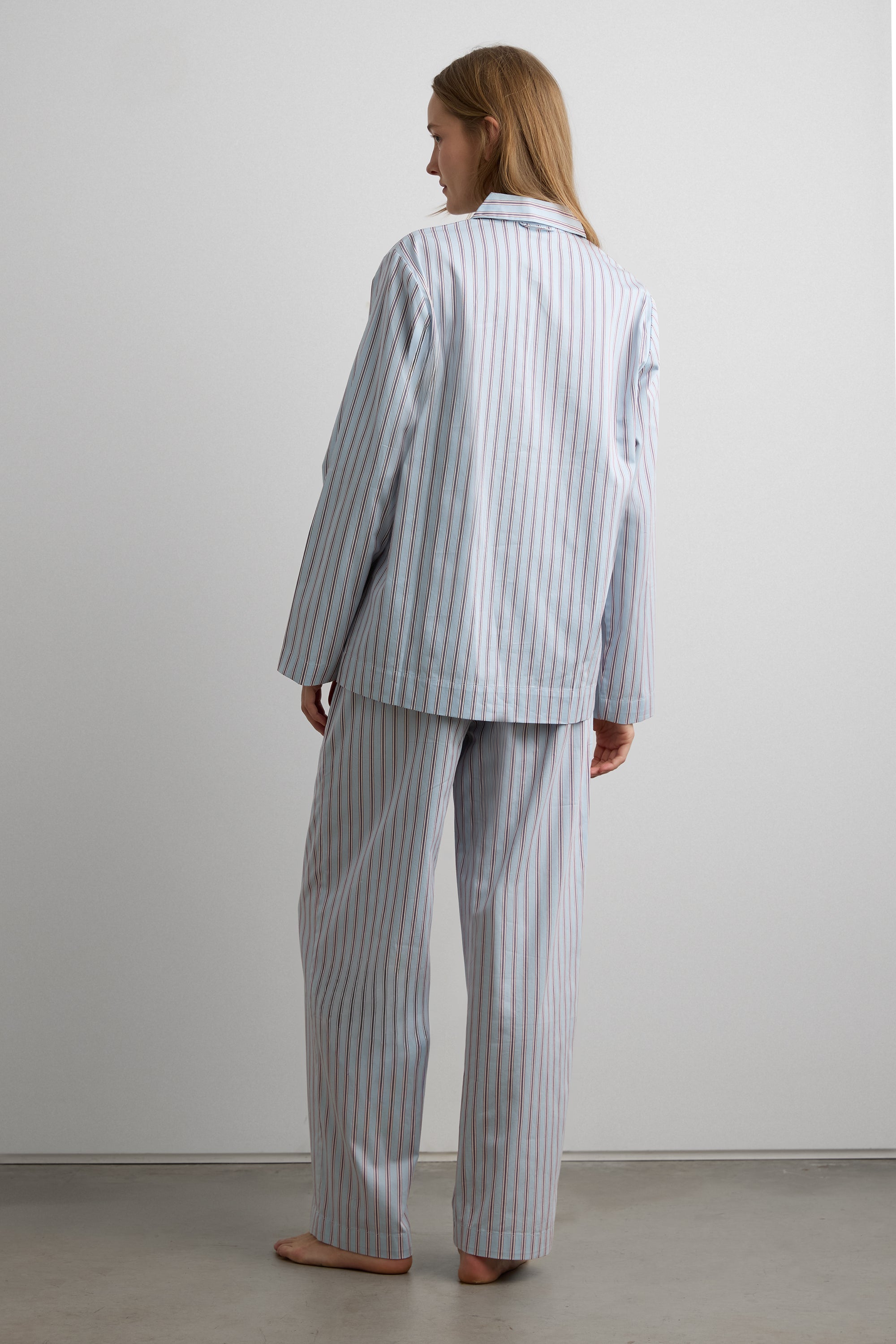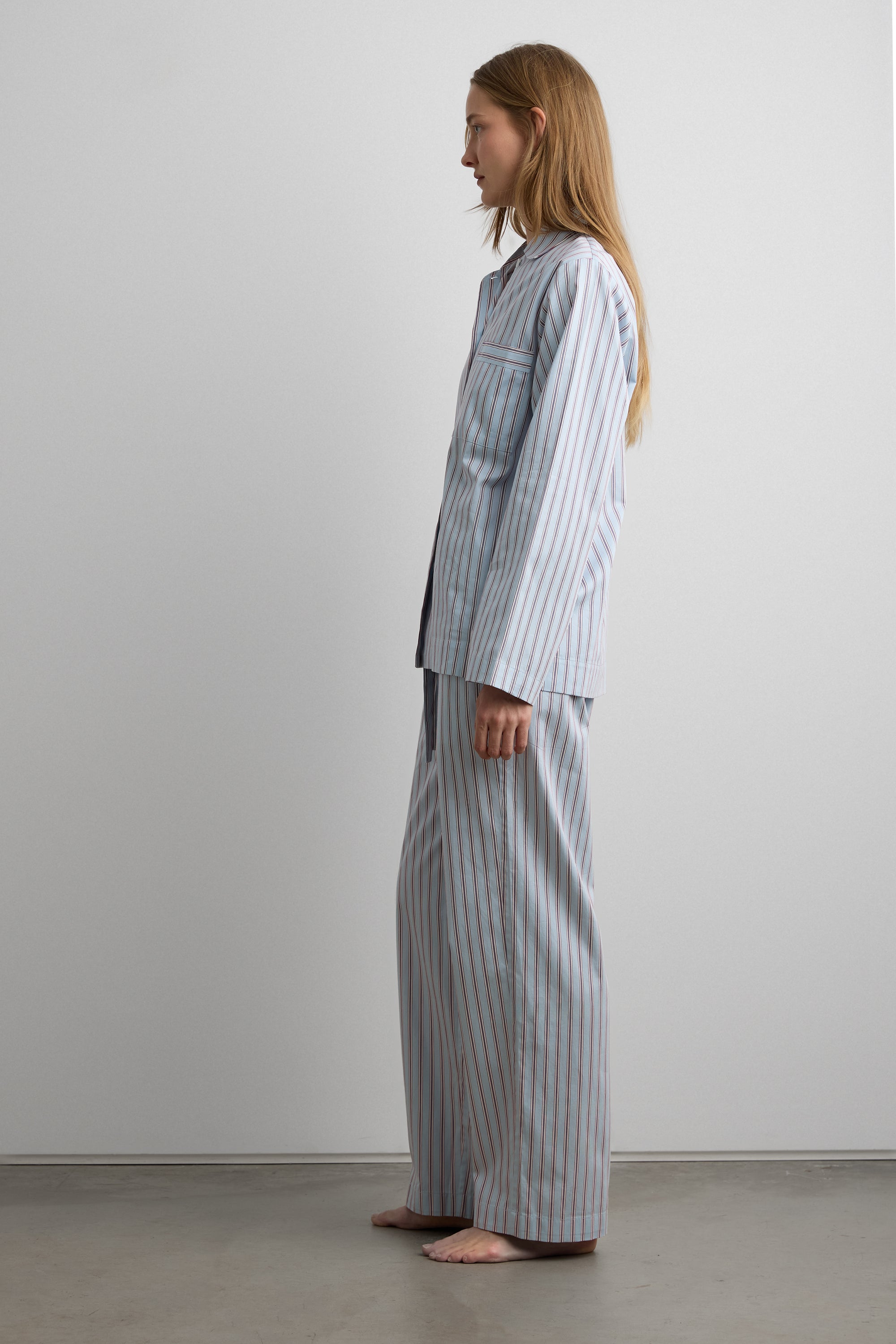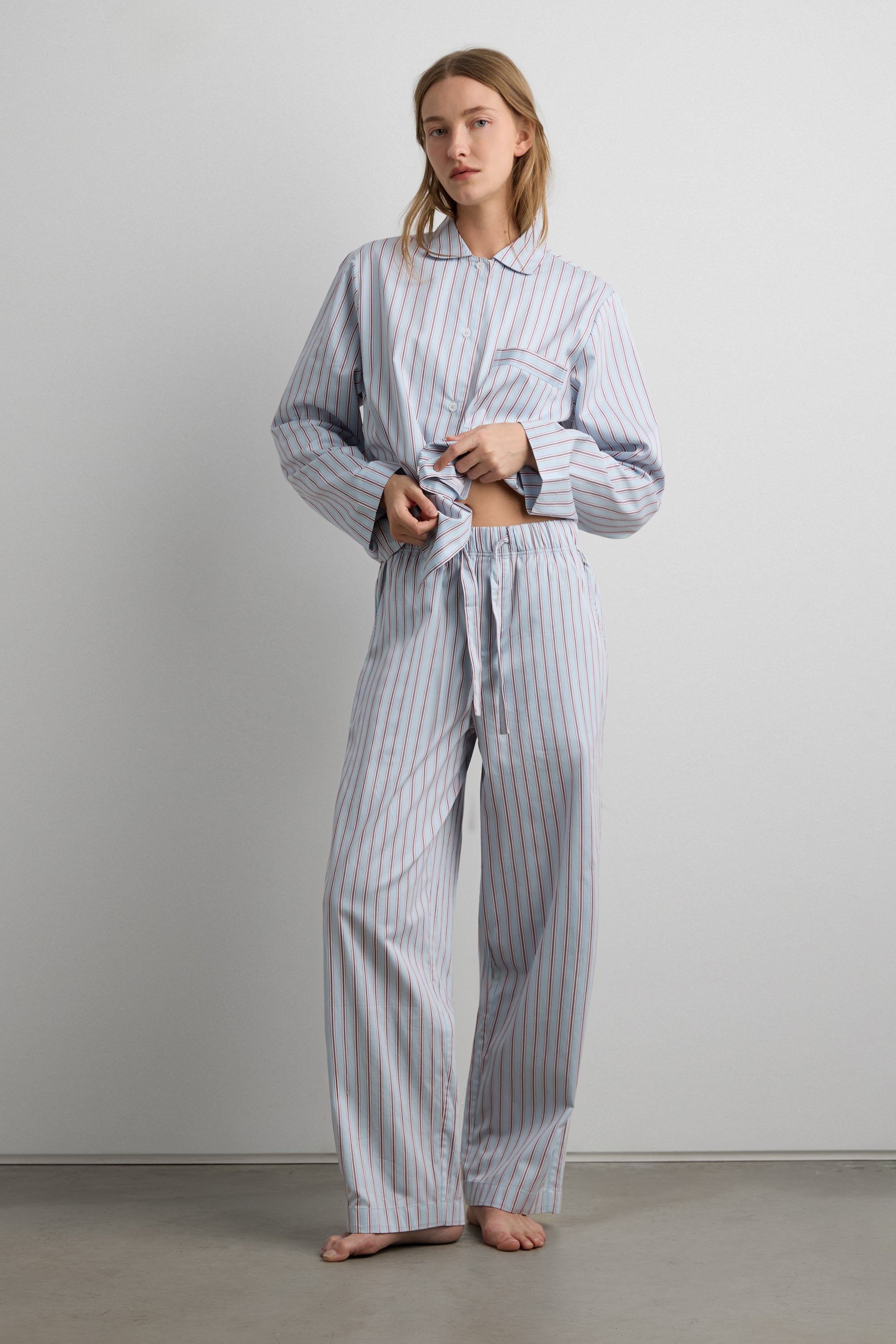 These striped pajama pants are made from 100% cotton in a relaxed fit. It has a straight leg cut, side pockets and a drawstring, mid-rise waist. Wear it with the matching pajama top or with a chunky knit sweater.
