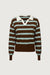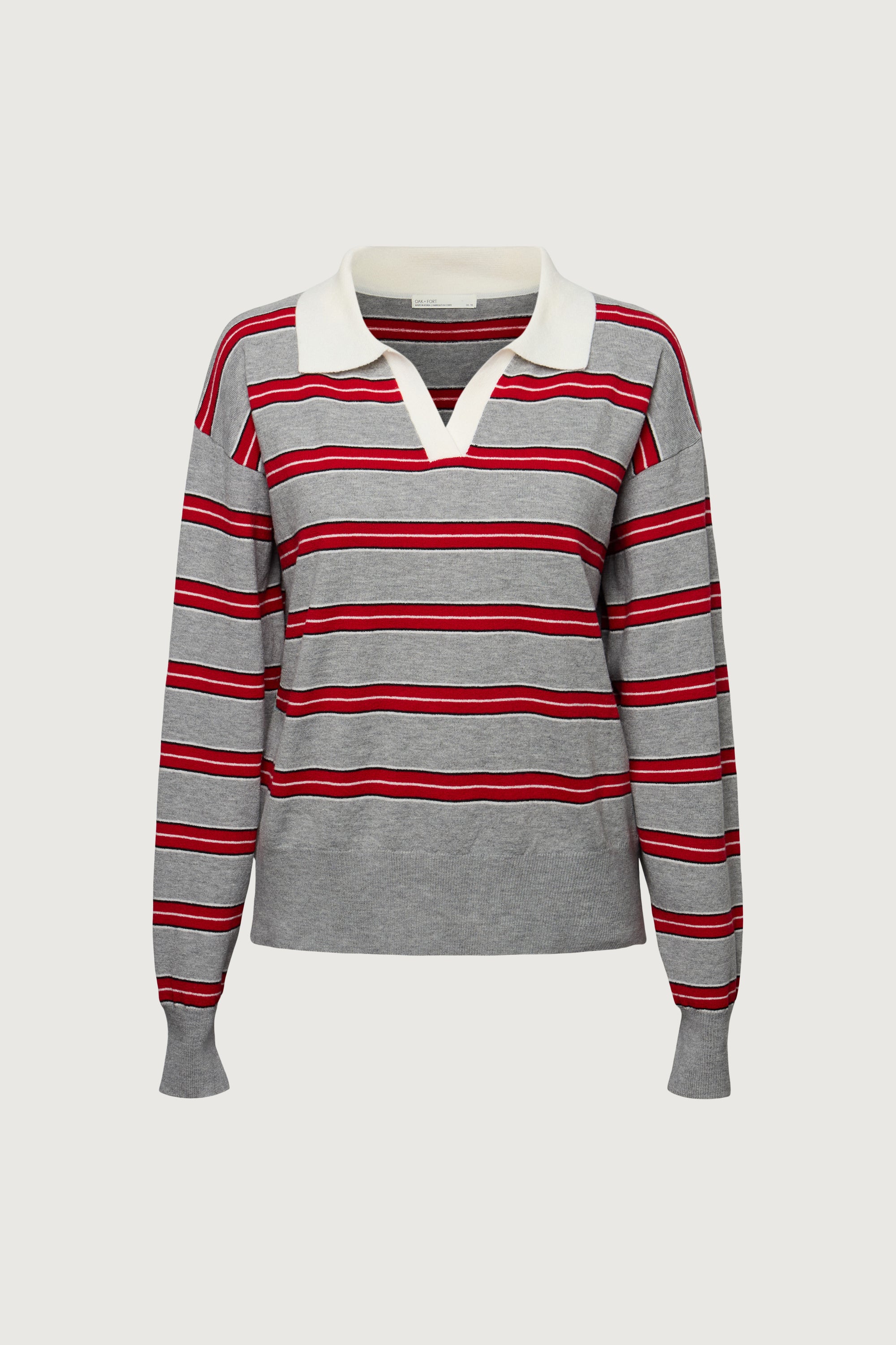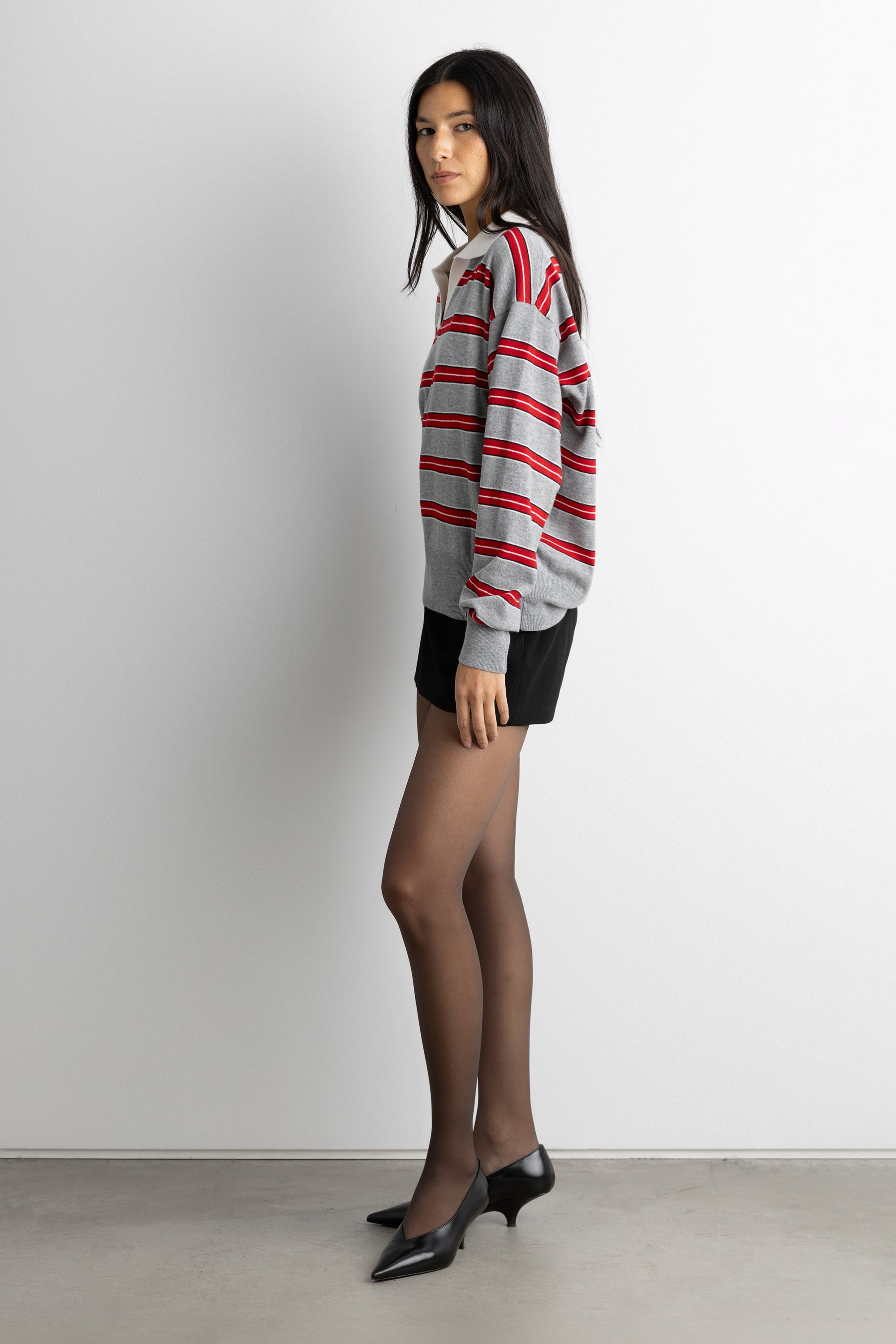 This rugby-inspired polo long sleeve sweater is made from a striped fabric in a relaxed fit. It has dropped shoulders, ribbed trims and a contrast collar.