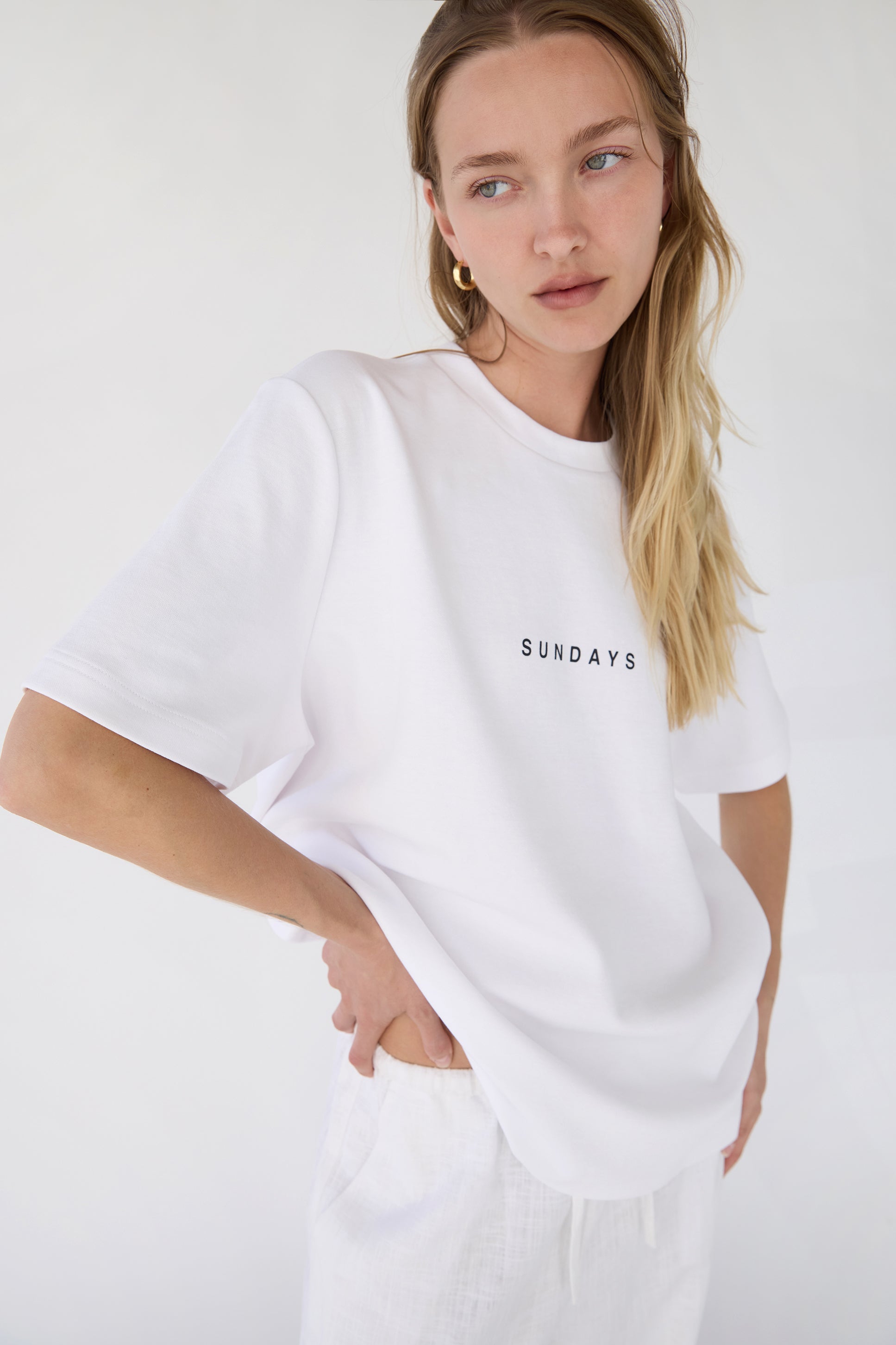 Relaxed fit. "Sundays" graphic. Crew neckline. Heavyweight: 225 GSM. 29" length based on size M.
