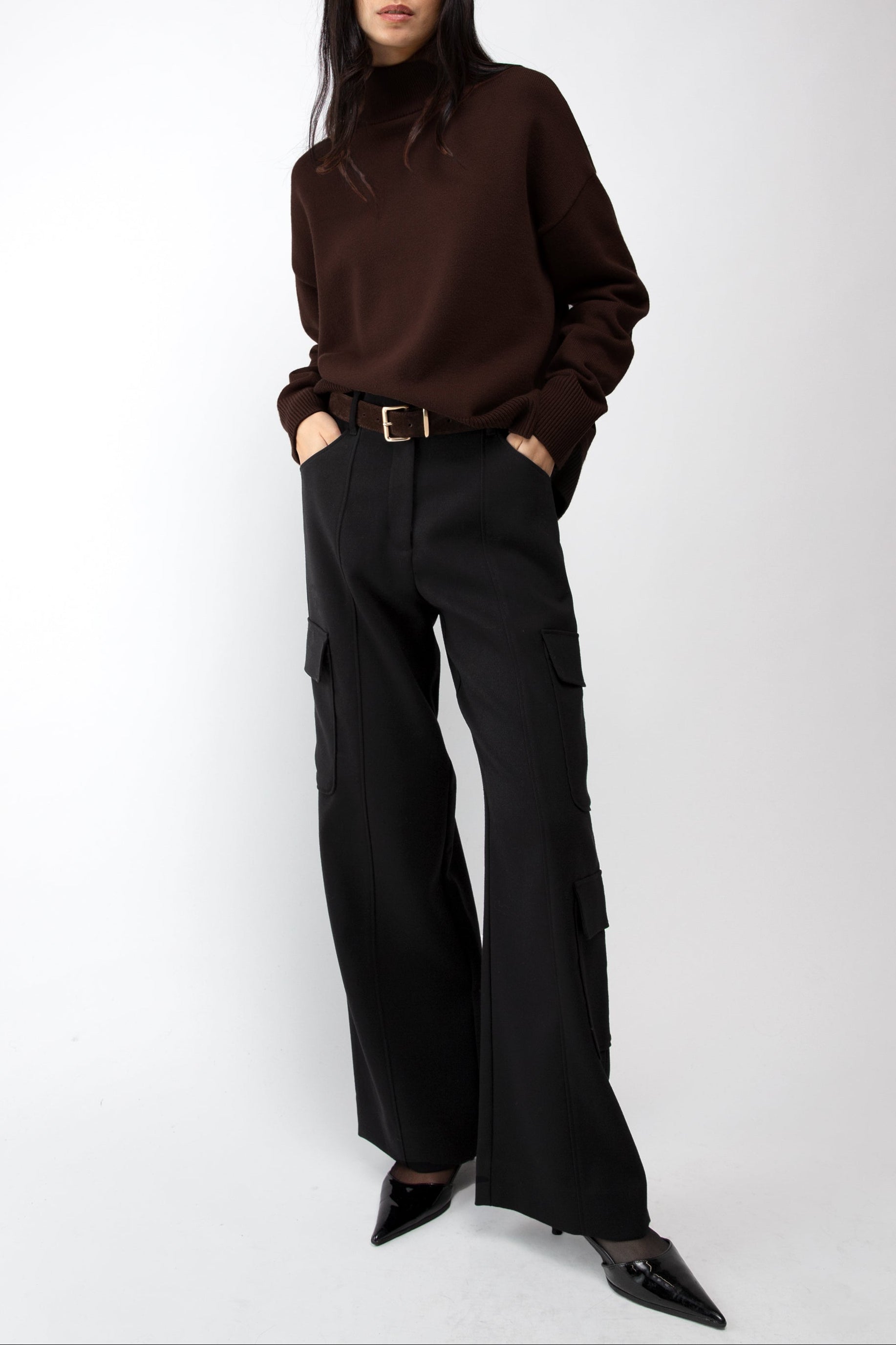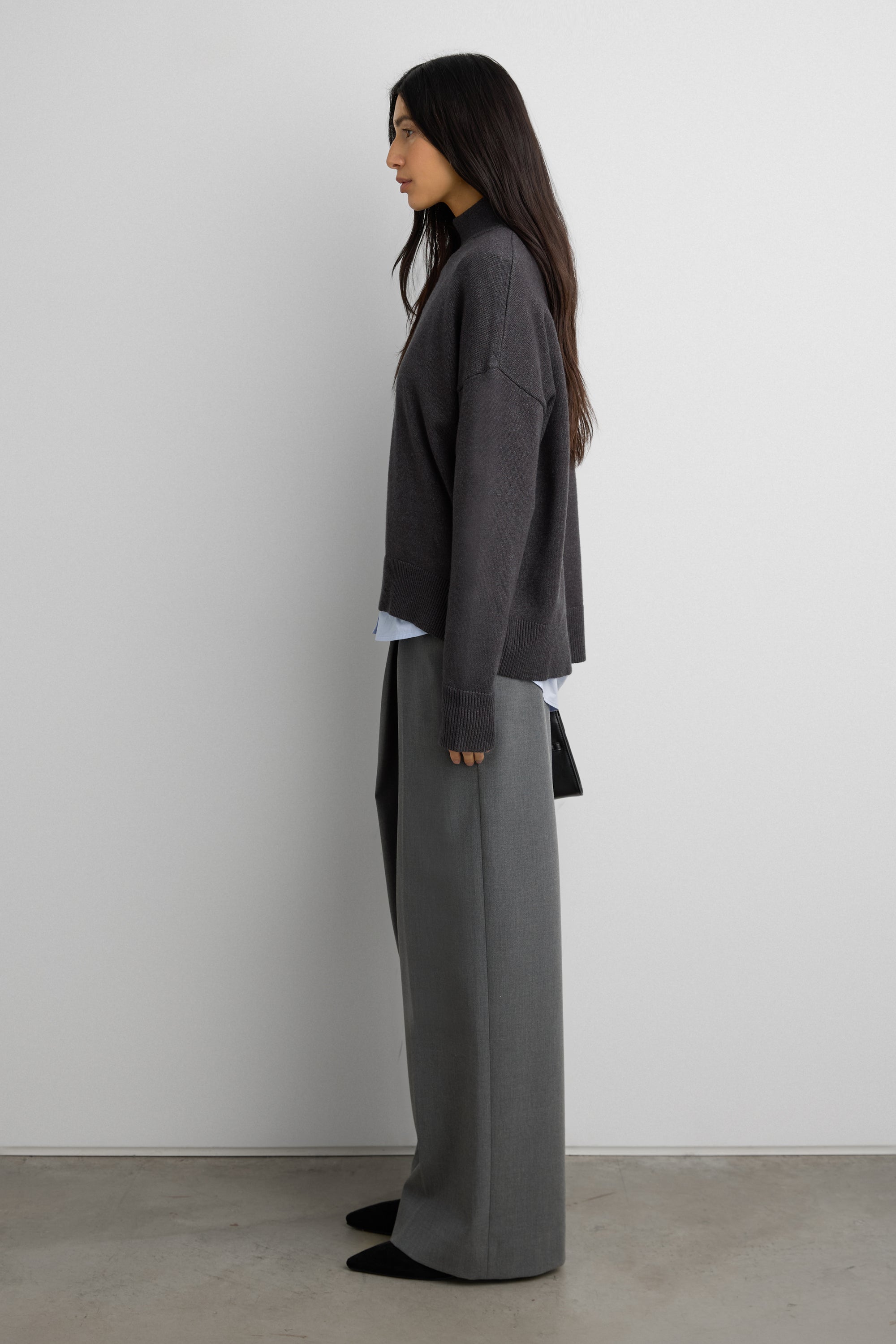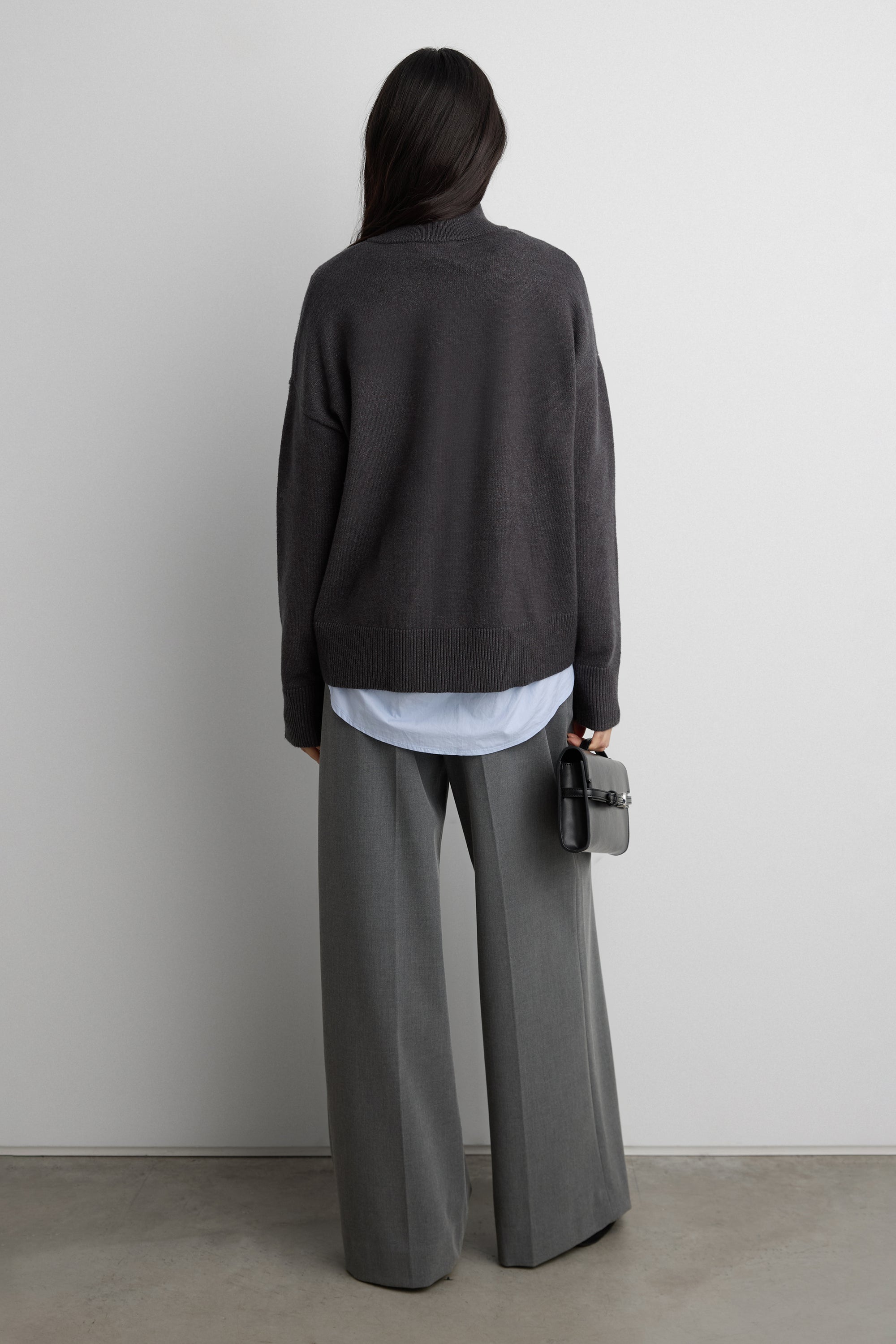 Knit. Turtleneck design. Ribbed trims. Dropped shoulders.