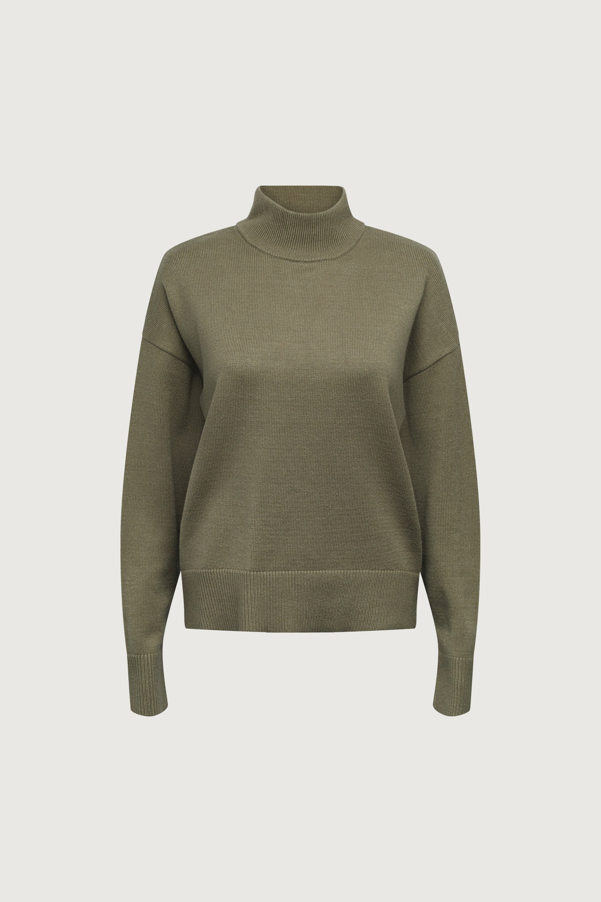 This best-selling turtleneck sweater has a relaxed fit and is detailed with a ribbed trims and dropped shoulders. A cozy everyday knitwear piece to wear this season with any bottoms from distressed denim to straight leg trousers.