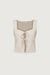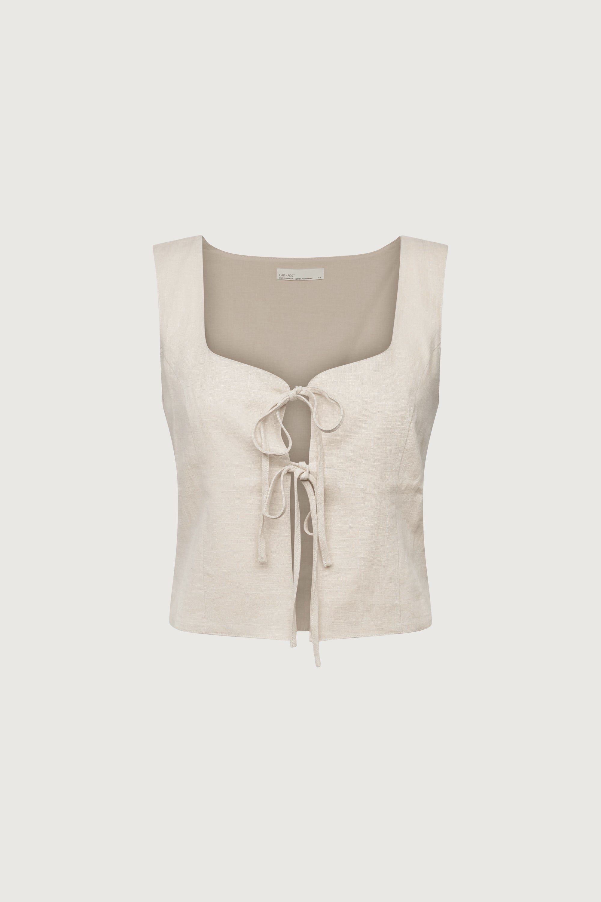 This linen blend tie front tank is made in a relaxed fit. It has a subtle sweetheart neckline and has an open front finished with ties. Pair yours with a midi skirt and sandals this season.