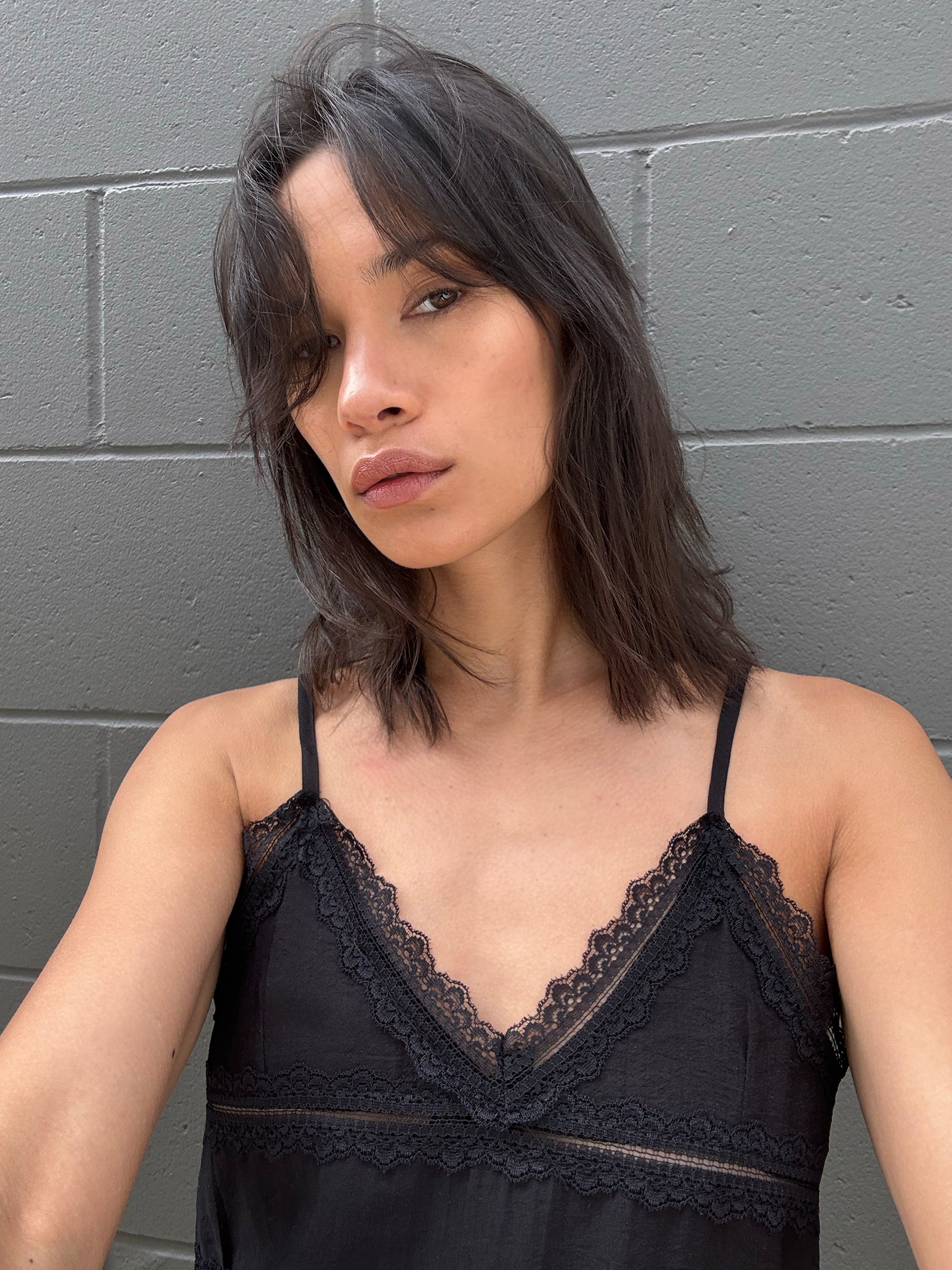 Lightweight. Breathable. Tiers. Lace. V neckline. Cropped.